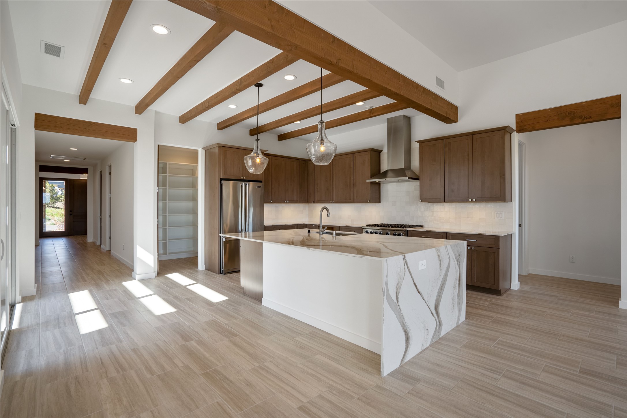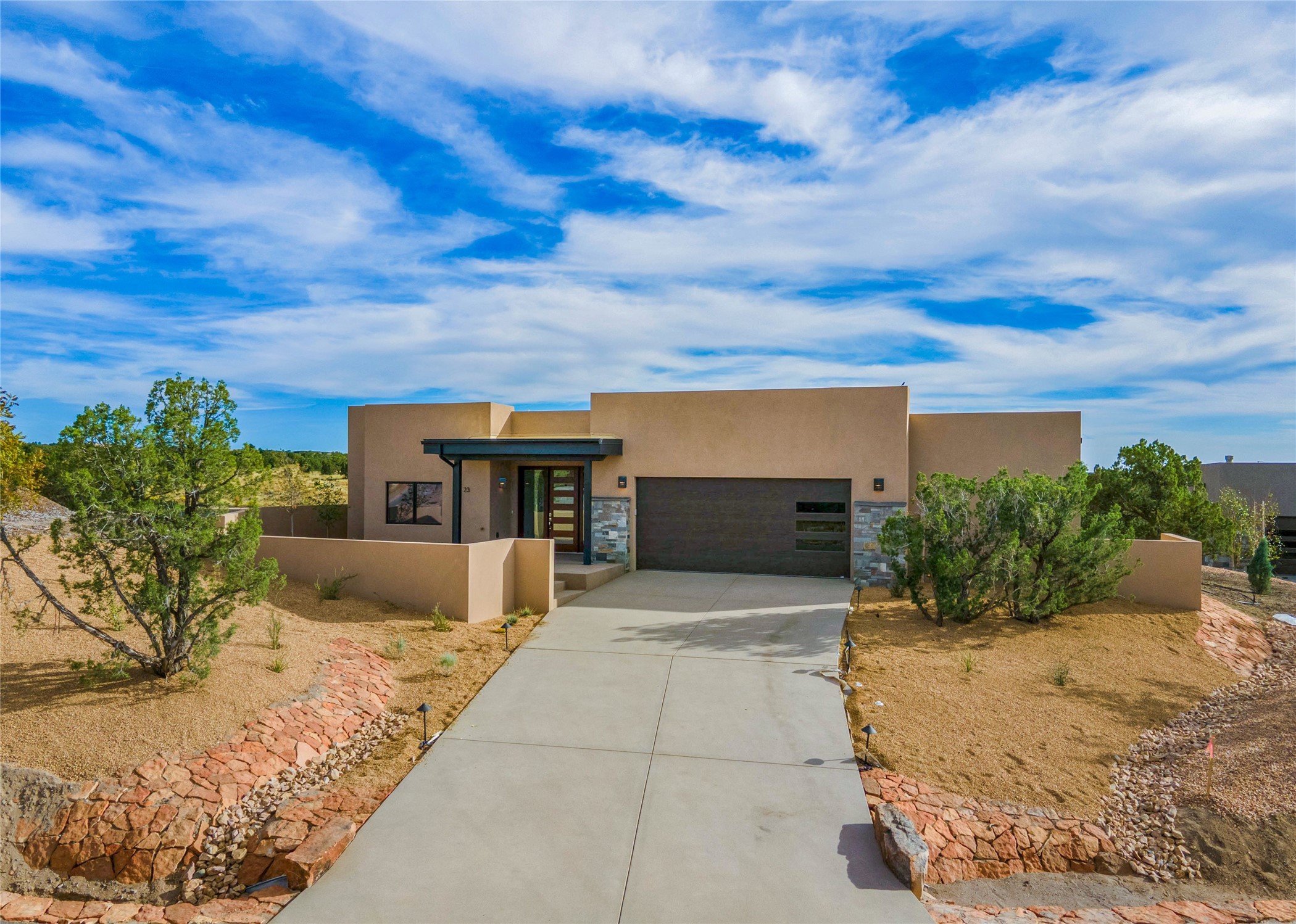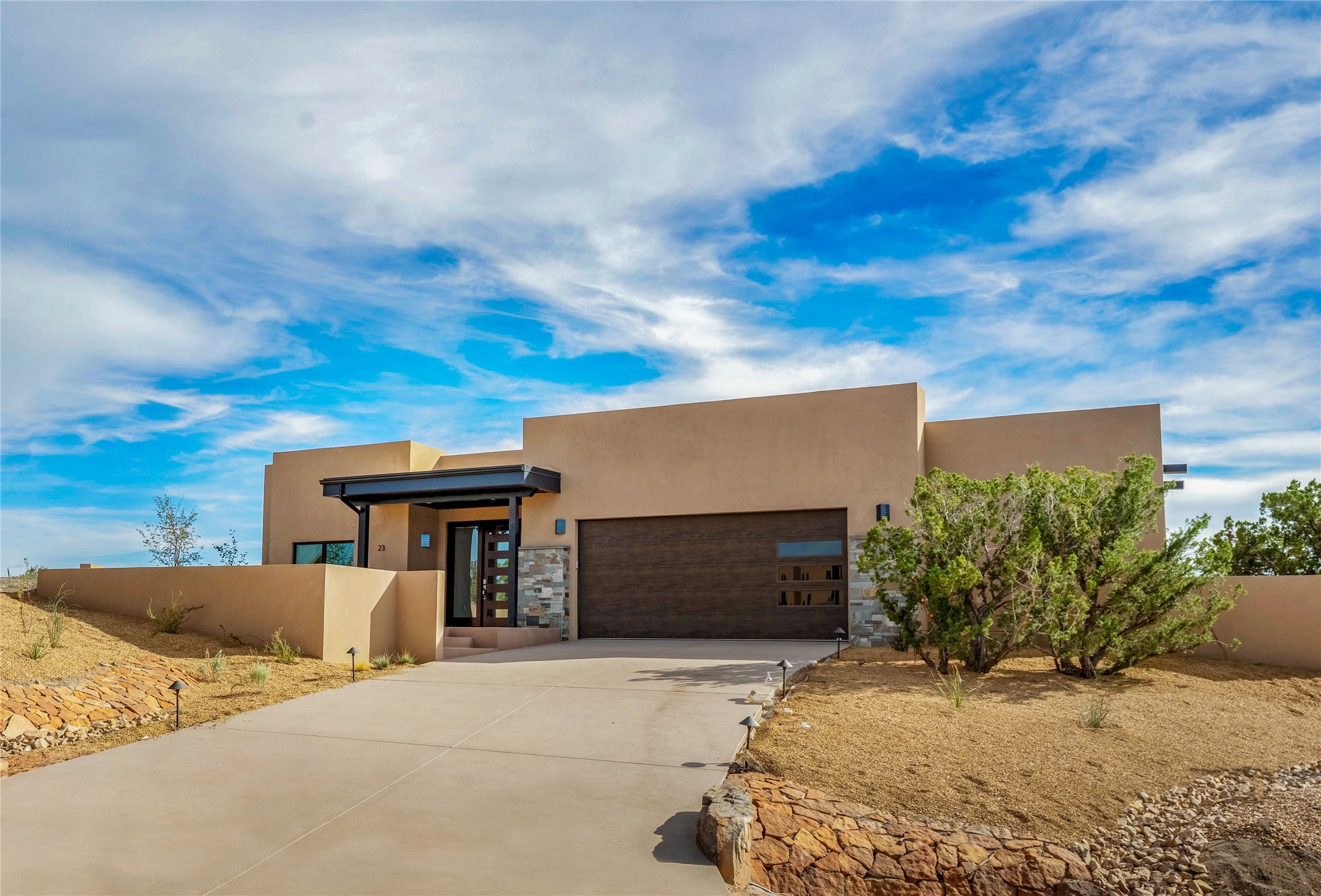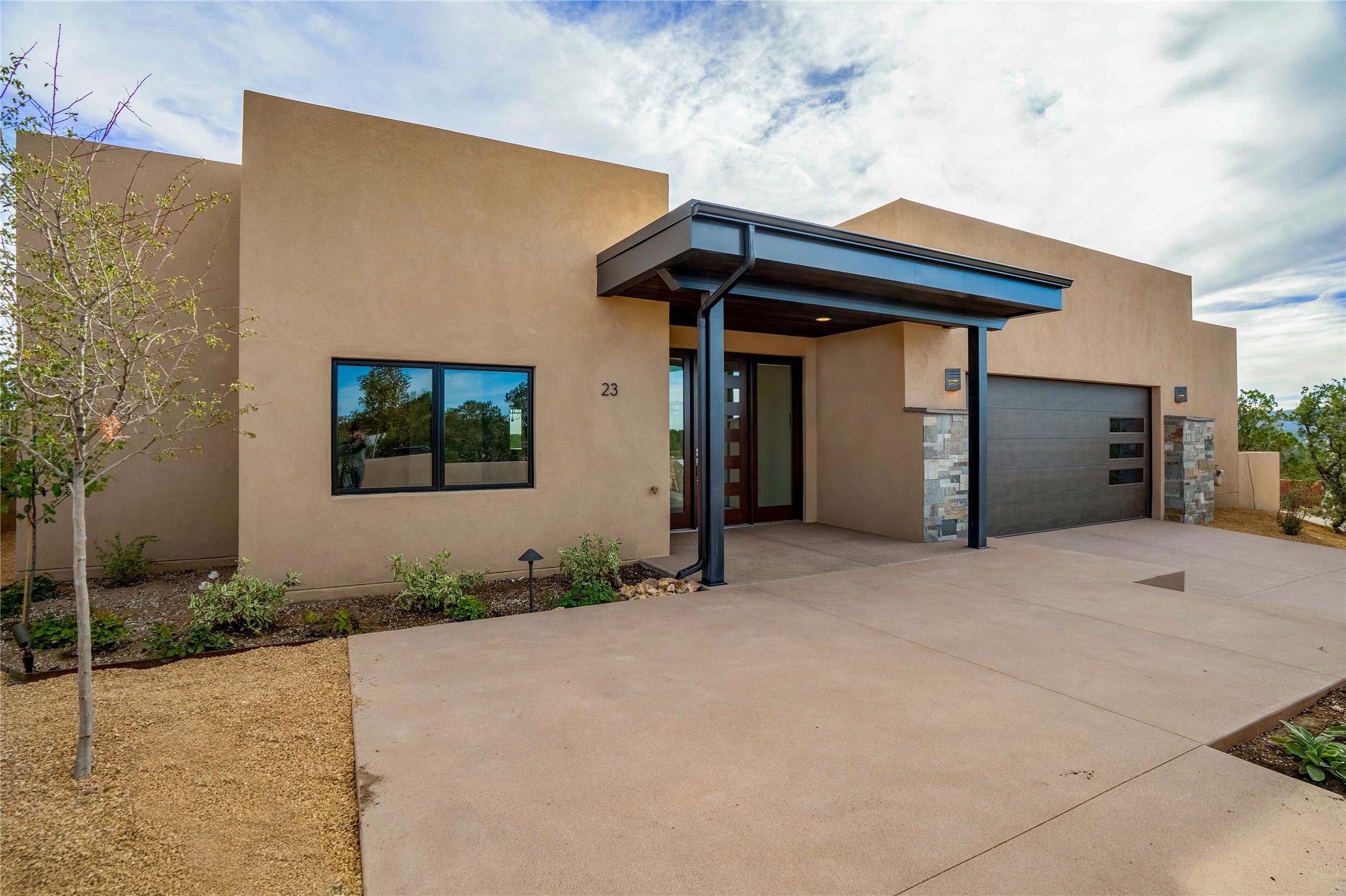 Tierra Antigua Lot 21 - The Sunrise Plan: Where Every Day Begins in Beauty Awaken each morning to the soft glow of Santa Fe's breathtaking light in the Sunrise Plan - a thoughtfully crafted home by award-winning Five-Ten Architects + Design and Martinez Design Group. Seamlessly blending contemporary elegance with timeless Pueblo-inspired architecture, this 2,802-square-foot residence is designed for true indoor-outdoor living, featuring over 700 square feet of covered portal space that invites the natural beauty of Northern New Mexico right to your doorstep. Expansive windows and open-concept living spaces create a light-filled, inviting atmosphere, elevated by high-end finishes throughout: GE Monogram appliances, natural quartzite countertops, and porcelain tile flooring. Additional details such as Kohler plumbing fixtures, Pella windows, and LG washer and dryer combine luxury and function. Perfectly positioned on the north side of Tierra Antigua, Lot 21 backs to preserved open space and captures stunning framed views of the Sangre de Cristo Mountains from both the living room and rear portal. Over 700 square feet of outdoor living space allows you to fully experience Santa Fe's incredible landscape and four-season lifestyle. About Tierra Antigua - Located just 15 minutes from downtown Santa Fe, Tierra Antigua is a 44-acre community offering only 23 homesites, with over 50% of the land preserved as open space. This rare setting offers privacy, convenience, and an authentic connection to nature. All homesites have utilities at the lot line (County water, Las Campanas Sewer, Xfinity), and the community features a trail system that connects to nearby public trail system. With low $166/month HOA dues, Tierra Antigua makes building your dream home simple and stress-free.