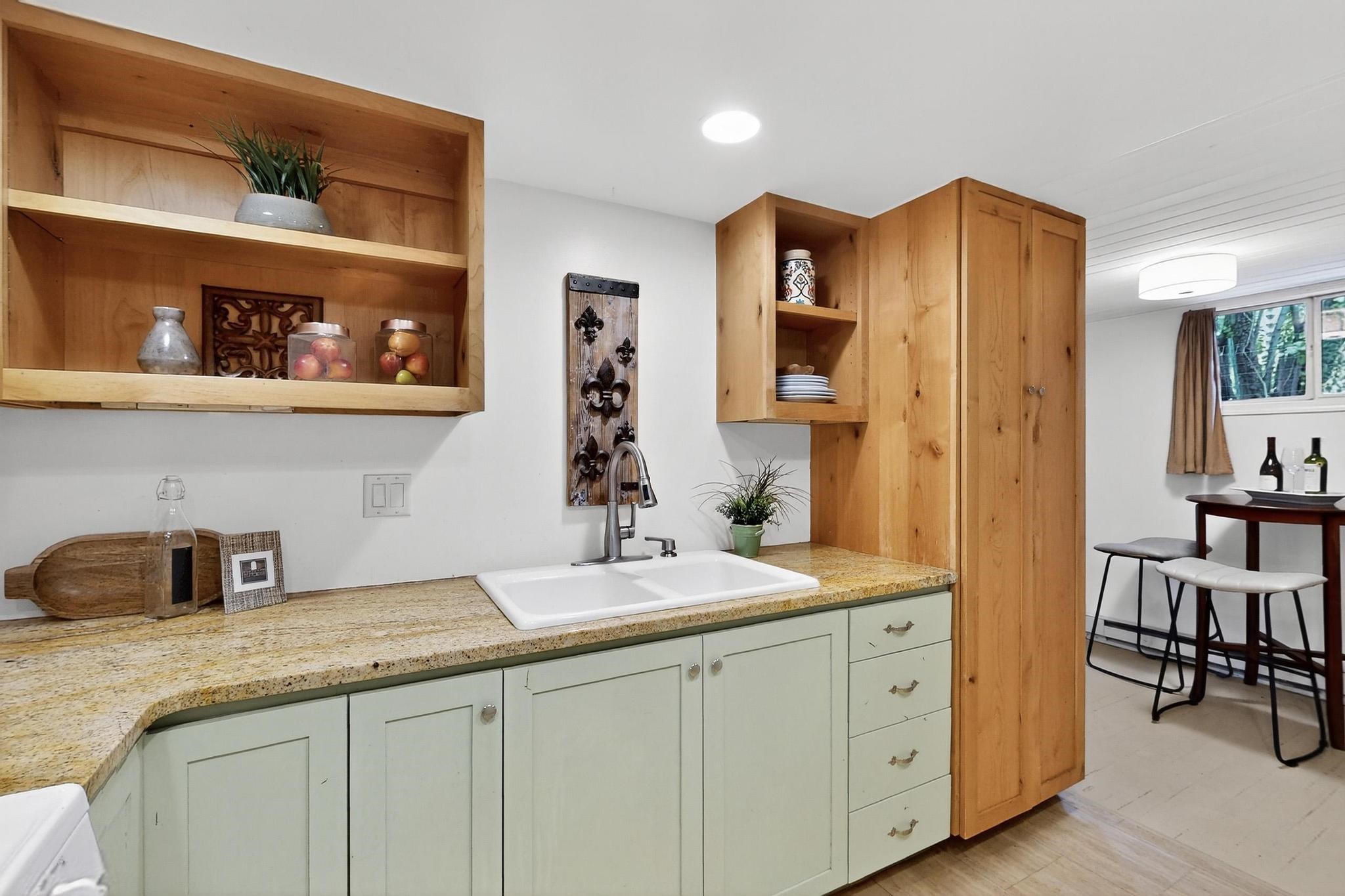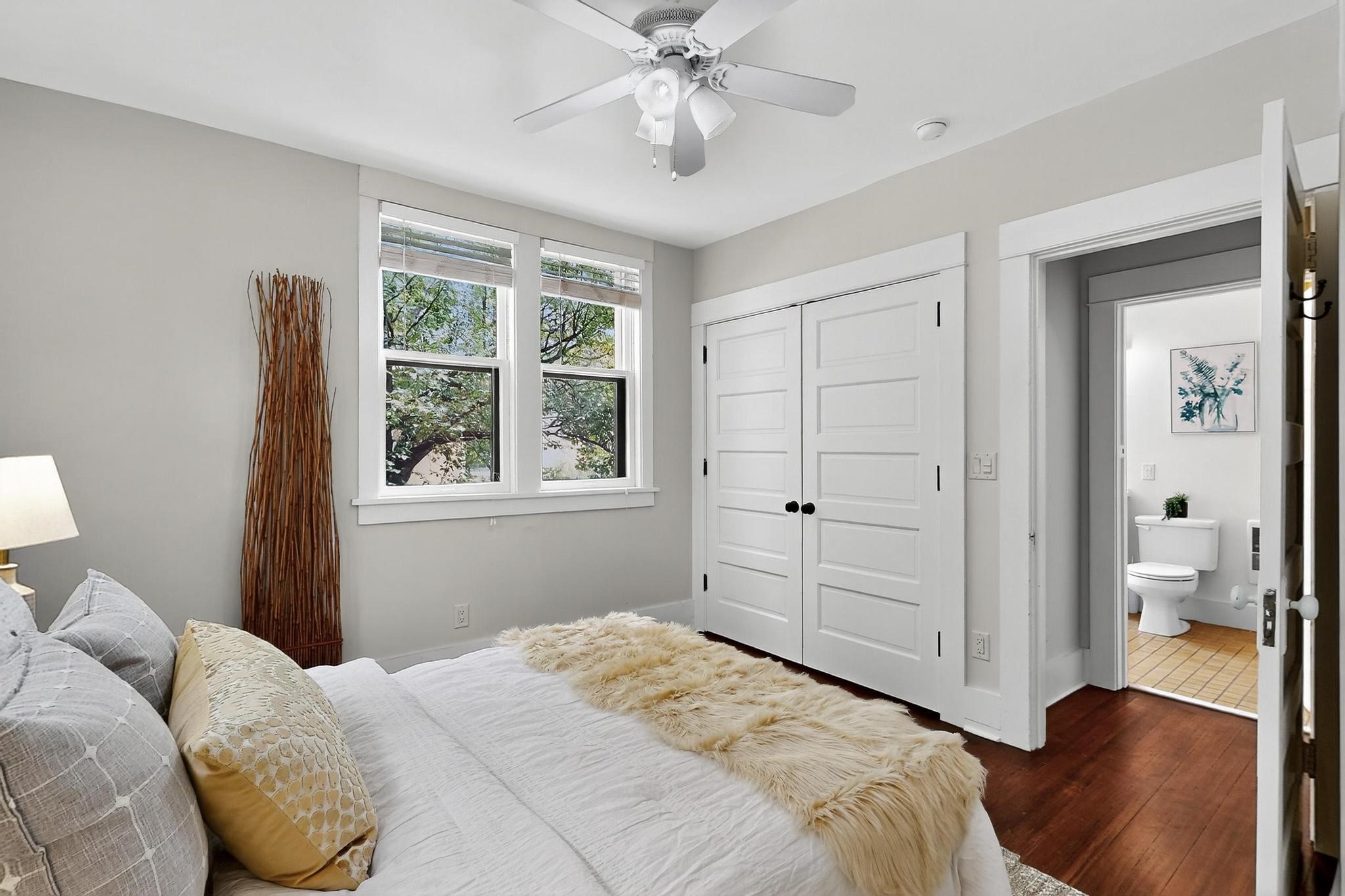 Bright Beautiful Condo with Casita in desirable South Capital in a beautiful small compound with mature trees and close proximity to the Plaza. This former residence was built in 1940 and has been converted into condos consisting of five units. These two units offer so many possibilities, live in one and rent the other, use one as for guests when they visit, or to have a parent close by. A very good price when divided by two units in the desirable South Capital. The main Condo 1A, 1 Bd, 1 bath, welcomes you as you enter through the french doors into a bright large living room with tall windows, wood floors, hand-hewn beams and a grand fireplace. The adorable kitchen has a country copper sink, granite countertop, lively deep red lower cabinets and light wood upper cabinets. Casita 1B, 1 bd, 1 bath has painted wood floors, an impressive fireplace, charming kitchen, and separate entrance. Each unit has its own private courtyard, they are the only ones in the compound that have this feature. This rare opportunity should not be missed. HOA fees include all utilities for both units, Electric, gas, water, maintenance, landscaping and insurance, the amount varies based on usage etc and is billed every 6 months.