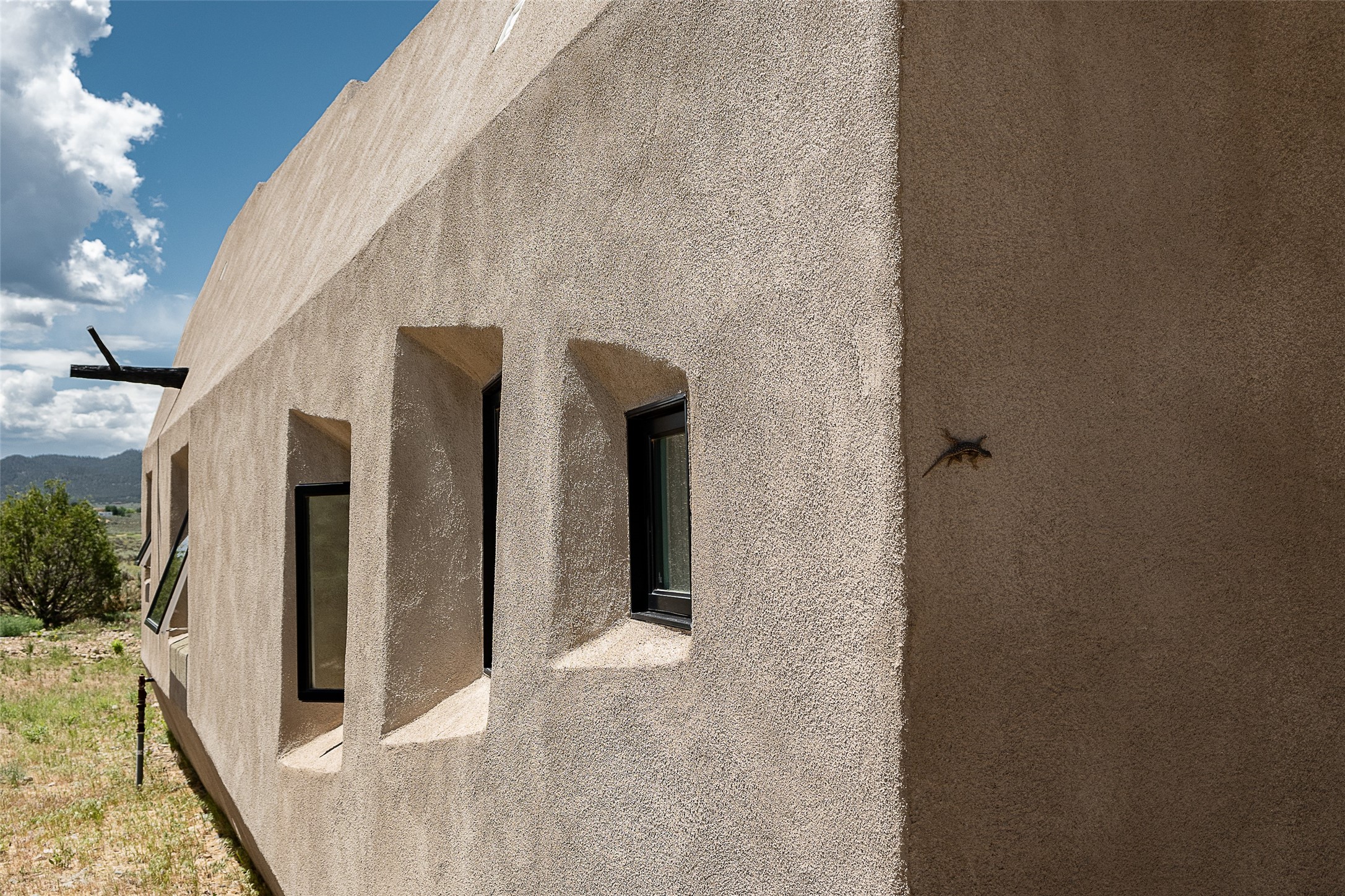 Live inside a work of art in this Artist's Dream Dwelling in Taos. Welcome to ATOMICA- a home unlike any other- where art, nature and architecture meet in perfect, unconventional harmony. Designed and built by internationally acclaimed visionary artist Allan Packer, this inspiring Taos retreat is anything but ordinary. The property consists of a house, a guesthouse, and a studio on 3 acres. Organic, off beat and unconventional in the best possible way. Sculpted thick pumice walls and large windows incorporate and frame the stunning views into a magical, serene space imagined to inspire. The layout defies expectation- fluid and intuitive, built to honor light, shadow and the surrounding land. The main house consists of 2 suites radiating off a large great room made up of an impressive kitchen space and a cozy sunken living room anchored by a whimsical fireplace. Step right out onto the stunning back patio with a firepit, hot tub and jaw dropping views in every direction. The guesthouse is fully equipped with a kitchen and has an established history of rental income. Set atop a peaceful rise, tucked near the edge of the Rio Grande del Norte National Monument, you're just minutes from breathtaking hikes where bighorn sheep roam, epic mountain biking trails, and the quiet power of the river below. The home also overlooks the 16th hole of the Taos Country Club and golf course, blending wild nature with wide-open fairways. This is not just a home-it's a living, breathing work of art. It's a space for dreamers, makers and seekers. Whether you're an artist, writer, hardcore recreationalist or someone simply craving authenticity and soul in a sea of sameness, this home offers something rare: a chance to live in art, not just hang it on the wall.One-of-a-kind. Off the beaten path. Totally Taos. Serious inquiries only. Magic lives here.