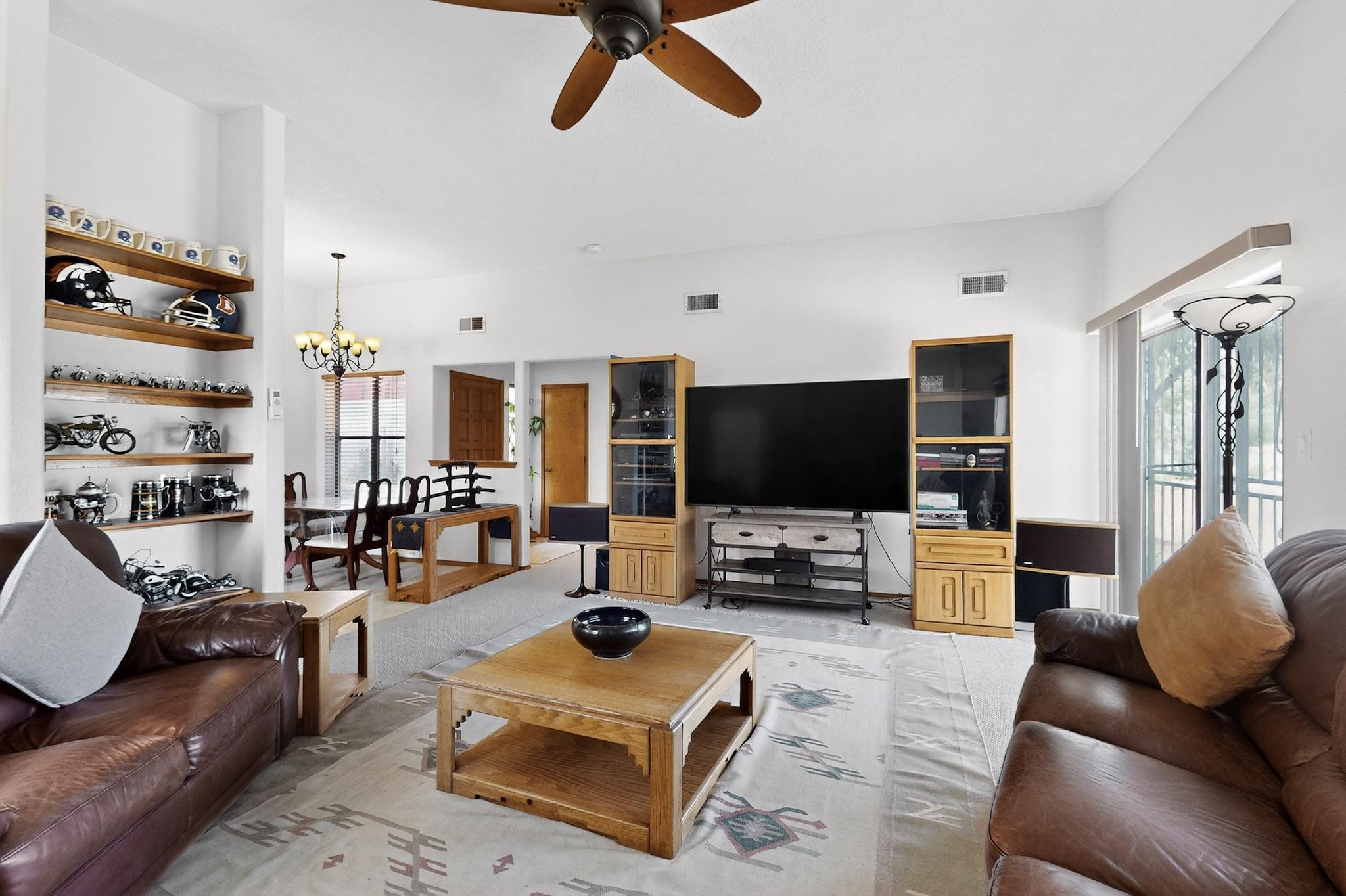 Beautiful home in gated community! This charming home is in the highly desirable Vista Primera subdivision. It features 3 spacious bedrooms, 2 baths, and sits on an expansive enclosed lot (approximately 1/3-acre) that provides privacy and convenience.The large backyard provides ample space for outdoor enjoyment, with the option to raise the enclosing wall for added privacy. Inside, you'll find a two-car insulated garage with a generous workspace and built-in cabinets. The home has a central forced-air furnace, a heat/cooling Pioneer mini-split system, and a natural gas fireplace--ensuring year-round comfort. Lovingly maintained with only two owners, this home has been gently used-- with most of its years being used only as a second home. The property also benefits from the community's private park and protective covenants, safeguarding your investment.Conveniently located with quick access to I-25 and downtown Santa Fe via Veterans Memorial Highway (State Road 599), the property is less than a mile from the newly expanded Santa Fe Airport and close to the Santa Fe Country Club, featuring a swimming pool, and a golf course. Competitively priced and ready for your personal touches. Schedule a viewing today!