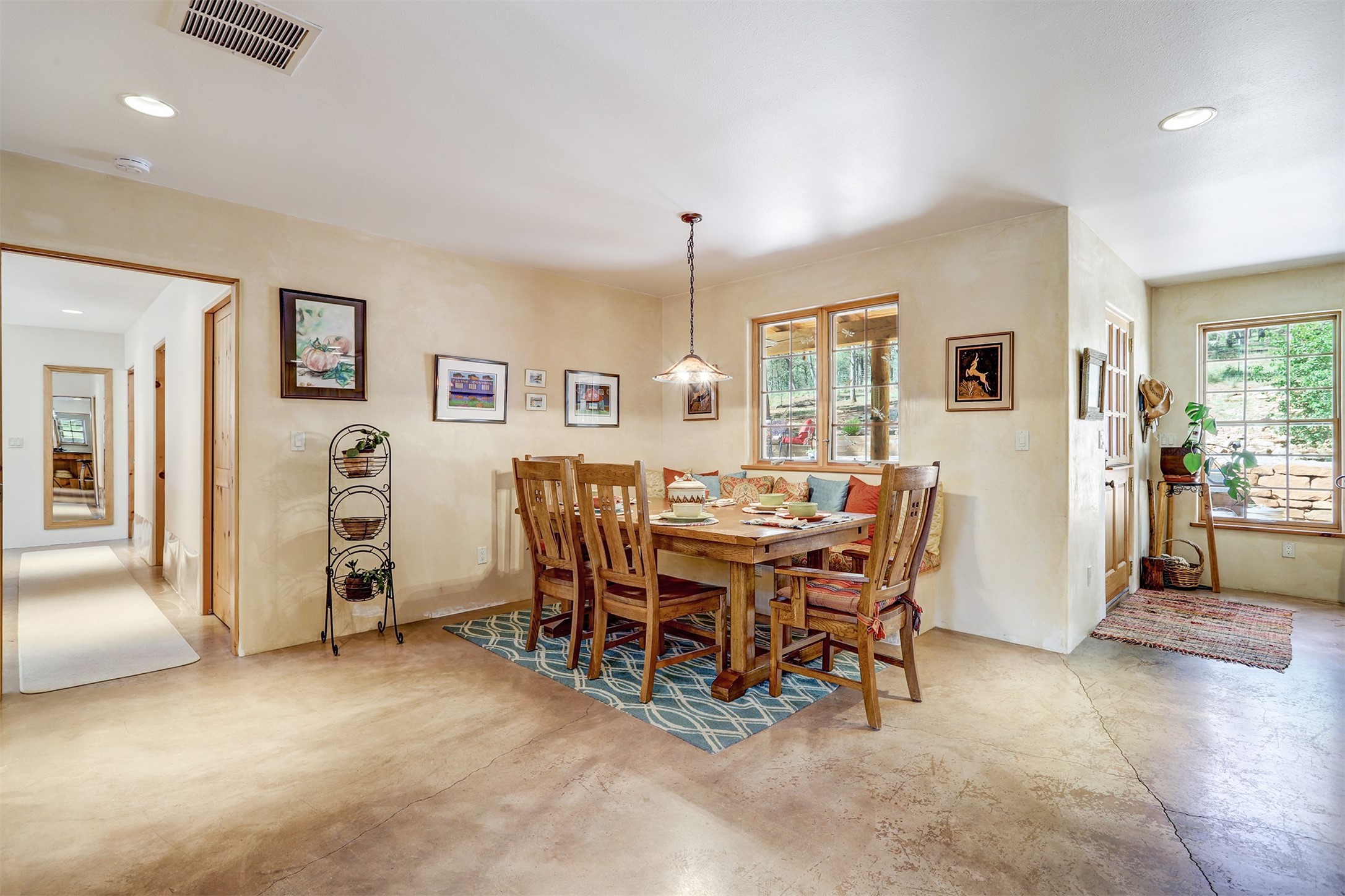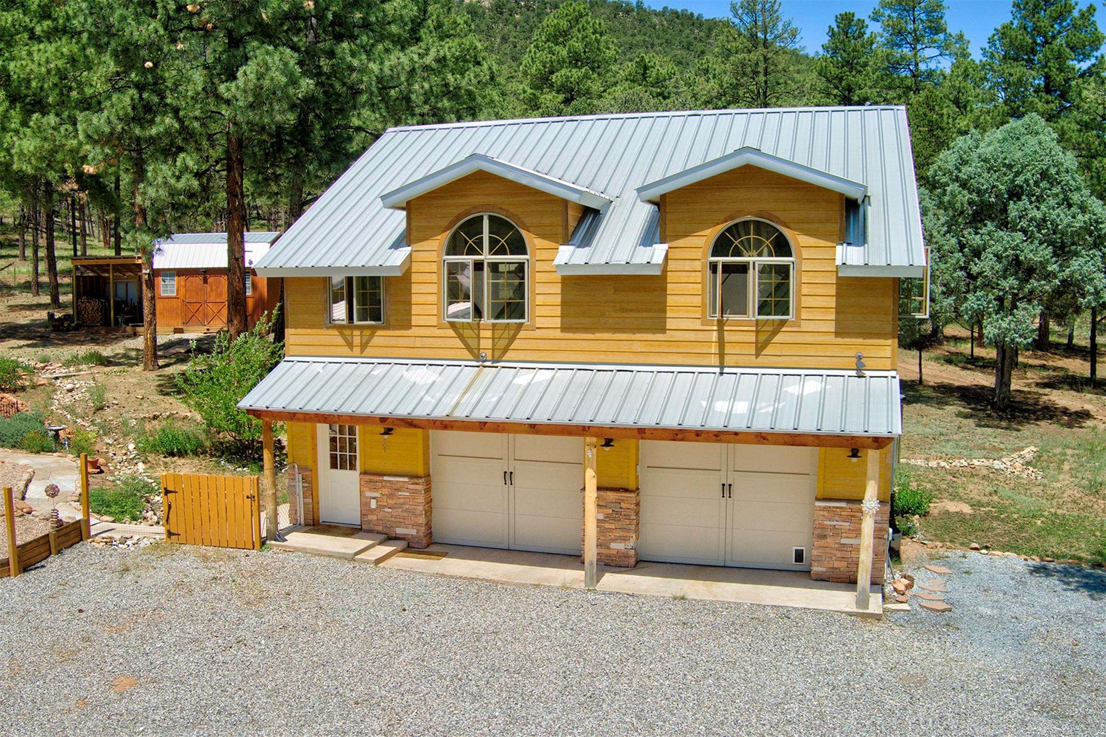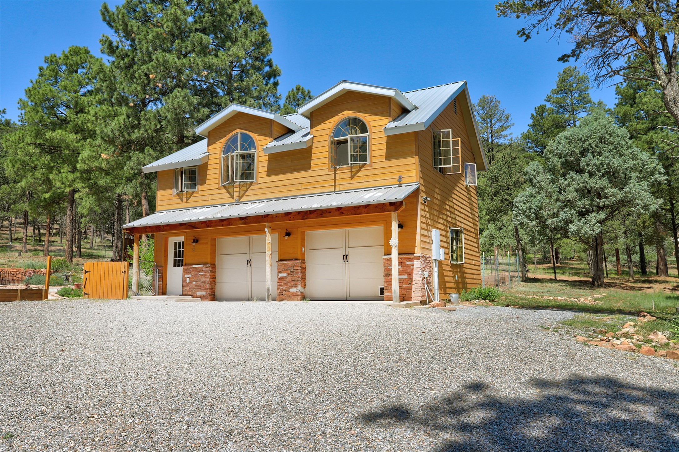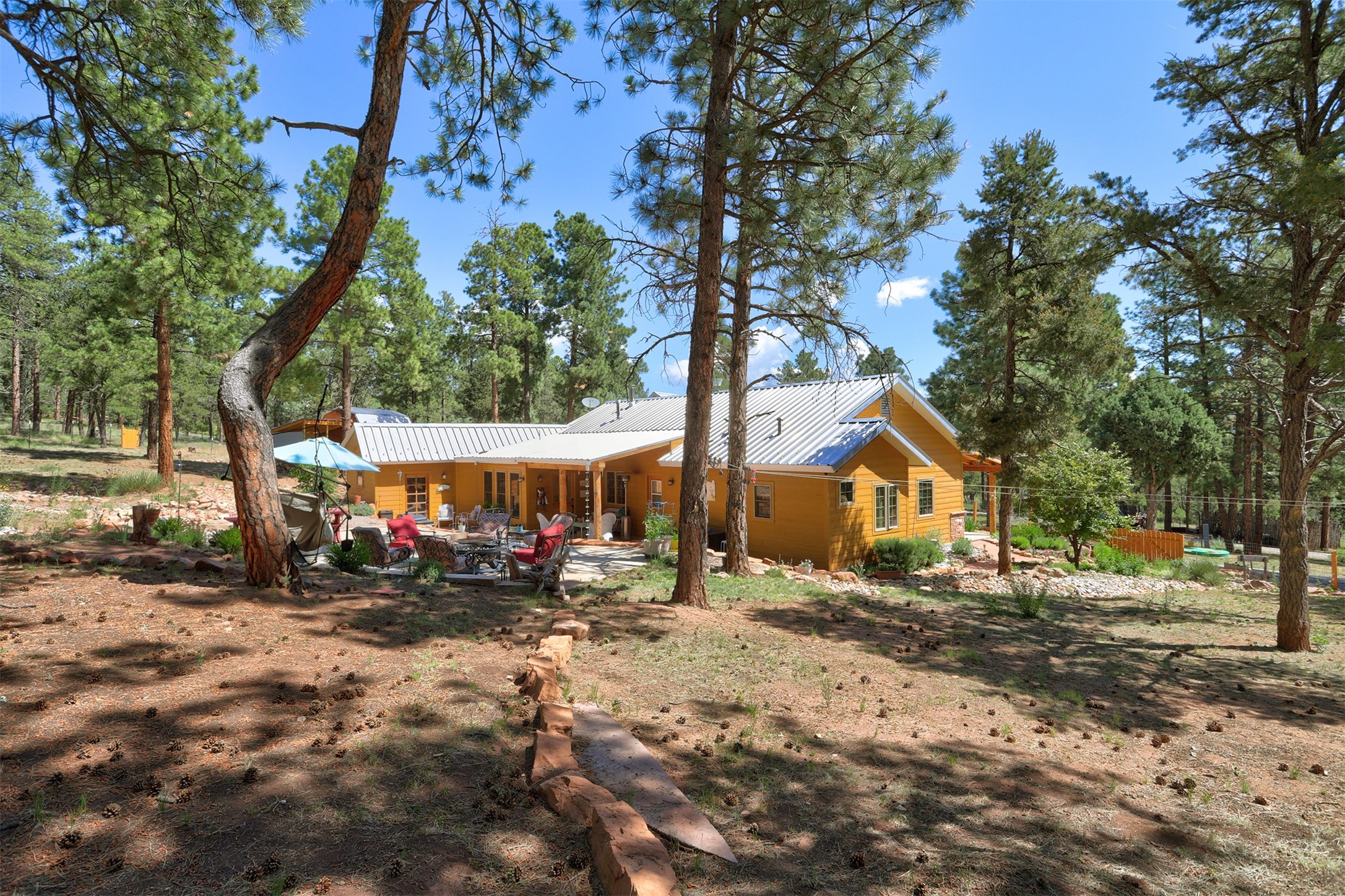 Attention Mountain Bikers and Horse Enthusiasts! Serene 12.5-Acre Retreat with mountain views! Main house and guest casita over garage is just 25 minutes from downtown Santa Fe. Nestled at the base of the stunning Glorieta Mesa this exceptional property with private well offers access to miles of scenic trails perfect for mountain biking and horseback riding. Located across the highway from the famous Glorieta Mountain Biking Trails, this property is ideally located for outdoor lovers. The main home blends rustic charm with modern comfort, featuring a spacious living area, two primary suites, a dedicated office, and a convenient dog bath. The tranquil, private setting makes it ideal for full-time living or a weekend getaway. Step outside to the elevated sandstone terrace--a perfect space for dining, relaxing, or taking in the panoramic mountain views. A standout feature is the 800 sq. ft. casita above the garage, complete with a strong rental history--ideal as an income-producing long-term rental or a welcoming guest suite.Additional highlights include a fully fenced yard, ample RV parking, direct access to the Santa Fe National Forest, and horse-friendly property making it easy to enjoy trail riding and open space right from your property.Whether you're seeking a serene lifestyle, an investment opportunity, or proximity to Santa Fe's rich cultural and outdoor offerings, this unique property delivers on all fronts.