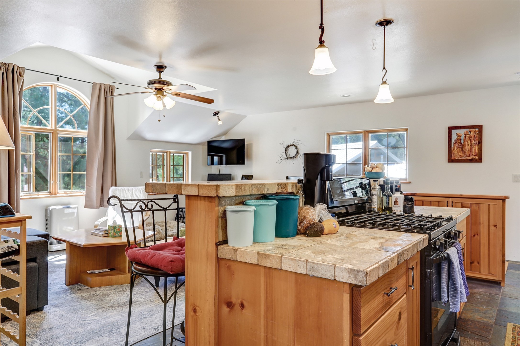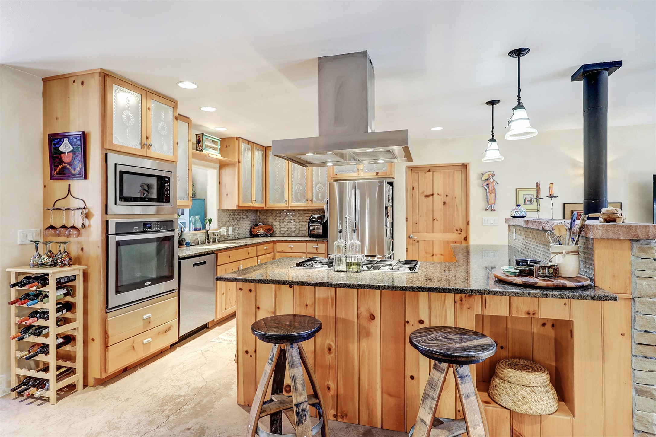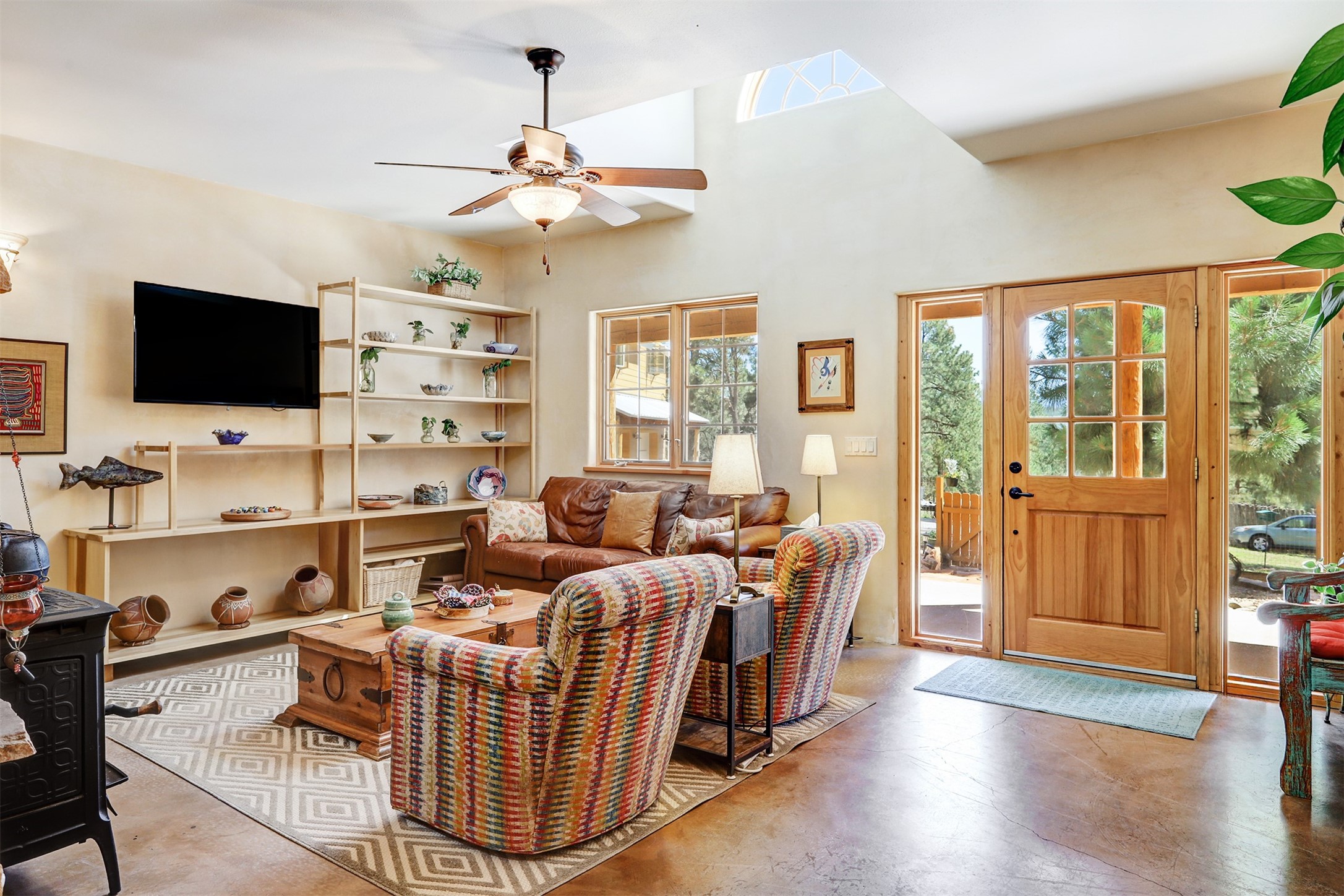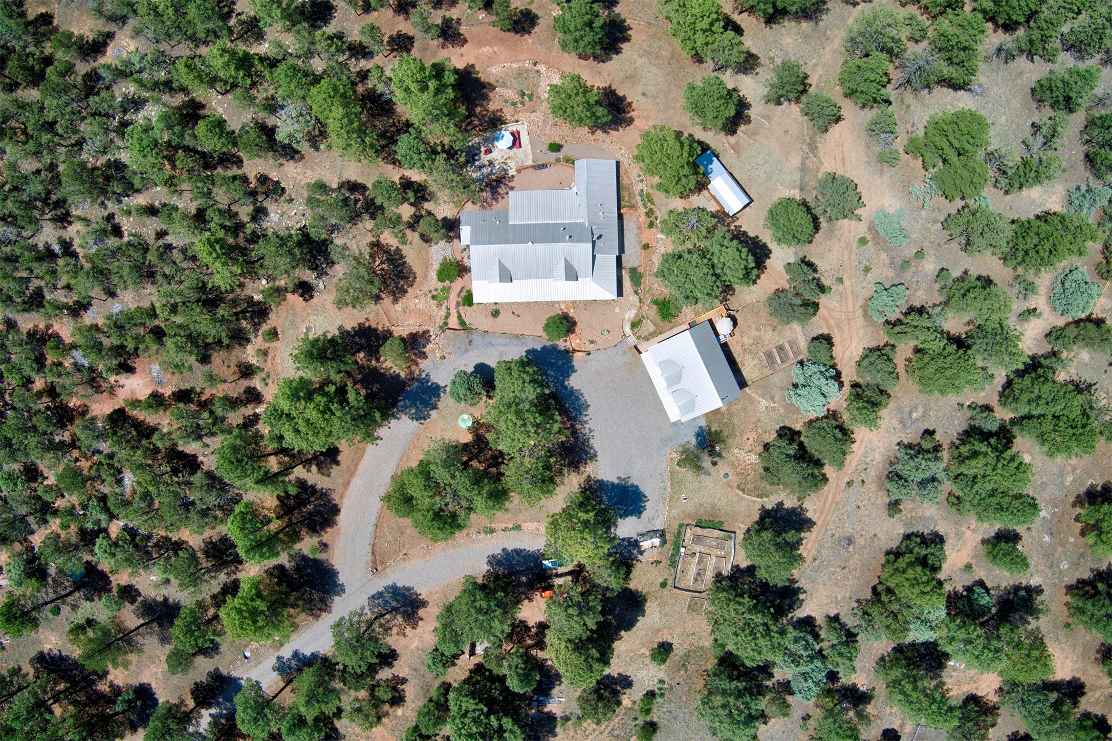 Attention Mountain Bikers and Horse Enthusiasts! Serene 12.5-Acre Retreat with mountain views! Main house and guest casita over garage is just 25 minutes from downtown Santa Fe. Nestled at the base of the stunning Glorieta Mesa this exceptional property with private well offers access to miles of scenic trails perfect for mountain biking and horseback riding. Located across the highway from the famous Glorieta Mountain Biking Trails, this property is ideally located for outdoor lovers. The main home blends rustic charm with modern comfort, featuring a spacious living area, two primary suites, a dedicated office, and a convenient dog bath. The tranquil, private setting makes it ideal for full-time living or a weekend getaway. Step outside to the elevated sandstone terrace--a perfect space for dining, relaxing, or taking in the panoramic mountain views. A standout feature is the 800 sq. ft. casita above the garage, complete with a strong rental history--ideal as an income-producing long-term rental or a welcoming guest suite.Additional highlights include a fully fenced yard, ample RV parking, direct access to the Santa Fe National Forest, and horse-friendly property making it easy to enjoy trail riding and open space right from your property.Whether you're seeking a serene lifestyle, an investment opportunity, or proximity to Santa Fe's rich cultural and outdoor offerings, this unique property delivers on all fronts.