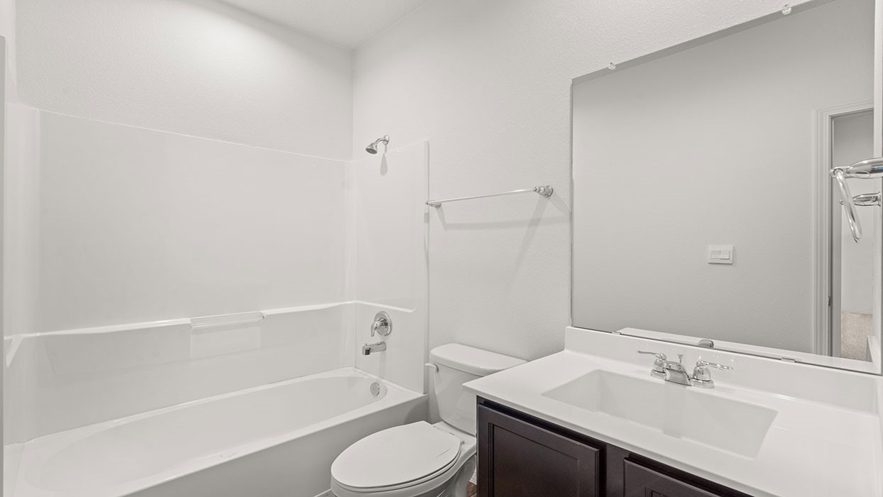 MOVE IN READY!!! ASK ABOUT OUR INCENTIVES. This spacious 2-story home offers 2,642 sq ft of well-designed living space, featuring five bedrooms and 4 bathrooms, making it ideal for families seeking both comfort and privacy. The main floor is thoughtfully laid out, with the owner's suite conveniently located downstairs for easy access. The owner's retreat includes a large walk-in closet and an en-suite bathroom. A guest room on the main level offers flexibility, along with a full bathroom nearby, making it perfect for visitors or a home office. Upstairs, you'll find two additional bedrooms and a shared full bathroom, providing ample space and privacy for family members. The open concept living area on the main floor seamlessly connects the living, dining, and kitchen spaces, creating a bright and inviting atmosphere ideal for entertaining. The attached two-car garage provides secure parking and additional storage. This home offers a perfect combination of style, function, and privacy, making it the ideal choice for modern living.