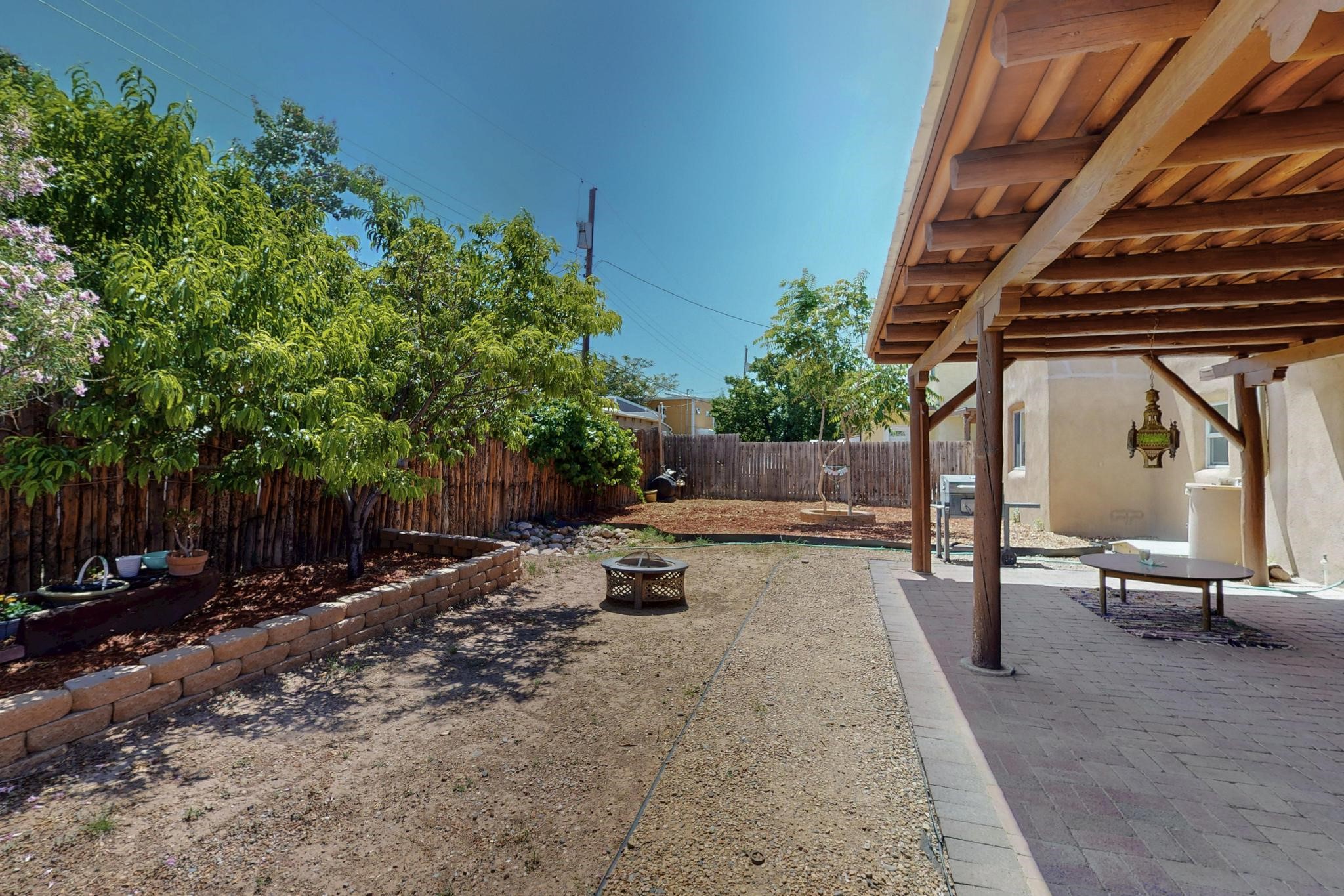 Located in a hip Midtown neighborhood on an ample corner lot, this charming 1594 s.f. home is in like new condition and move-in ready. Details include wood and tile floors throughout, a gas fireplace and an open floorplan with great separation of bedrooms and baths. The irrigated grounds are well established and maintained with mature trees, lilacs, rosebushes and a prolific peach tree. Enjoy living outside in the spacious covered portal and entirely fenced backyard. This wonderful and very livable home, also includes a 253 s.f. Studio, not heated and could be retrofit to a closed in garage or open carport. The furnishings depicted are virtually staged.