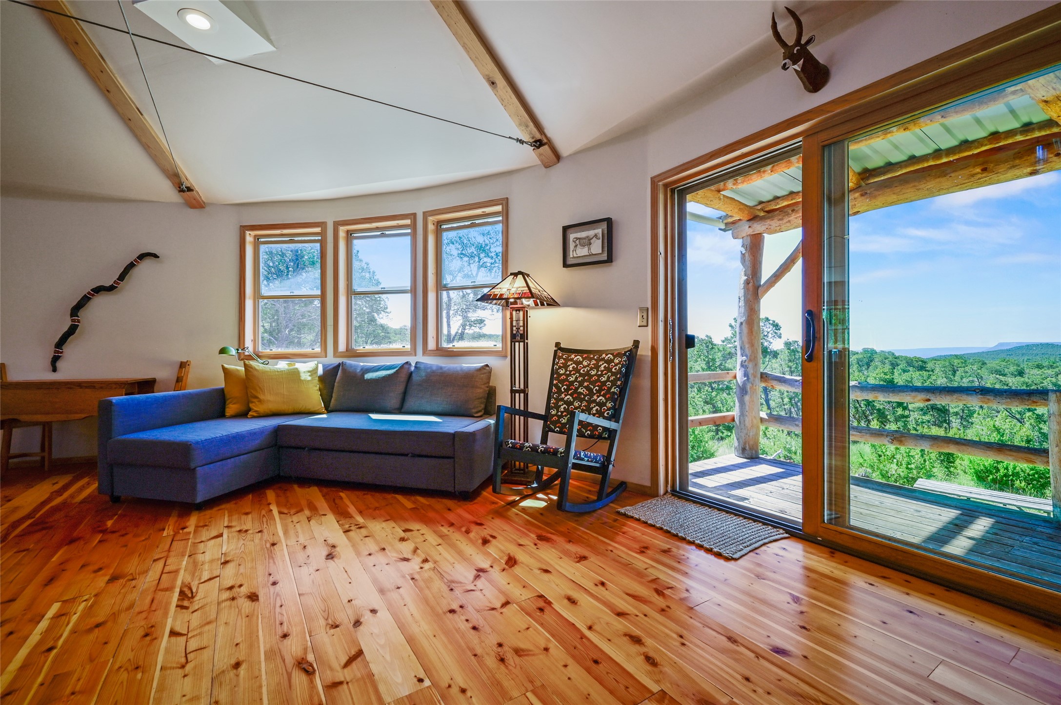 Tucked away in the Santa Fe National Forest is where a peaceful off grid retreat awaits you! 40 acres of mature pinon, ponderosa & juniper surrounded by thousands of acres of untouched forest creates the ultimate setting to relax, recreate & get away from it all. Enjoy your newer off grid home, featuring a 2200 gallon water collection system with multi step filtration system. Solar power with brand new lithium batteries, composting toilet and a Vermont castings wood stove completes your comfortable get away in the woods! Locally milled wood floors, fully insulated framed walls and roof, low maintenance metal siding. Views of Rowe mesa. Peace & quiet is calling! Will you answer? Owner financing considered.