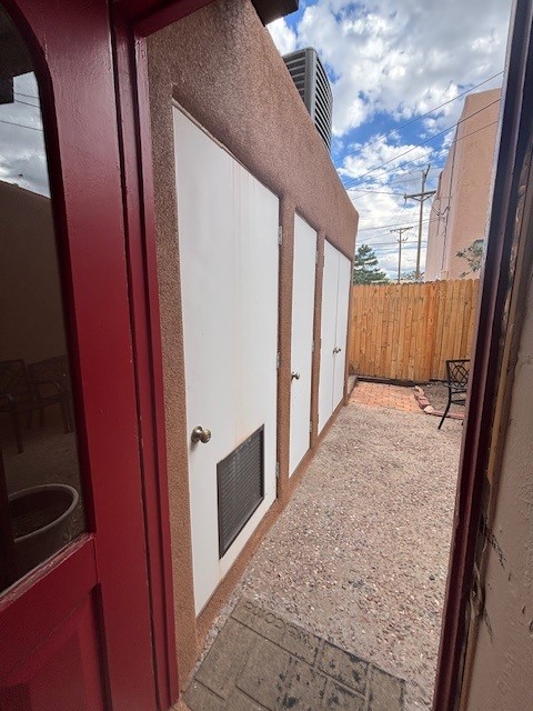 This Condo is located in the center of South Capital across the street from Body and Clafoutis! Walk to everything, Trader Joes, Trove, Maria's, or Whole Foods! This large, open and comfortable condo features Santa Fe detailing like beams and kiva fireplace. It has 3 large bedrooms and 2 baths. This lovely property can be used as one large home, or two separate rentals for residential or professional office space. Newly upgraded kitchen with clean lines and bright, sunny interior, new carpet and boxcar tile, insulated acoustic wall for privacy, tiled baths, built in bookshelves, cozy courtyard, fenced and with plenty ofparking, The perfect Pied de Tierre in a fantastic location in Santa Fe! Was a Vacation Rental, Short term rentals are permitted and one does not need a short term rental permit from the City. Just a simple registration due to zoning. Short term one side and long term the other and this property will generate great income. Or live in one side and run your business from the other. $9,000 dollar decorators allowance being offered by Sellers.
