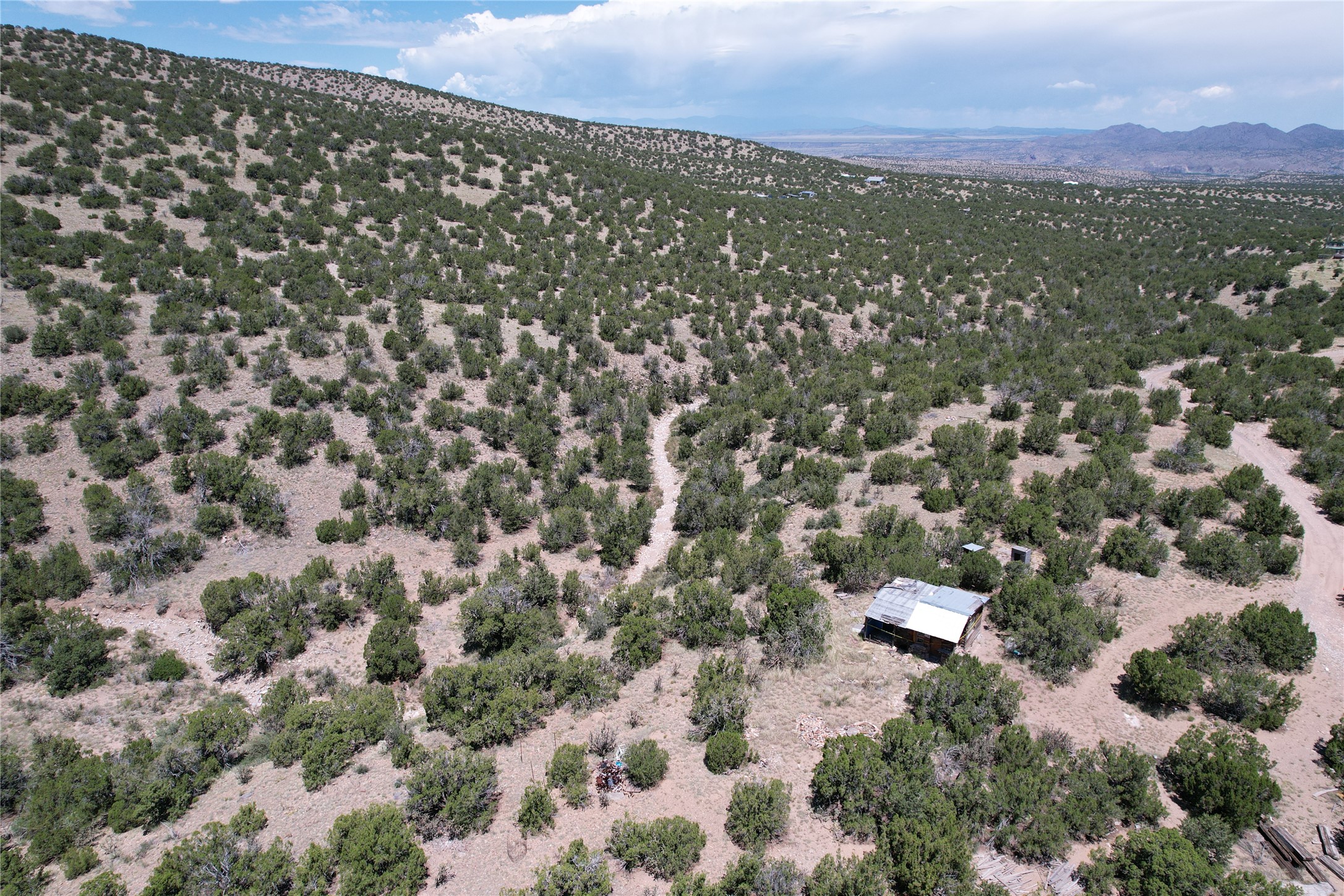 Forty acres (39.94) in the Ortiz Mountain foothills, remote but just 20 minutes from State Highway 14, this land possesses the perfect combination of accessibility and seclusion. The varied topography includes a flat area along the sparsely travelled Stoney Road and a beautiful rocky arroyo, and a sunny hillside with several natural "terraces" descending to a gently sloping plain. Enjoy dramatic views of the nearby Ortiz Mountains, and the distant Santa Fe city lights. Please do not enter the old shack, hazardous conditions may exist.
