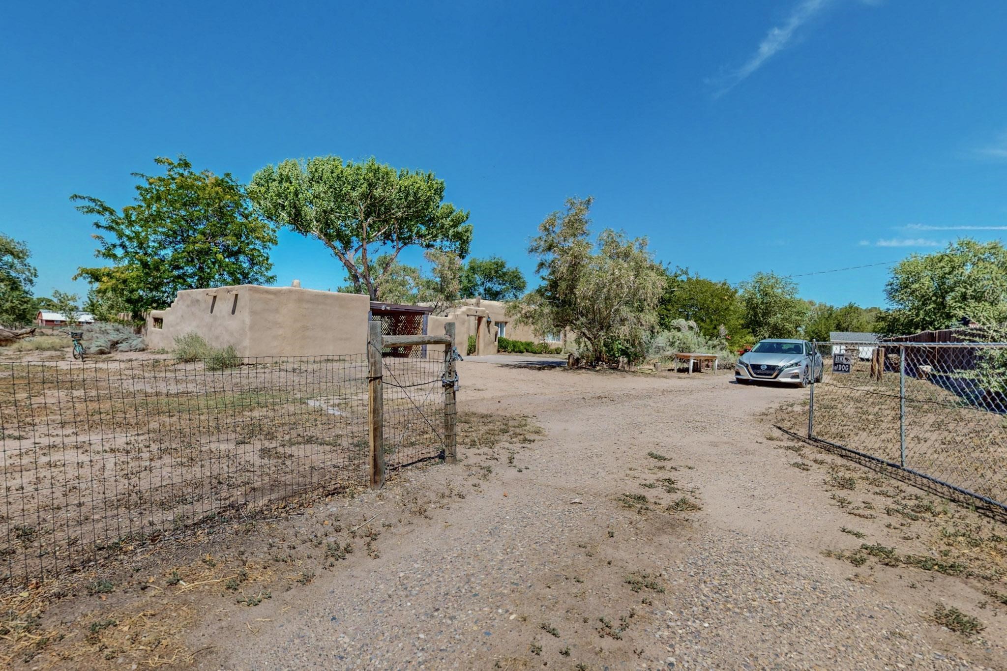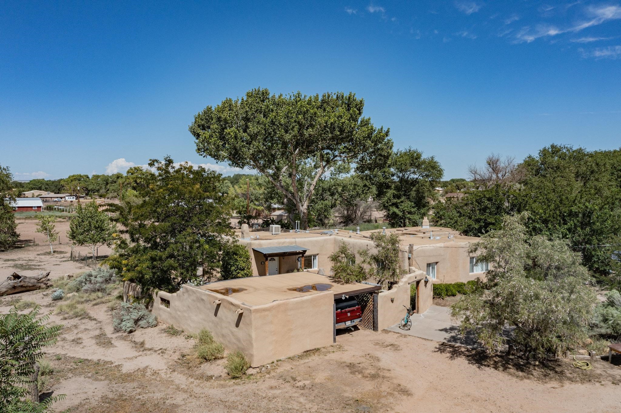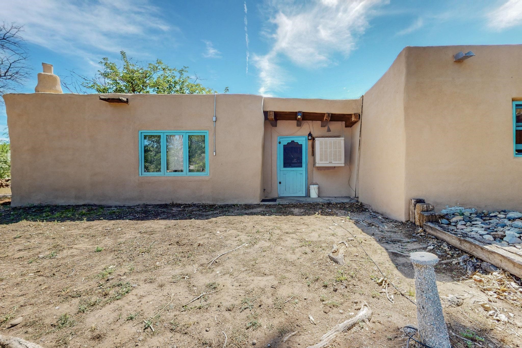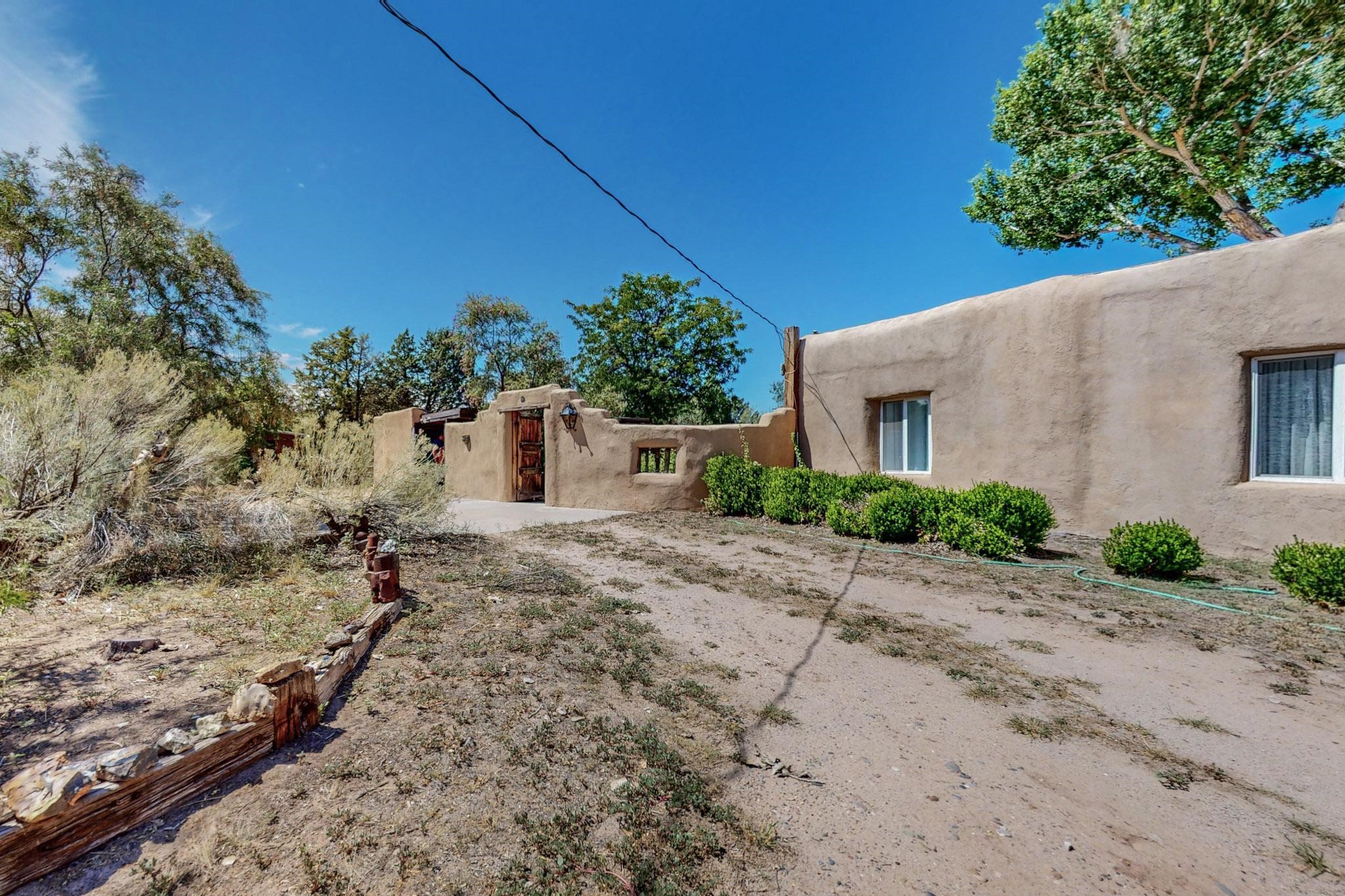 See this well-maintained 200-year-old Santa Fe-style adobe home! This historic gem comes with a new septic tank, a clean well inspection, and a one-year home warranty for added peace of mind. The home features 3-foot thick adobe walls that naturally regulate temperature, offering comfort in every season. Additions were made in the 1950s and 1990s. With its rustic charm and rich history, this property is a rare find. The expansive outdoor space includes a full workshop, carport, horse barn, & multiple private patio areas, perfect for serene mornings and starlit evenings. Most of the house is wheelchair accessible. With 2 separate .75-acre lots totaling 1.5 acres, there's potential to build on the second lot & room to accommodate animals. Don't miss your chance to own a piece of NM History.