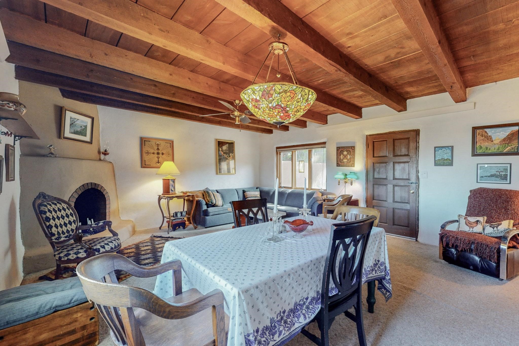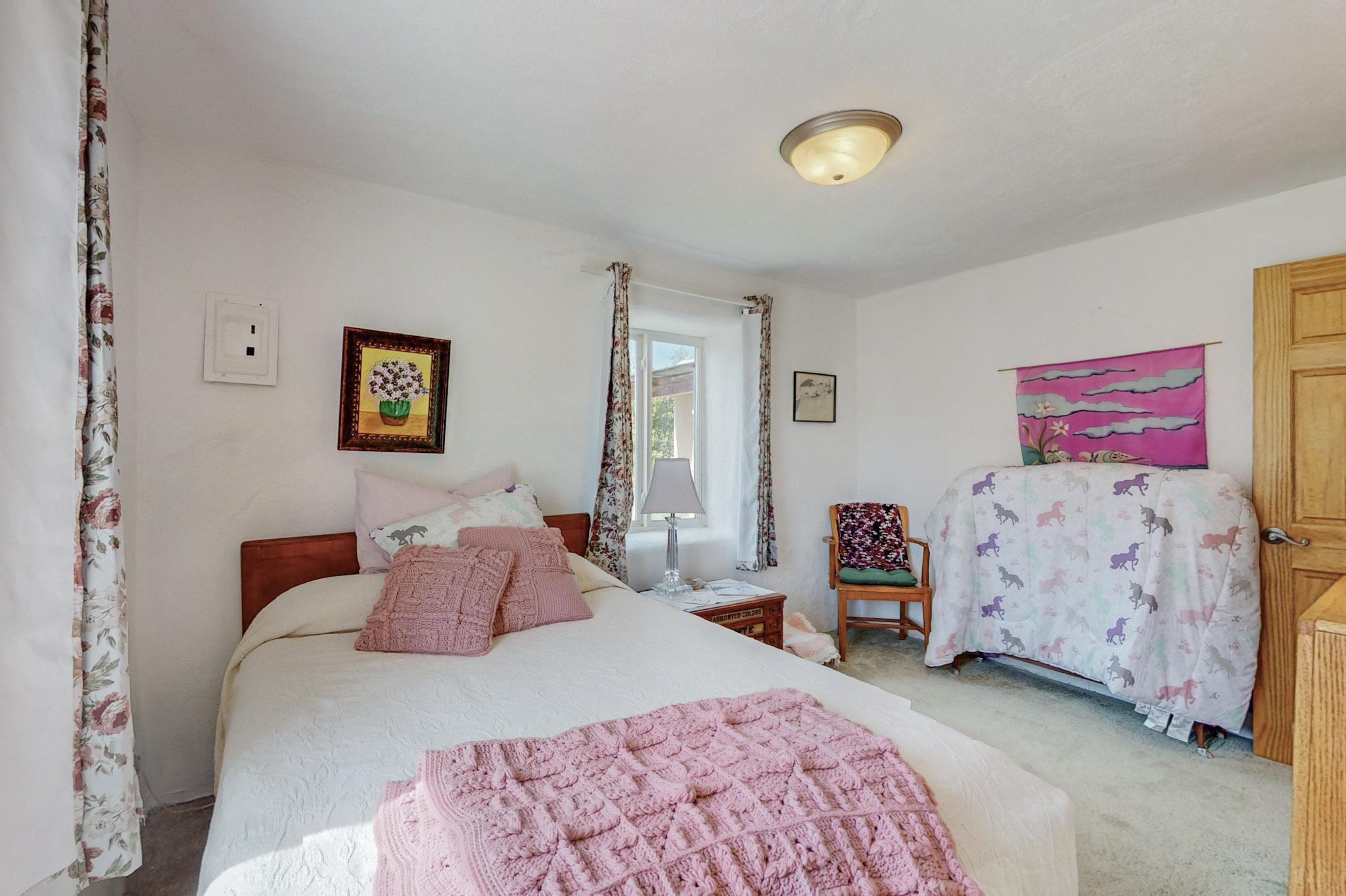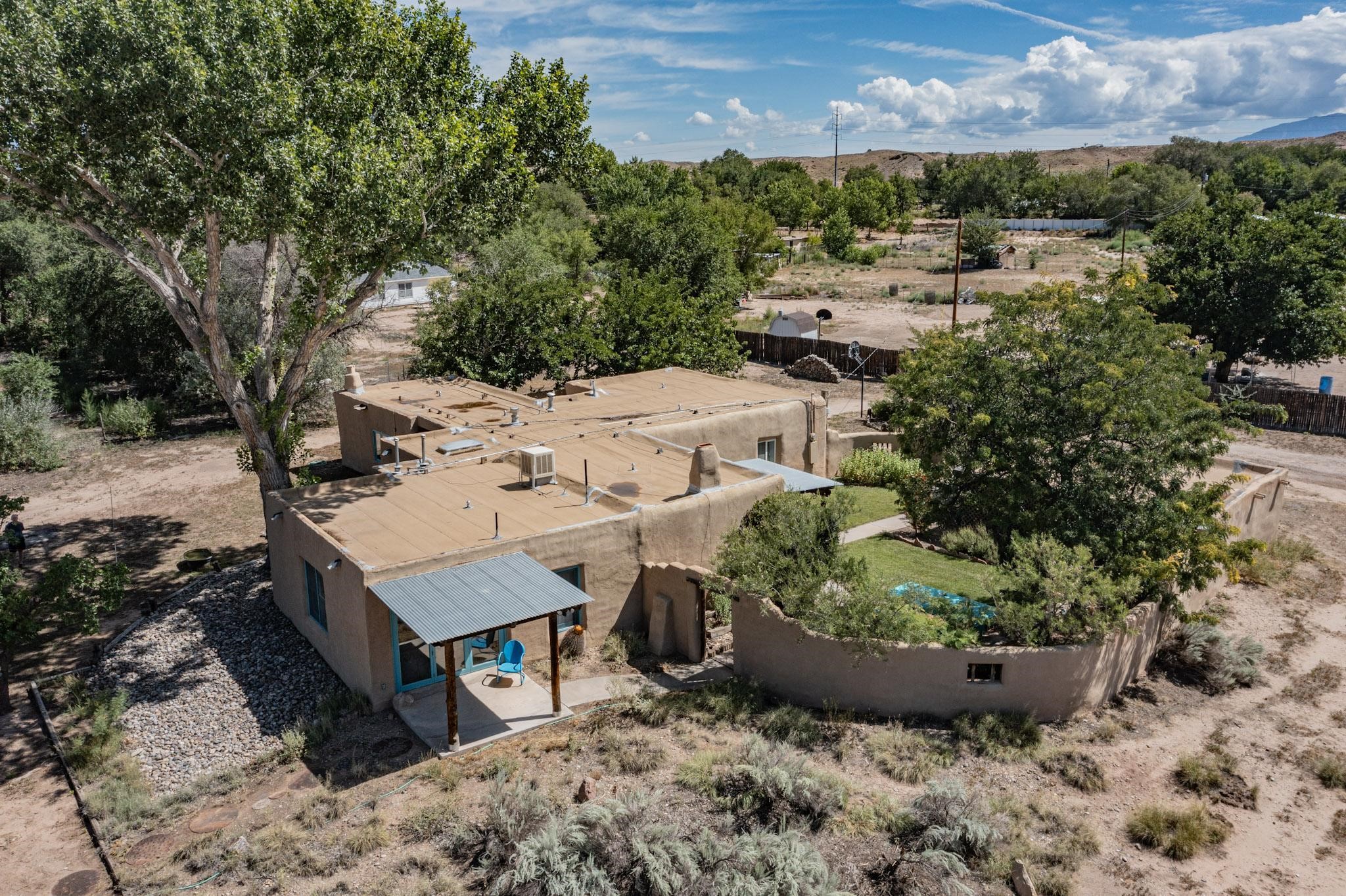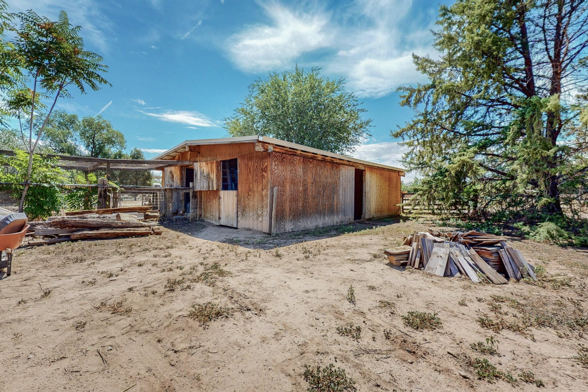See this well-maintained 200-year-old Santa Fe-style adobe home! This historic gem comes with a new septic tank, a clean well inspection, and a one-year home warranty for added peace of mind. The home features 3-foot thick adobe walls that naturally regulate temperature, offering comfort in every season. Additions were made in the 1950s and 1990s. With its rustic charm and rich history, this property is a rare find. The expansive outdoor space includes a full workshop, carport, horse barn, & multiple private patio areas, perfect for serene mornings and starlit evenings. Most of the house is wheelchair accessible. With 2 separate .75-acre lots totaling 1.5 acres, there's potential to build on the second lot & room to accommodate animals. Don't miss your chance to own a piece of NM History.