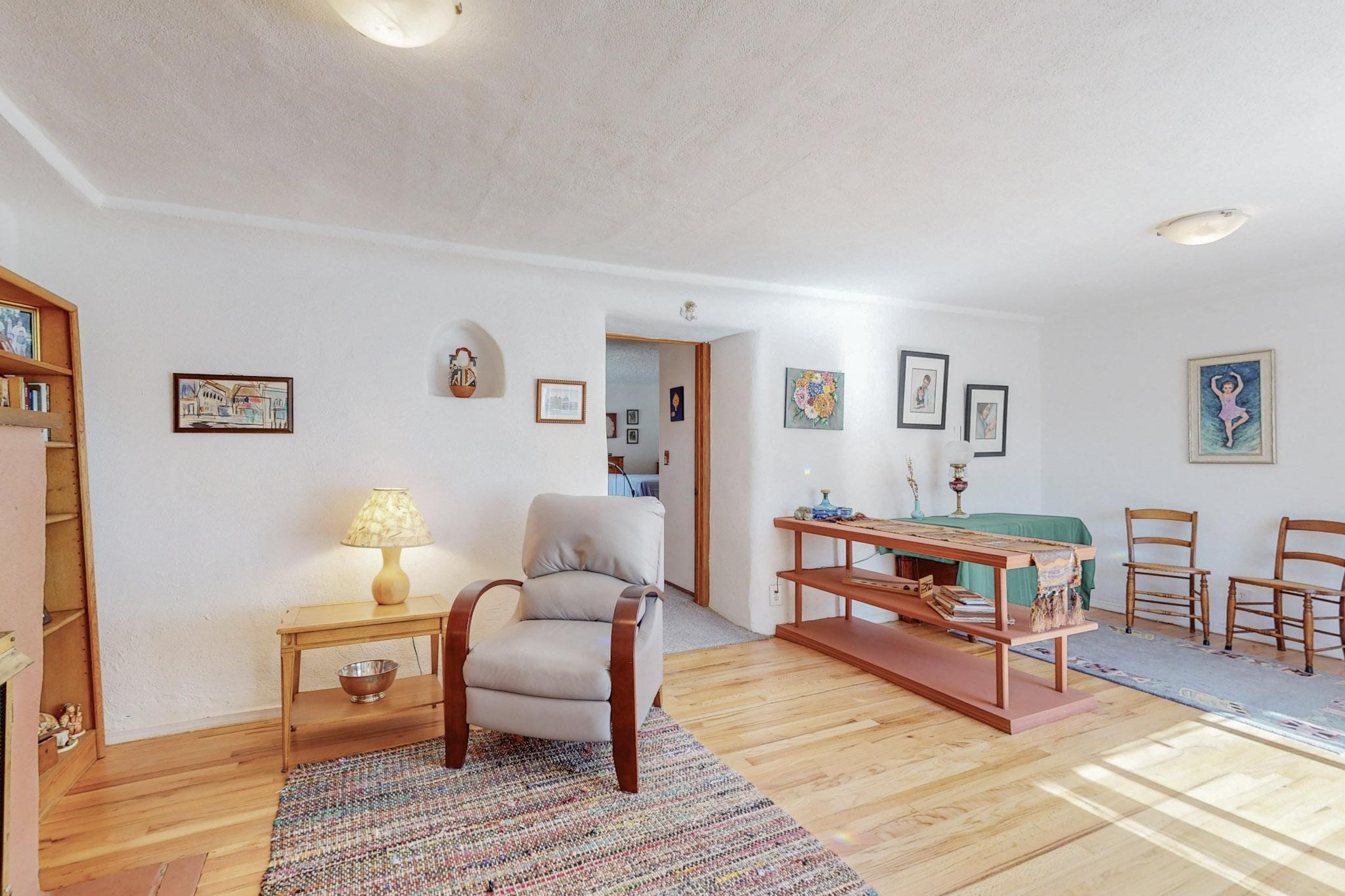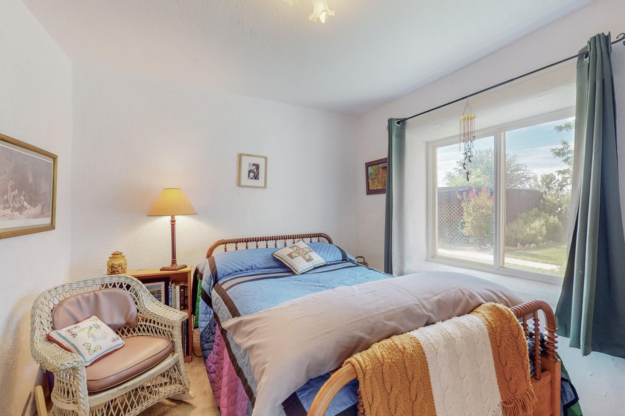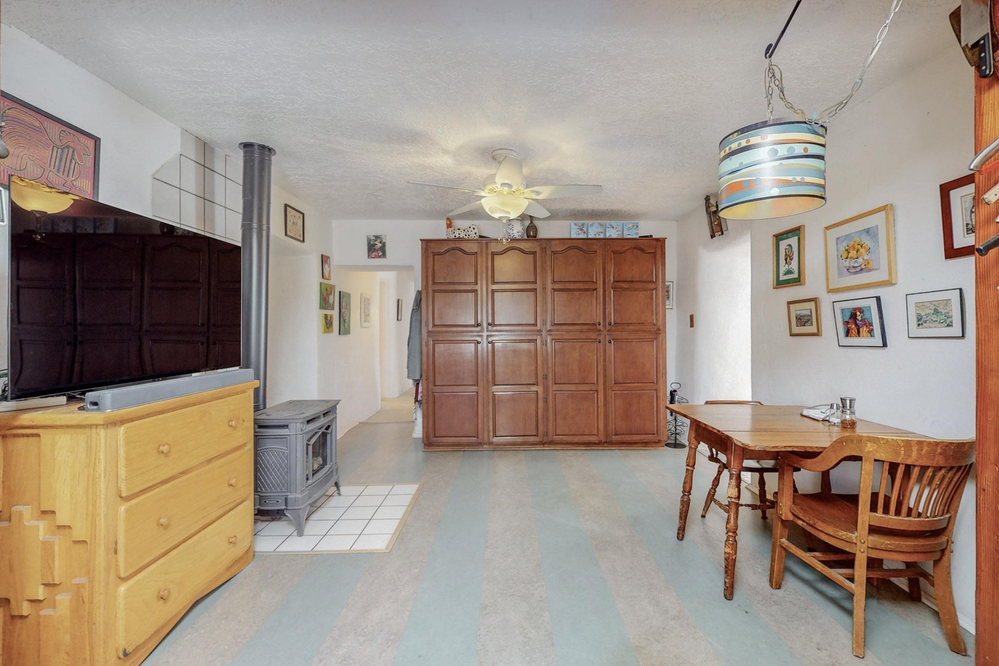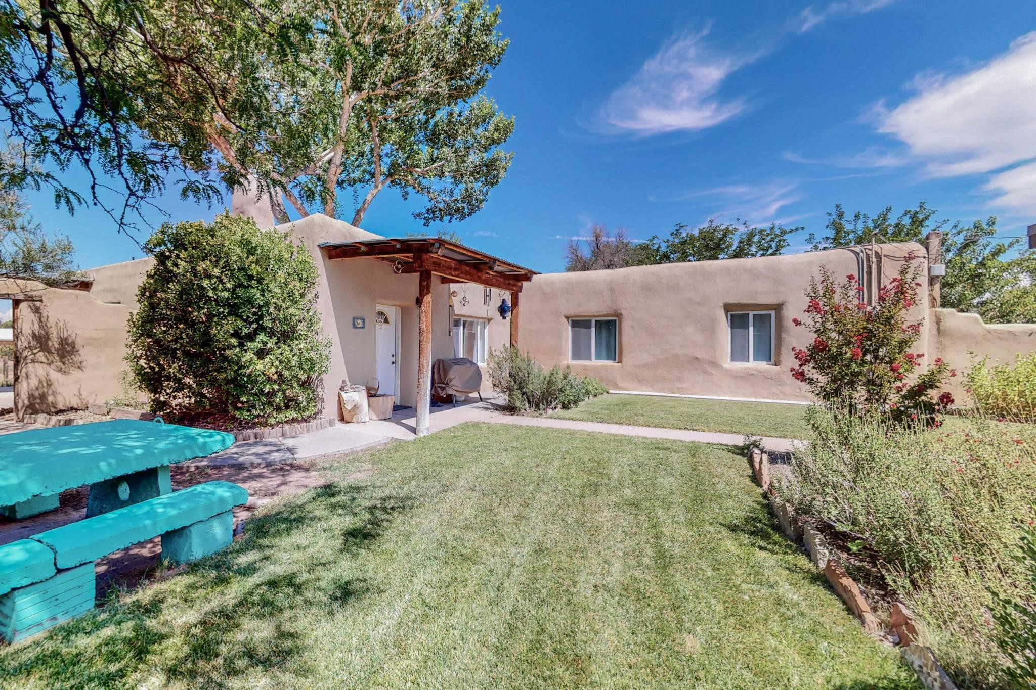 See this well-maintained 200-year-old Santa Fe-style adobe home! This historic gem comes with a new septic tank, a clean well inspection, and a one-year home warranty for added peace of mind. The home features 3-foot thick adobe walls that naturally regulate temperature, offering comfort in every season. Additions were made in the 1950s and 1990s. With its rustic charm and rich history, this property is a rare find. The expansive outdoor space includes a full workshop, carport, horse barn, & multiple private patio areas, perfect for serene mornings and starlit evenings. Most of the house is wheelchair accessible. With 2 separate .75-acre lots totaling 1.5 acres, there's potential to build on the second lot & room to accommodate animals. Don't miss your chance to own a piece of NM History.