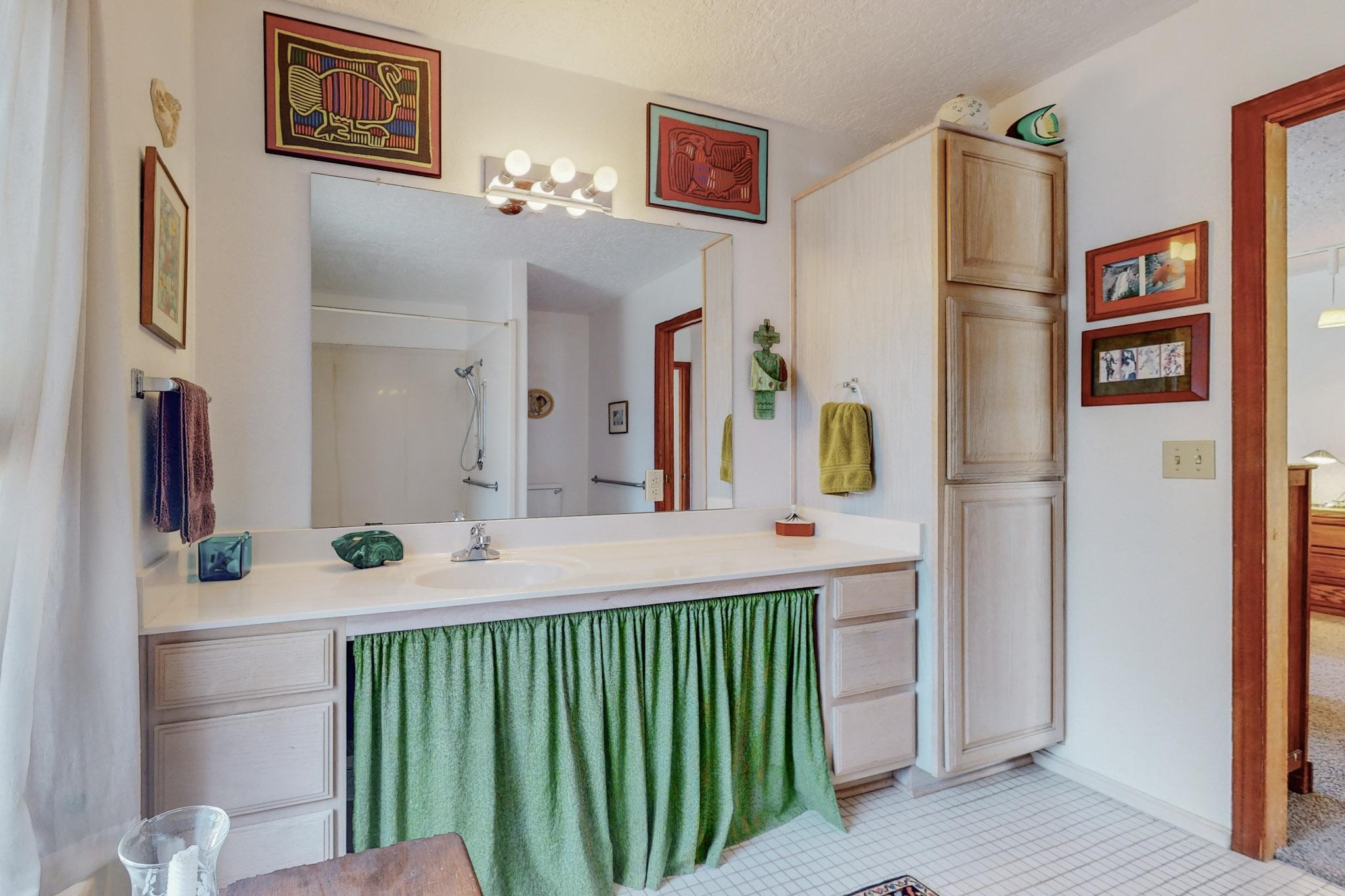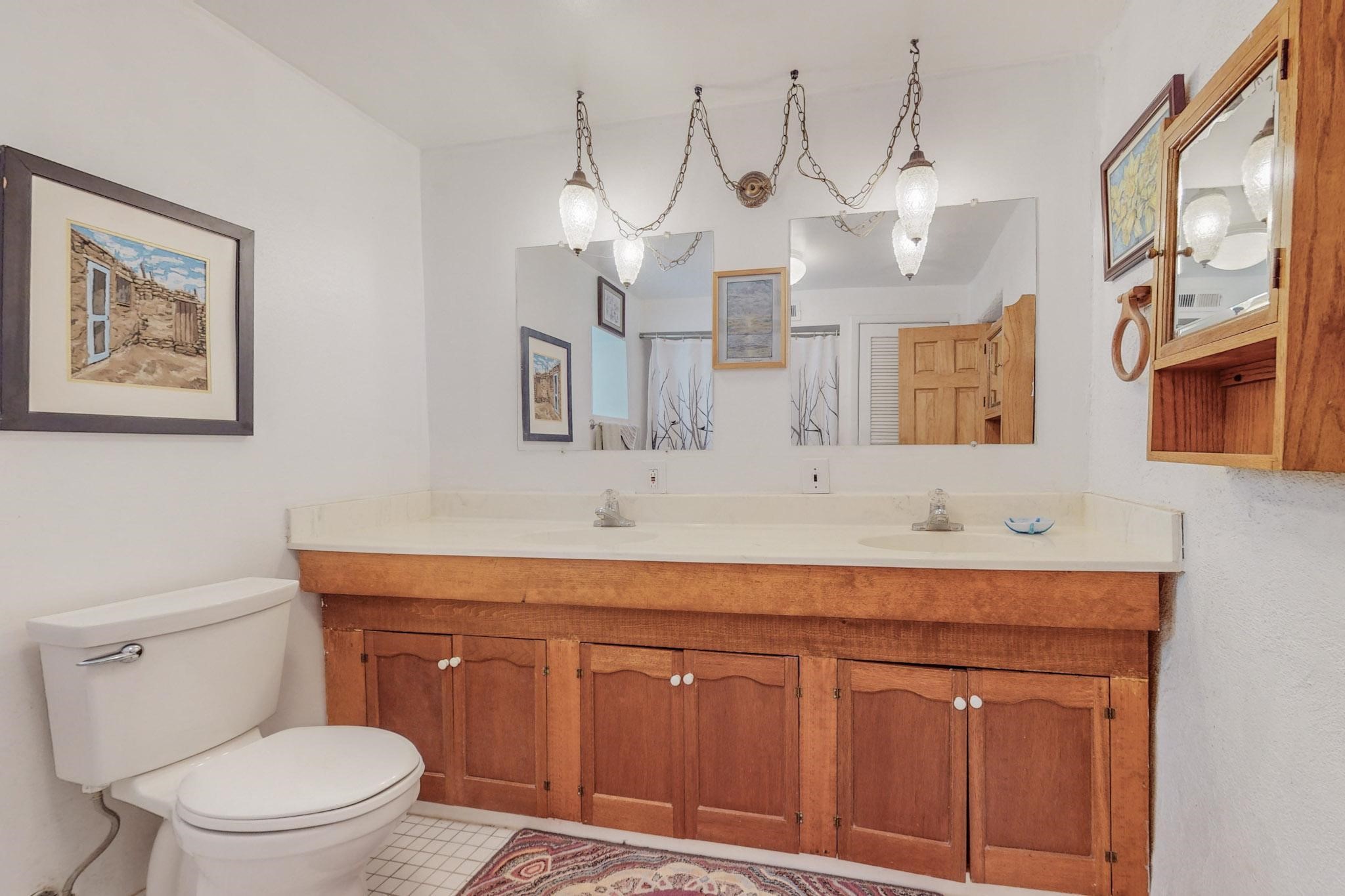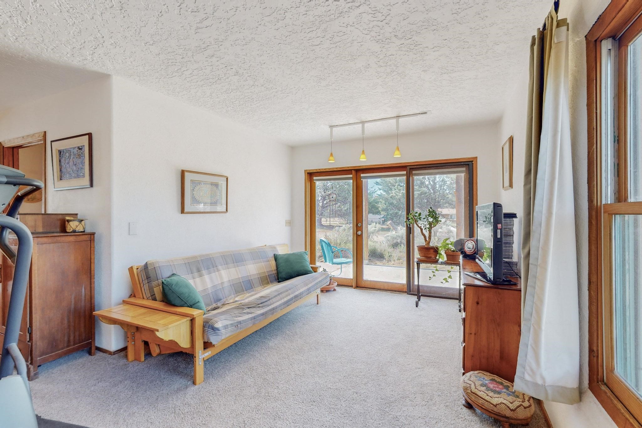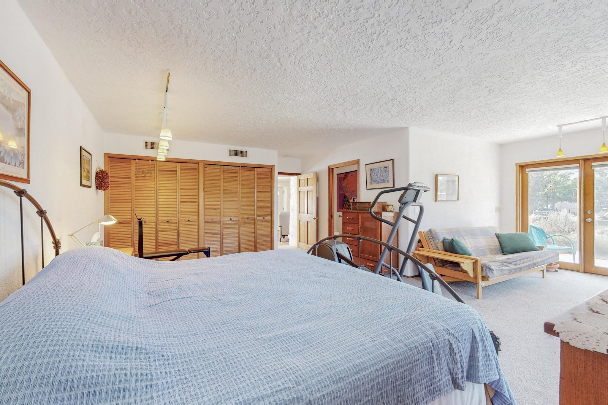 See this well-maintained 200-year-old Santa Fe-style adobe home! This historic gem comes with a new septic tank, a clean well inspection, and a one-year home warranty for added peace of mind. The home features 3-foot thick adobe walls that naturally regulate temperature, offering comfort in every season. Additions were made in the 1950s and 1990s. With its rustic charm and rich history, this property is a rare find. The expansive outdoor space includes a full workshop, carport, horse barn, & multiple private patio areas, perfect for serene mornings and starlit evenings. Most of the house is wheelchair accessible. With 2 separate .75-acre lots totaling 1.5 acres, there's potential to build on the second lot & room to accommodate animals. Don't miss your chance to own a piece of NM History.