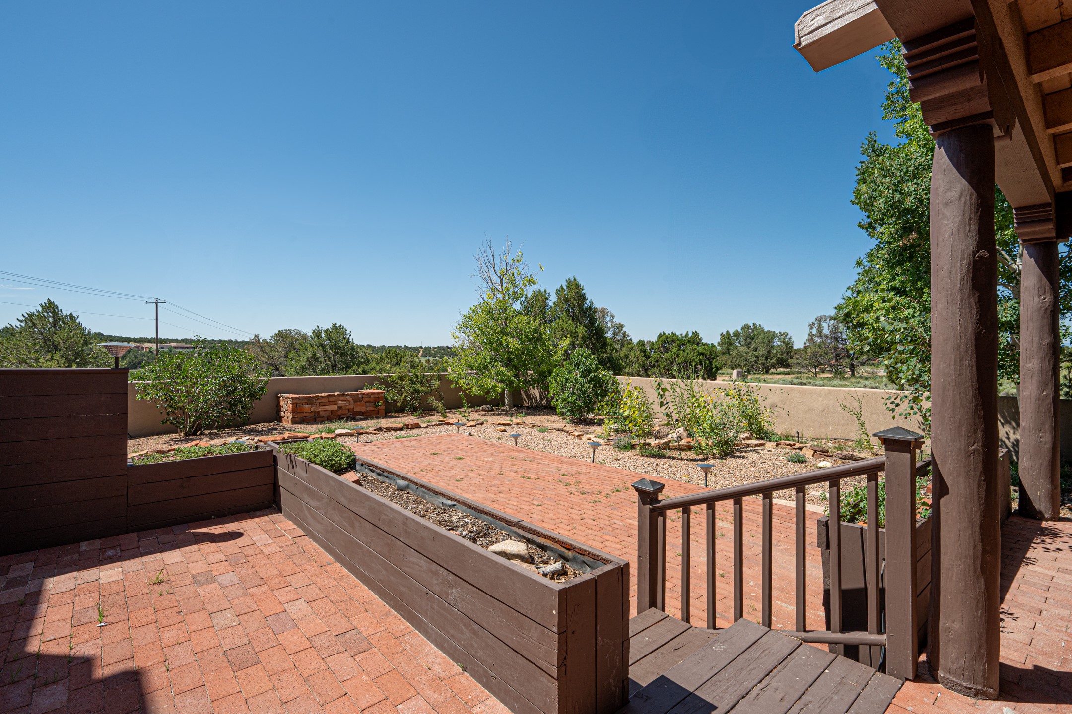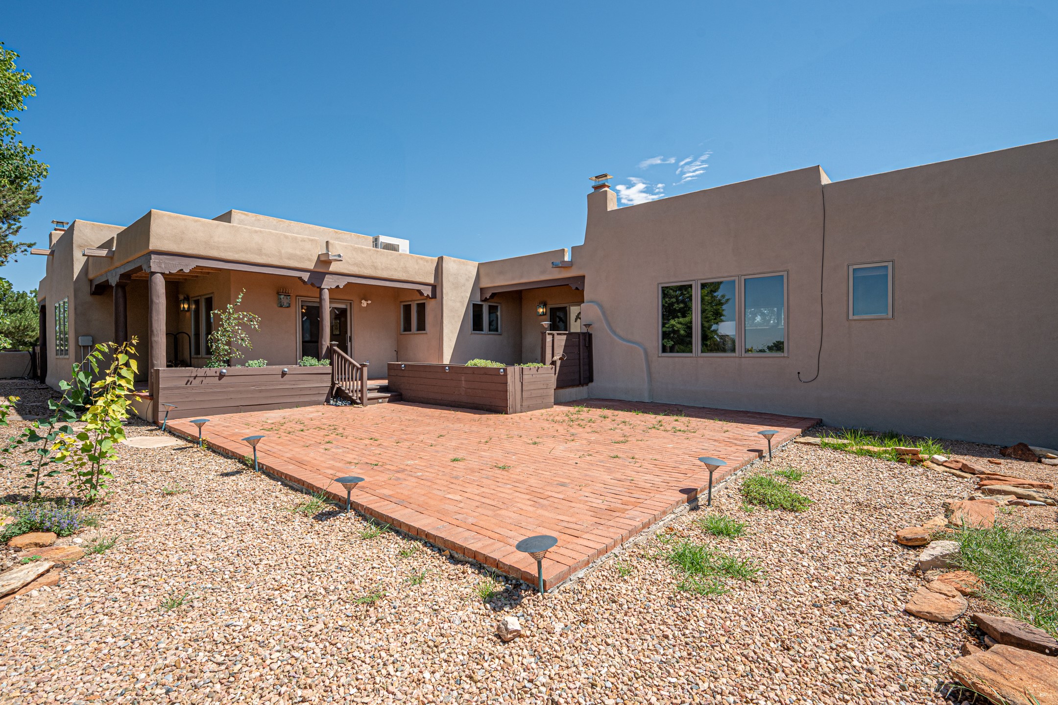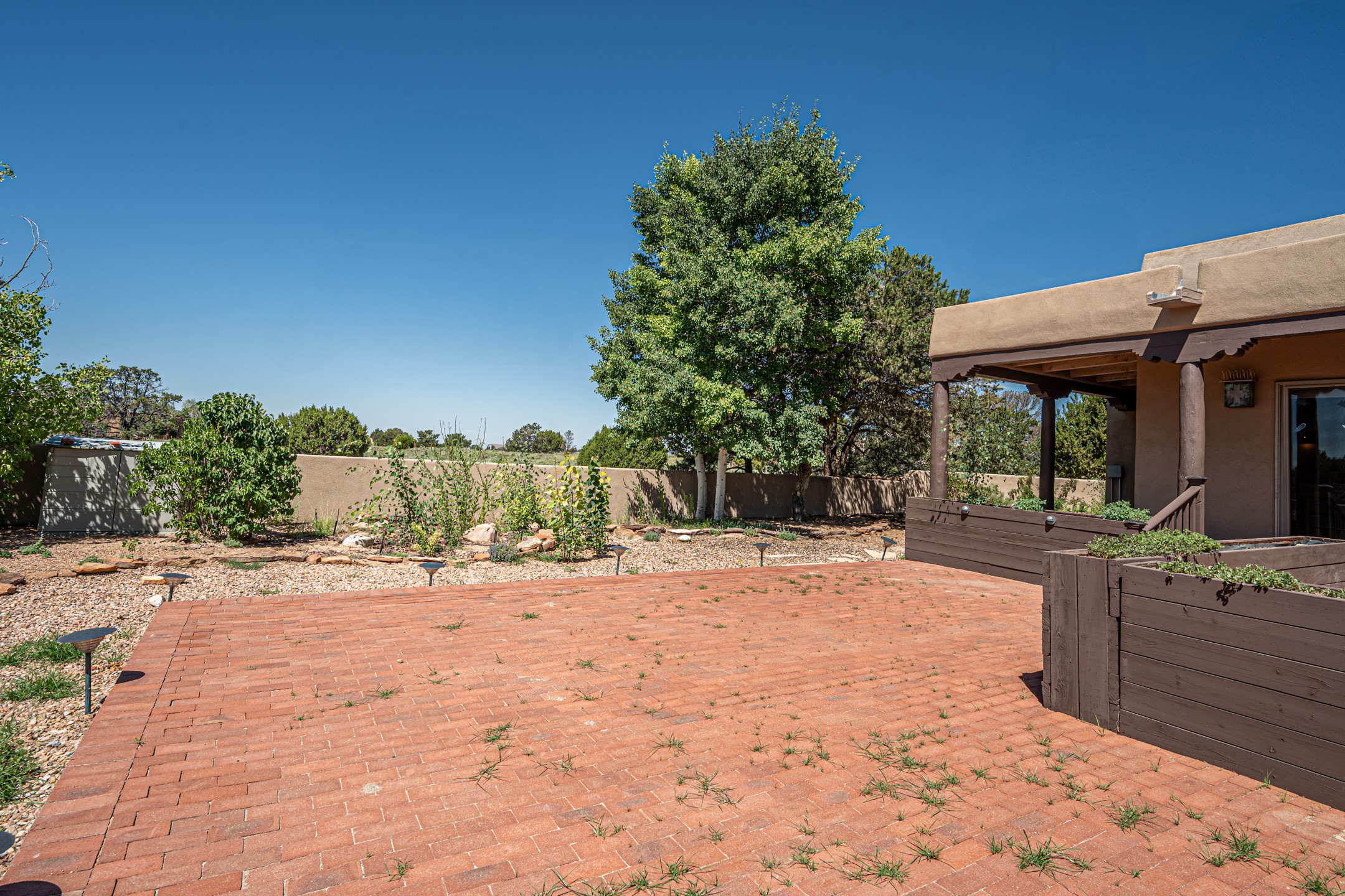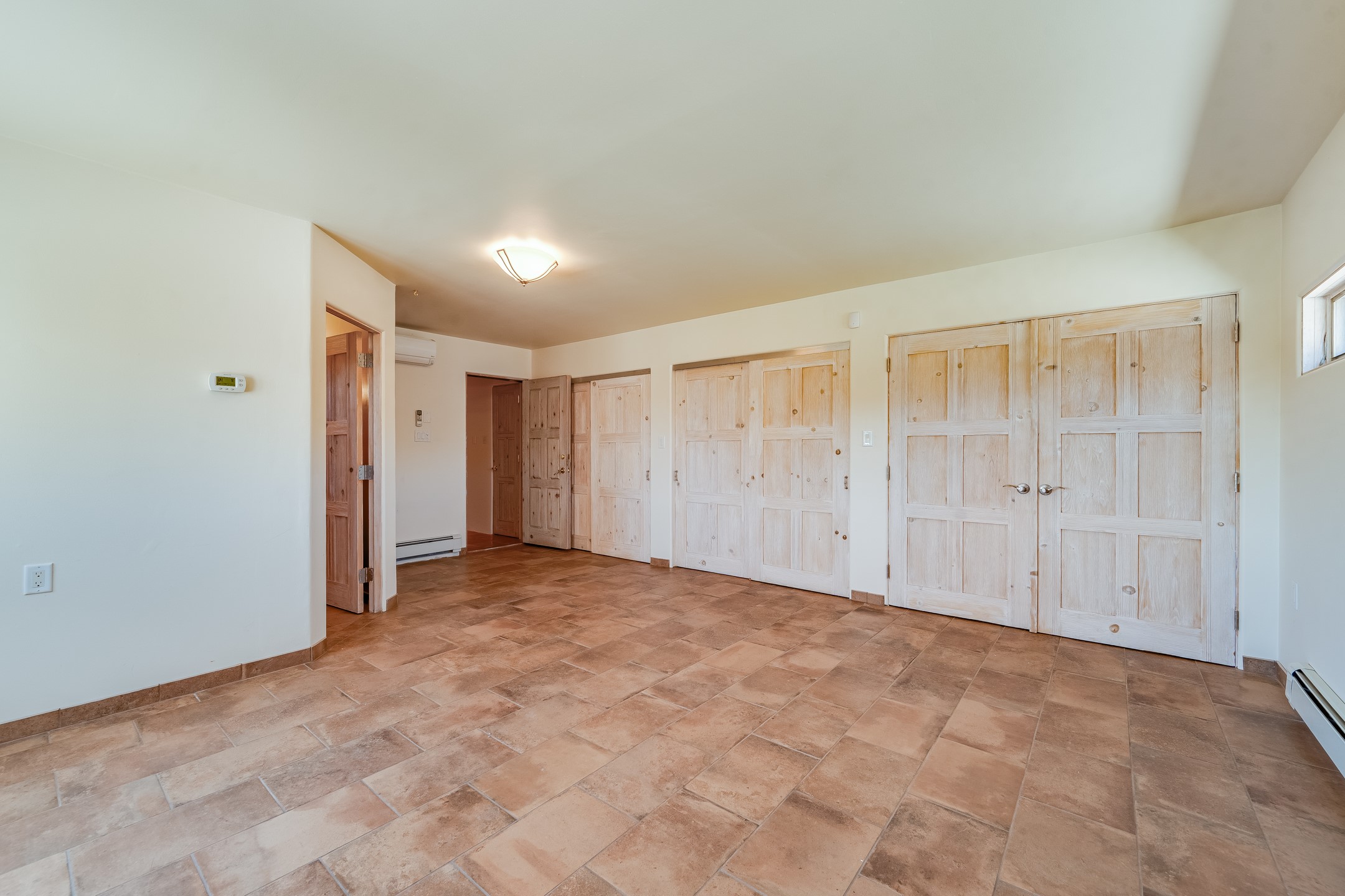 Southwestern charm meets modern comfort and functionality with this home with 3 peaceful acres with tranquil views of both sunrise and sunsets. This lovely property offers the best of rural living just minutes from the amenities of town. The home's open living area is warm and inviting, featuring Saltillo tile floors, high ceilings, and a traditional kiva fireplace--the perfect space to relax or entertain. The large master suite is a private sanctuary with its own sitting area and a second kiva fireplace, offering the kind of comfort and space that's rare to find. A separate bonus room with its own bath adds incredible flexibility--ideal as a guest suite, private office, or artist's studio. Additional features include community water, radiant in-floor heating, natural gas, and mini-split units for cooling, ensuring comfort year-round. Located in the Eldorado school system, this home offers a rare blend of privacy, convenience, and natural beauty. Home has been pre-inspected. If you have horses to bring, this property delivers with a two-stall barn, a half-acre turnout, and direct access to an easement which can be used for riding. Whether you want to saddle up or just take a peaceful hike, you can head out your back door.