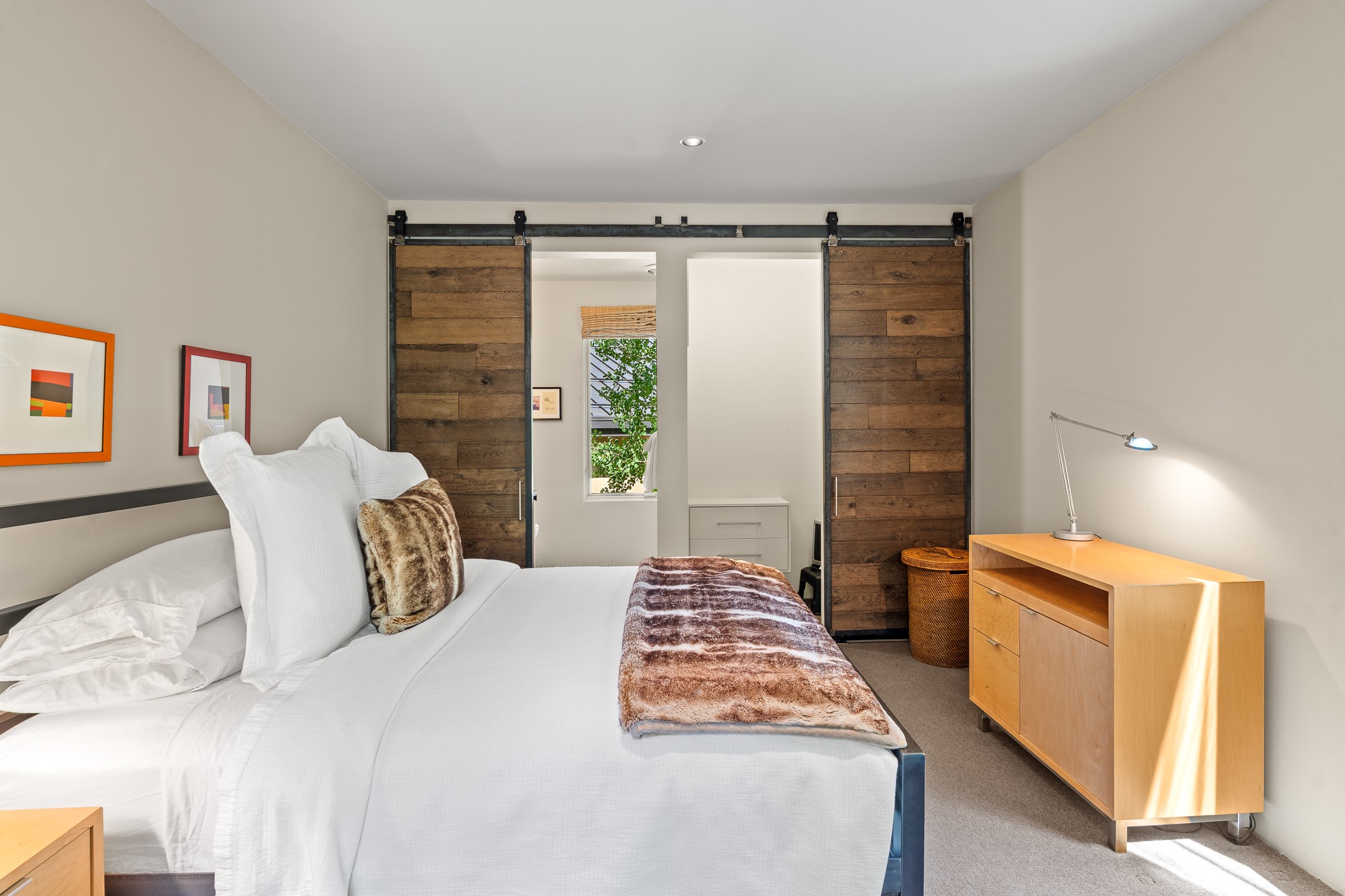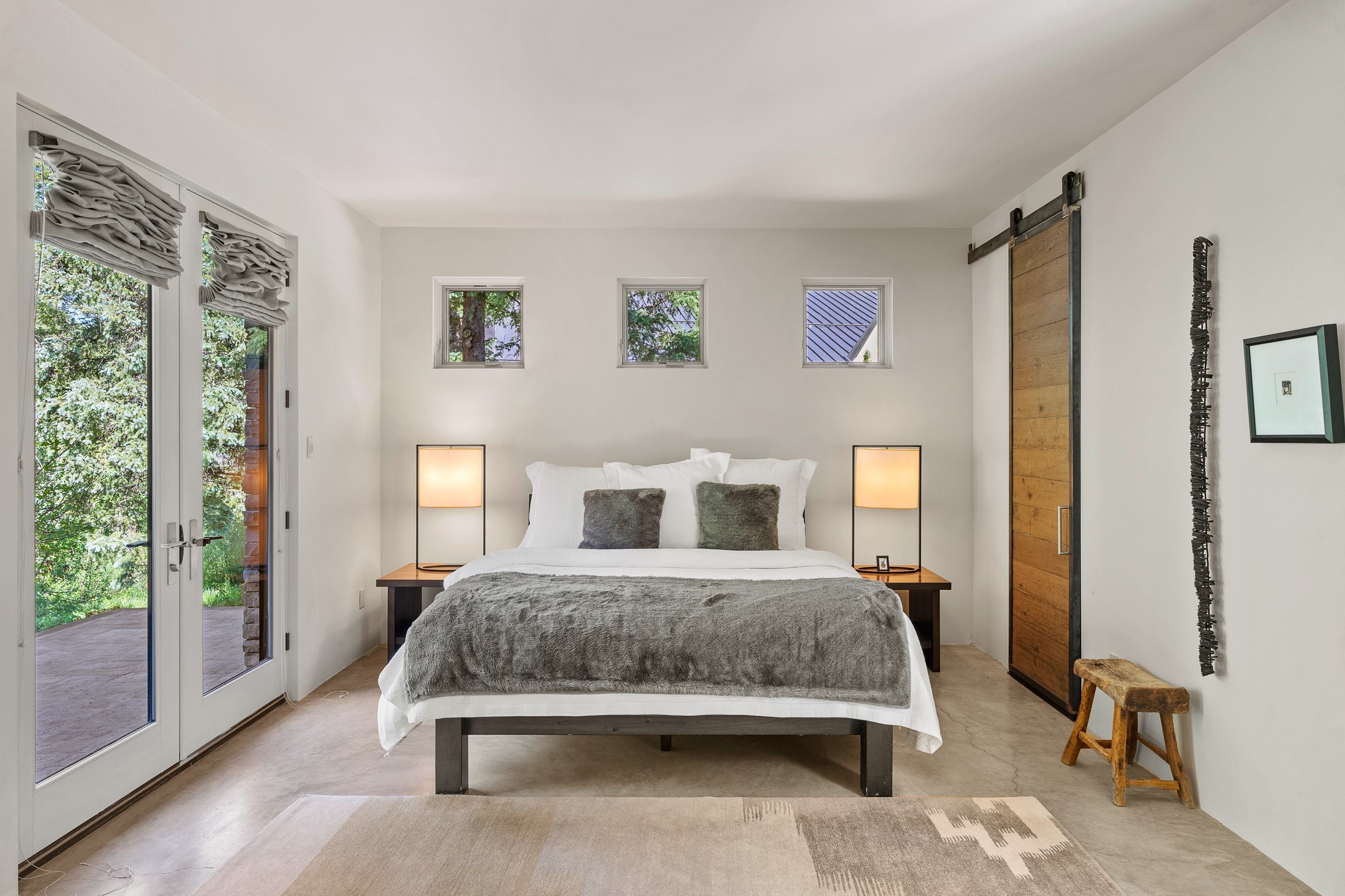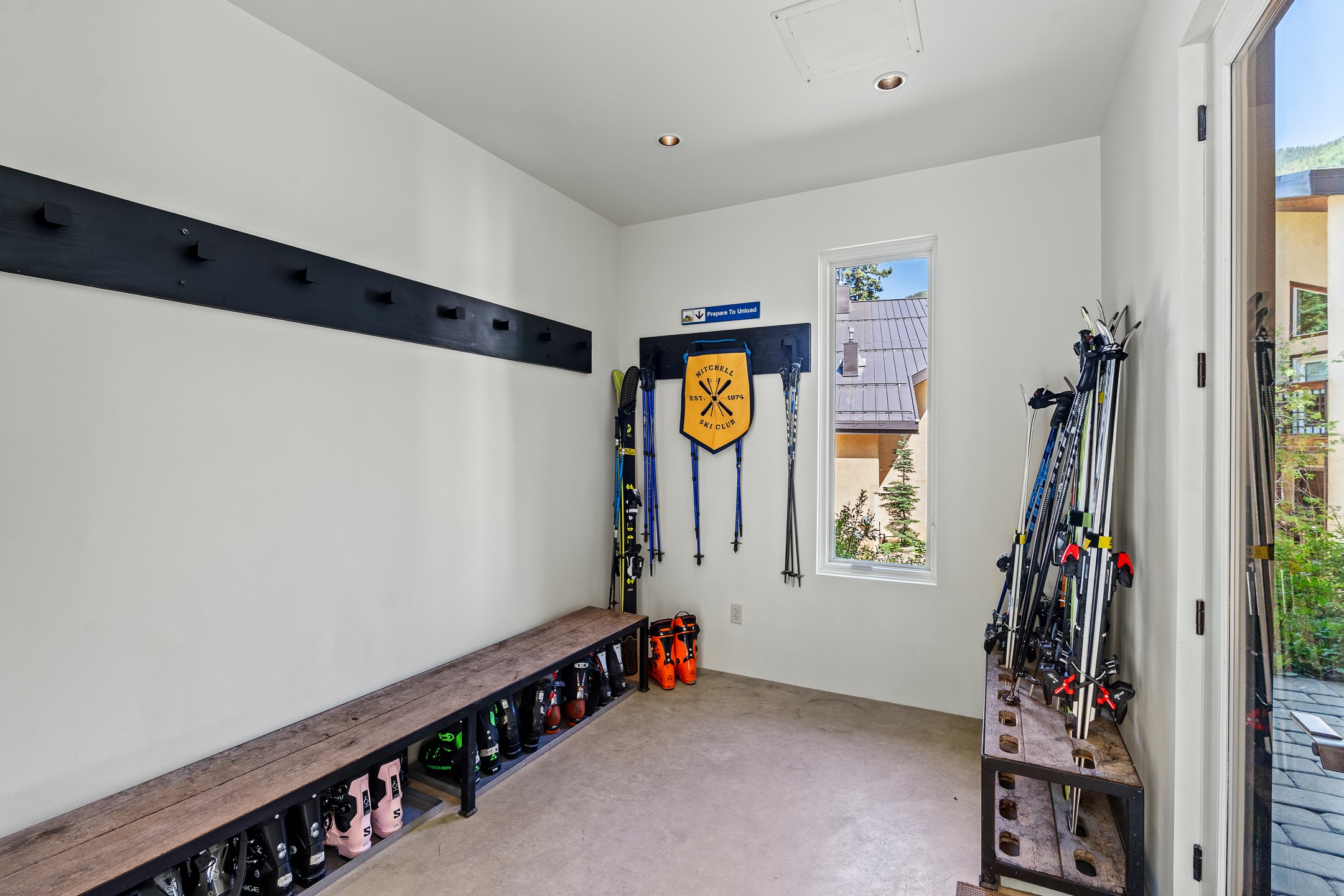 Situated in the heart of Taos Ski Valley, this one-of-a-kind Contemporary Modern Mountain Home redefines alpine luxury. Set on a rare corner lot spanning over one-third of an acre, the property is graced with more than 150 feet of the Rio Hondo River, flowing beneath two custom-built bridges that provide direct ski-in/ski-out access. Just a short walk to the base area's two main lifts, the location is simply unmatched. Every detail of this stunning home exudes sophistication and modern elegance. Designed for both comfort and performance, it features high-end finishes throughout, including automated sun shades, radiant in-floor heating, a chef's kitchen with premium appliances, and a luxurious steam shower in the primary suite. A dramatic zinc standing seam roof--engineered to last 80 to 100years--crowns the home, while a natural gas standby generator ensures seamless year-round living. Step outside to the elevated hot tub perched above the river and enjoy serene mountain ambiance like no other. The heated driveway and stone paver walkways offer effortless winter access, while the oversized 3-car garage--with one bay currently transformed into a game room--adds versatility and comfort. A dedicated ski storage room with private locker space and a separate entrance completes the alpine lifestyle experience. The home's thoughtful floor plan offers exceptional privacy and flow. The primary suite features a private office, steam shower, and complete separation from the guest quarters, which are adjacent to a spacious family lounge. A guest suite on the lower level provides additional convenience and flexibility. From its unparalleled riverfront setting to its extraordinary finishes and amenities, there is simply no other home of this caliber in Taos Ski Valley. This is more than a residence--it's an elevated mountain sanctuary. Home is being sold fully furnished, including most artwork.