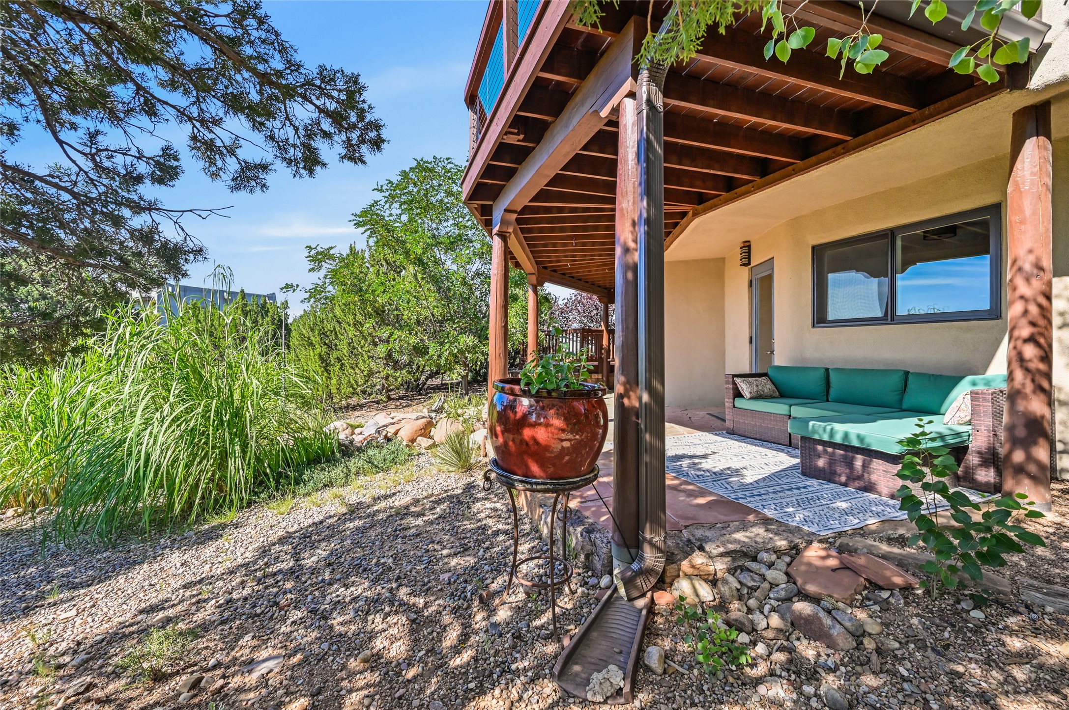 Discover the unparalleled beauty of Santa Fe at 272 Camino Tres Arroyos, a distinctive round home featuring 3 bedrooms, 2 bathrooms, and 2,482 square feet of thoughtfully designed living space. Perfectly positioned on a beautifully landscaped lot, this architecturally unique residence showcases panoramic, unobstructed views that capture the essence of Northern New Mexico's natural beauty. Upon entry, you're welcomed into a warm, light-filled interior that artfully combines modern updates with enduring character. The flowing, circular layout creates inviting spaces ideal for relaxing or entertaining, while recent owner improvements ensure true turnkey comfort. The property also includes a detached 320-square-foot powered studio, perfect for an artist's retreat, home office, or guest space. Enjoy stunning sunsets from the landscaped yard or entertain guests on the private deck surrounded by Santa Fe's iconic vistas. Situated just minutes from town yet feeling worlds away, this extraordinary home offers the best of both convenience and serenity. Don't miss this rare opportunity to own an architecturally distinctive, move-in-ready home with unparalleled views in a coveted Santa Fe location. The home sits 1 mile down a dirt road that is maintained by the neighborhood twice a year.