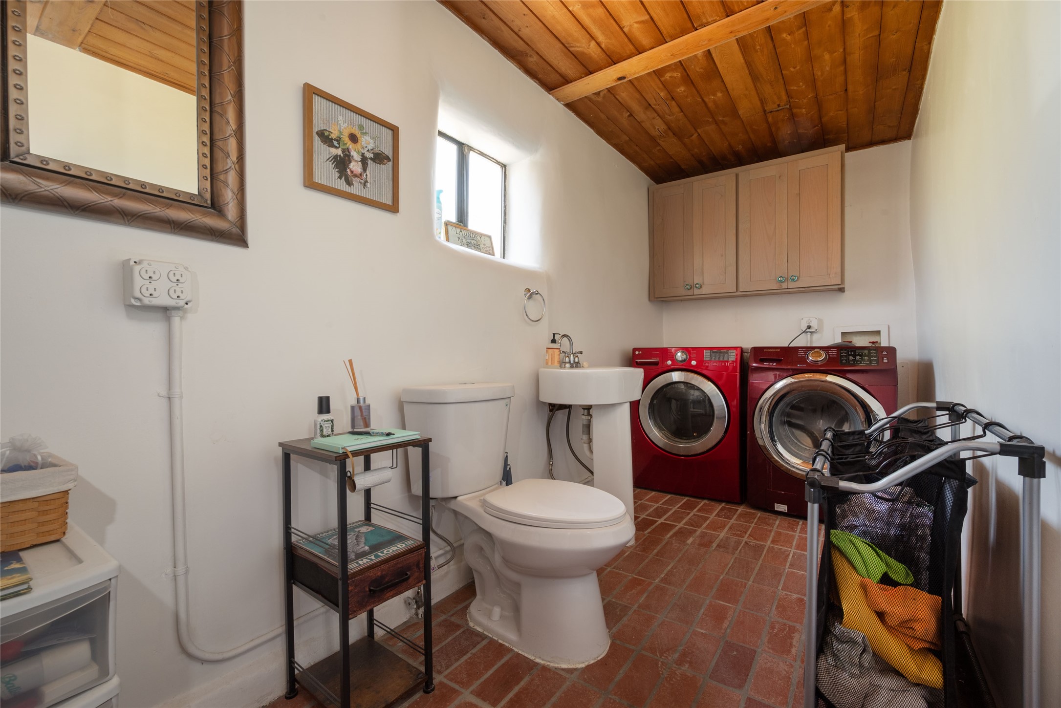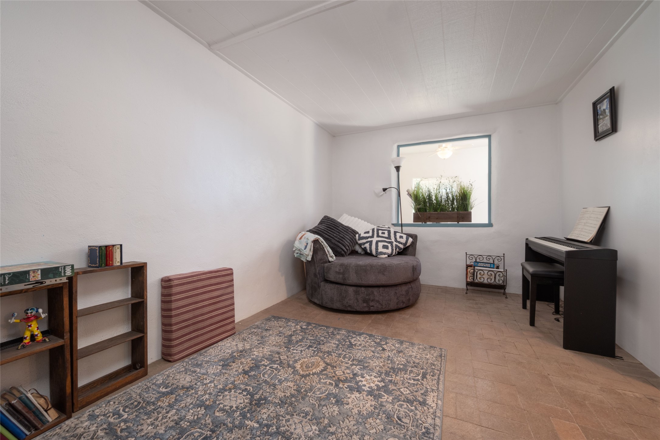 Welcome to 2918 Santeros Road--a serene and beautifully maintained home that blends classic Santa Fe charm with modern comfort. This 3-bedroom, 1 1/2-bath residence offers approximately 2098 sq ft of living space featuring traditional Southwestern elements such as adobe construction, vigas, a kiva fireplace, and plastered walls. The open-concept kitchen/dining area is perfect for entertaining. Outside, enjoy private patios, mature native landscaping, and a peaceful courtyard ideal for relaxing or dining al fresco. Located minutes from shopping, schools, biking trails, and the Santa Fe airport. This property combines tranquility with convenience. Easy access to Hwy 599. As an added bonus there are also multiple out buildings and a single wide mobile home that can be used as storage or upgraded to livable space. There is also plenty of space to expand on the 0.4 acre lot! Upgrades within the last year include: Minisplit AC/Heaters; windows in the living room, primary bed, mud room, and 1 guest bedroom; new electric circuit panel and grounding rods; soaking tub and rain shower in main bathroom. Sellers have also installed a City Water Meter it just needs to be connected if Buyer wants that option.