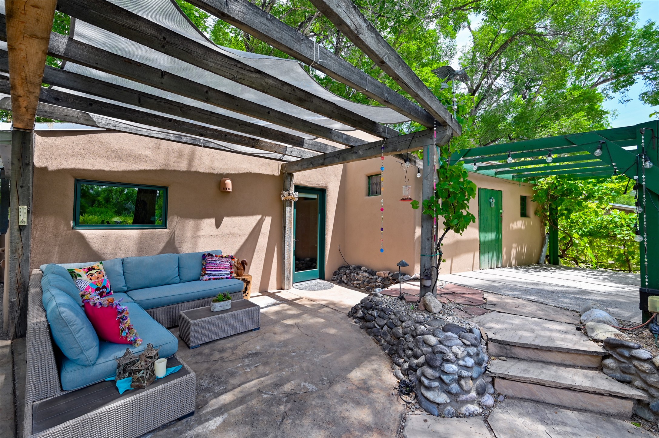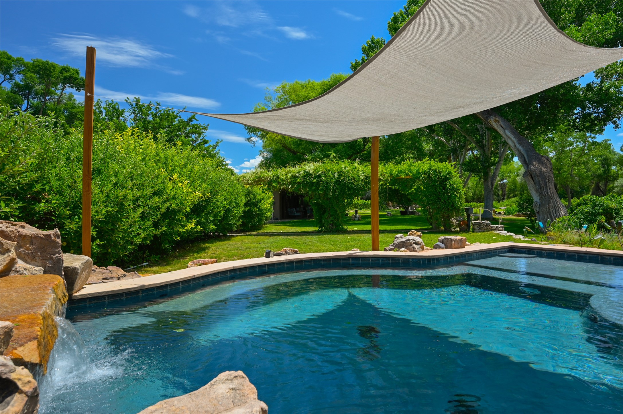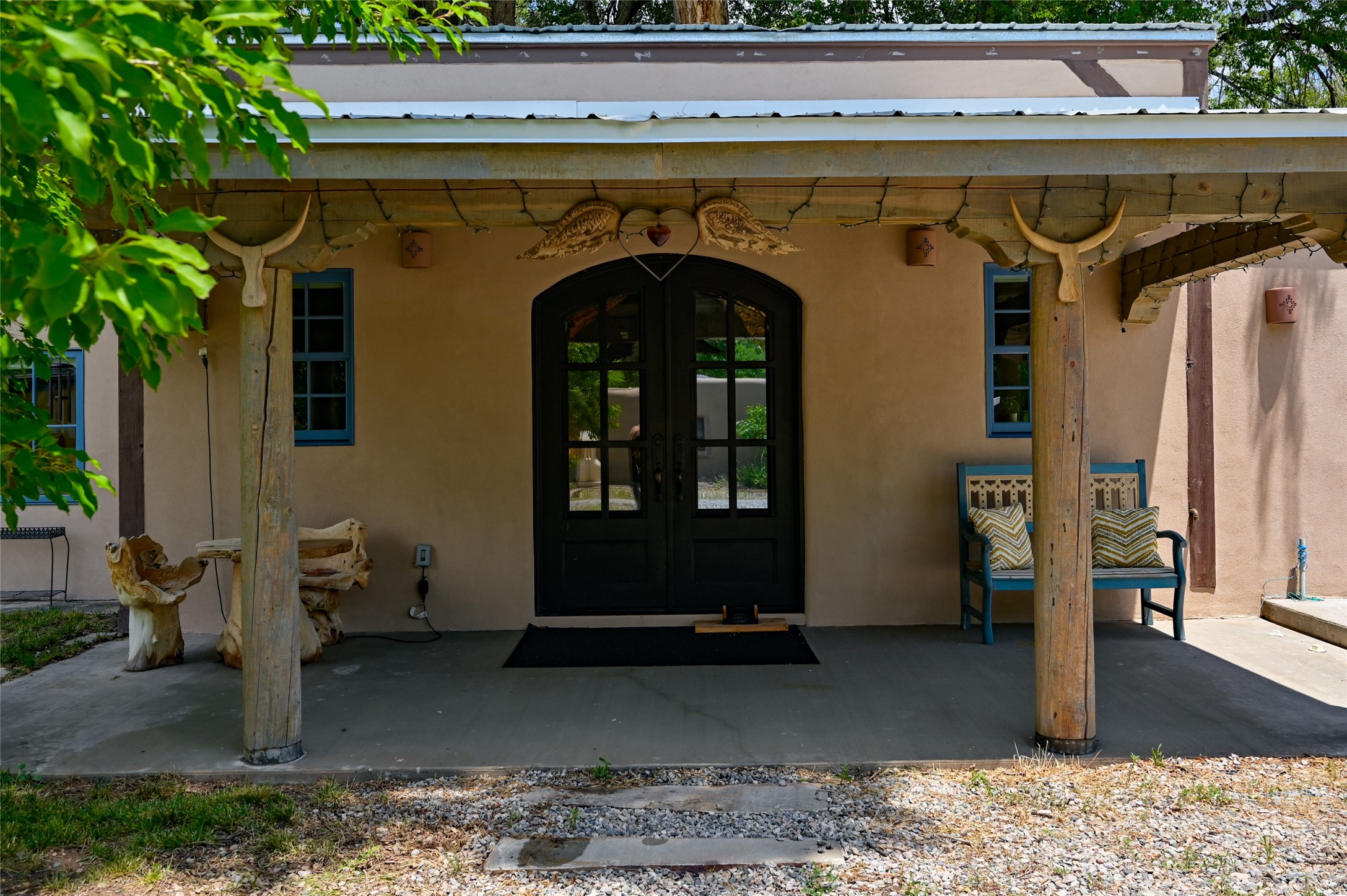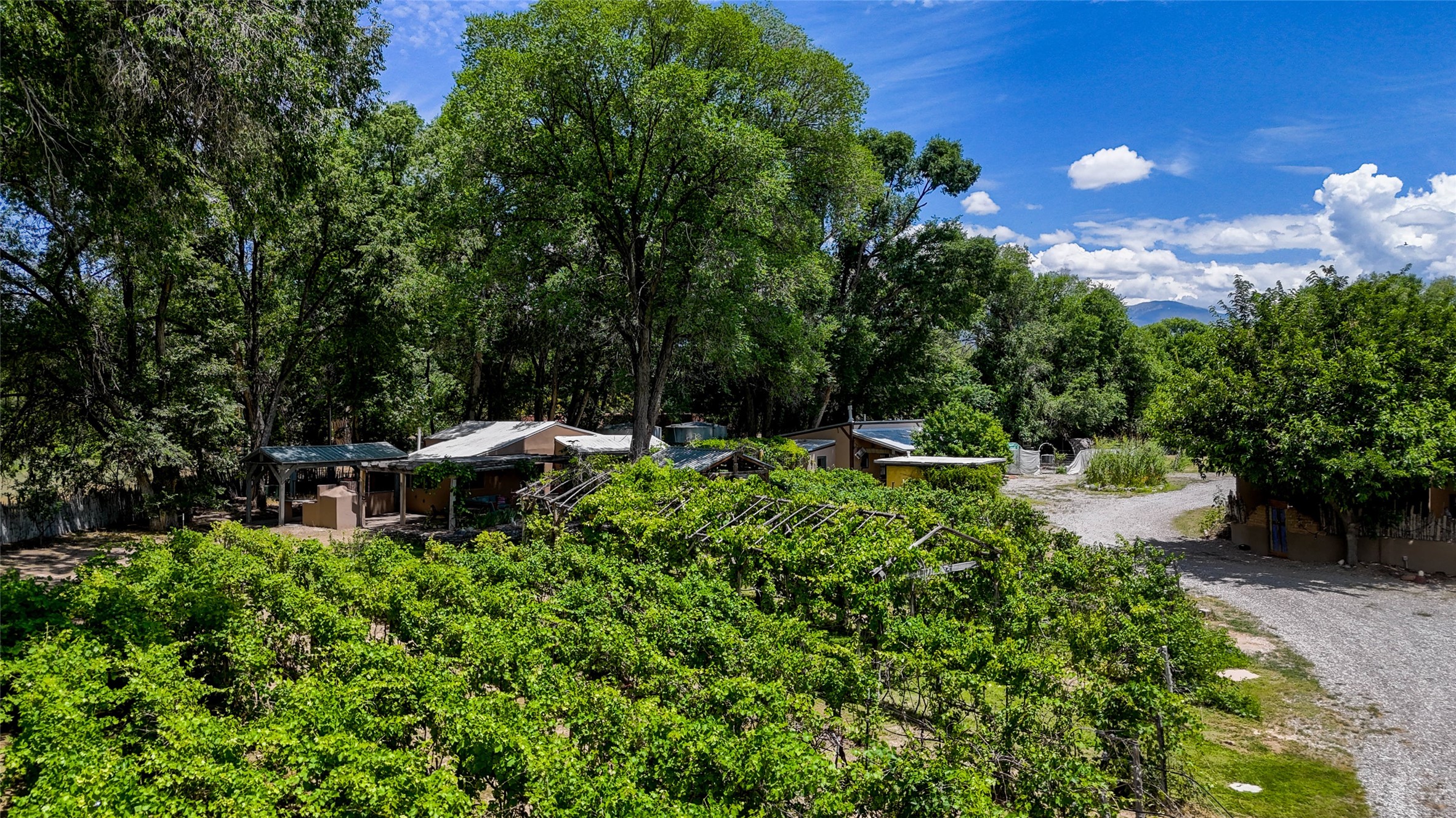 Heavenly 4.5-Acre Estate in Pojoaque Valley - Vineyard, Casitas & More!Rare opportunity to own one of the most spectacular estates in the Pojoaque Valley, just minutes from downtown Santa Fe. This 4.5-acre property offers a serene retreat with 3 acre-feet of domestic water rights and 6.91 acre-feet of irrigation water rights, supporting both vineyard expansion and lush garden potential. The grounds are also home to mature apple, plum, pear, and cherry trees.The main residence is a classic adobe featuring 4 bedrooms and 2 bathrooms (ESTIMATED SQ. FT. 2300), with traditional New Mexican details including vigas, brick floors, two rock fireplaces, and a spacious portal perfect for outdoor living.Three additional casitas (ESTIMATED TOTAL 3100 SQ. FT. COMBINED) provide excellent flexibility:1BR/1BA Casita - 800 sq. ft.2BR/2BA Casita - 811 sq. ft.1BR / 1BA Casita ready for your personal touch and renovation vision - 1500 sq. ft.Ideal for short-term rentals, guest stays, or multi-generational living.Outdoor amenities offer exceptional entertainment and relaxation opportunities:25-person hot tub/poolFirepit lounge areaOutdoor bathrooms and showersBrick pizza ovensWine cellar2 RV hookupsA large metal barn offers generous storage or potential for workshop, studio, or event use.Whether you dream of running a boutique vineyard, hosting retreats, or simply living in peaceful luxury, this unique Pojoaque Valley estate delivers charm, privacy, and unlimited potential.