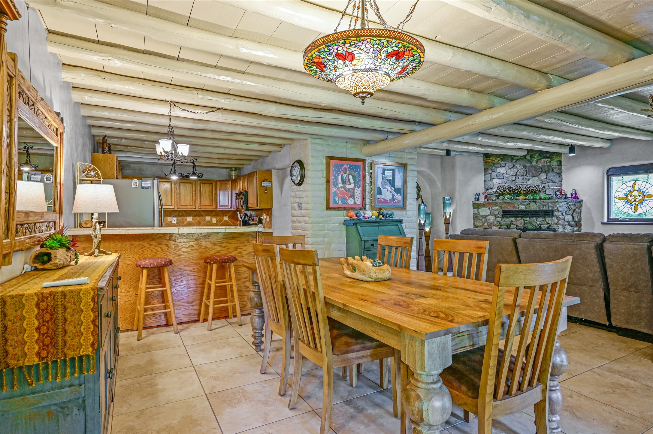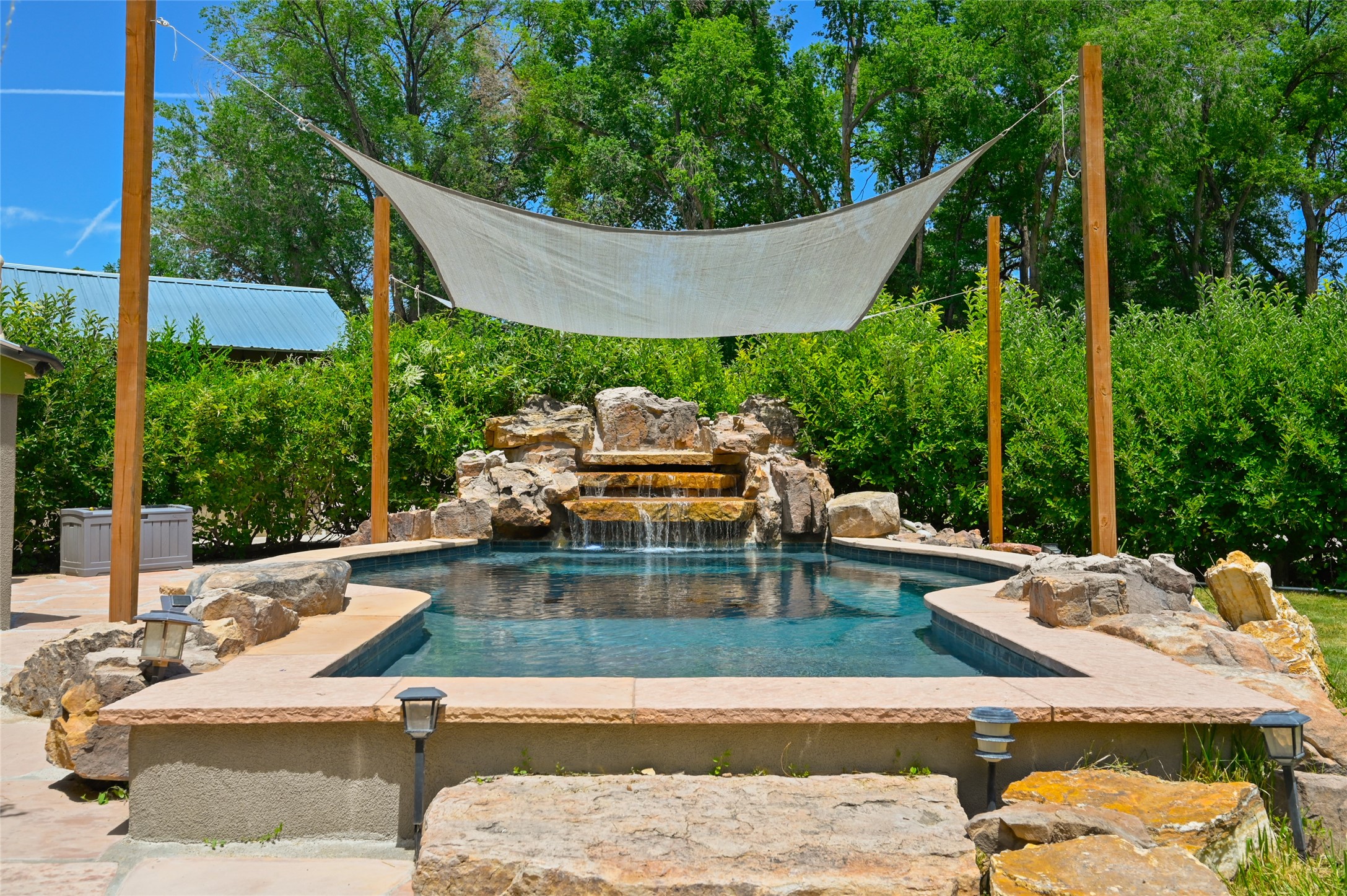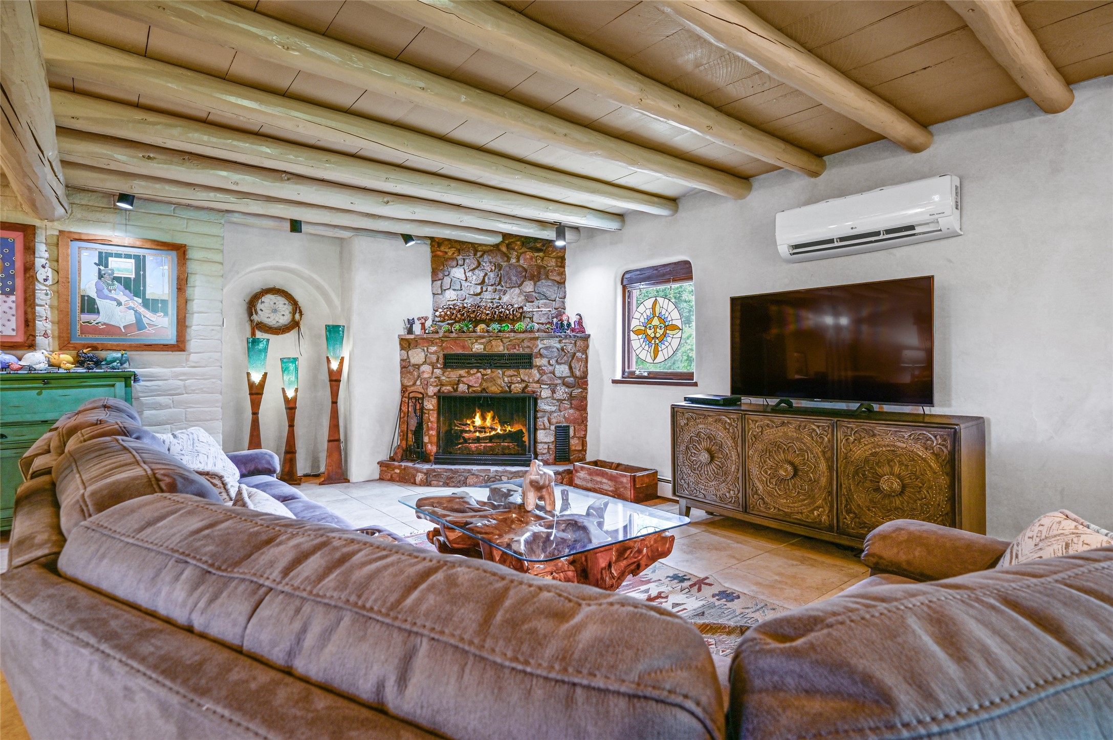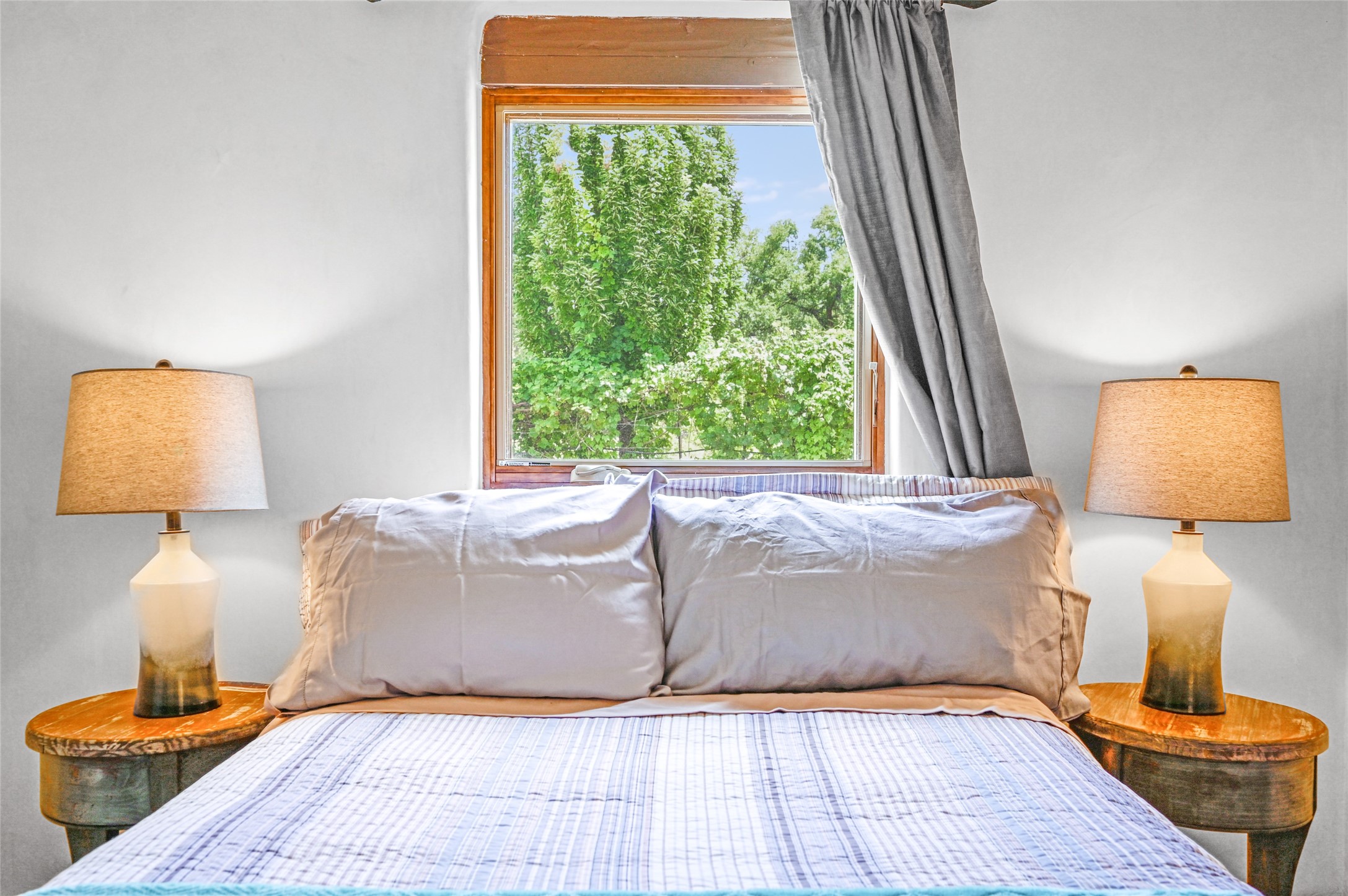 Heavenly 4.5-Acre Estate in Pojoaque Valley - Vineyard, Casitas & More!Rare opportunity to own one of the most spectacular estates in the Pojoaque Valley, just minutes from downtown Santa Fe. This 4.5-acre property offers a serene retreat with 3 acre-feet of domestic water rights and 6.91 acre-feet of irrigation water rights, supporting both vineyard expansion and lush garden potential. The grounds are also home to mature apple, plum, pear, and cherry trees.The main residence is a classic adobe featuring 4 bedrooms and 2 bathrooms (ESTIMATED SQ. FT. 2300), with traditional New Mexican details including vigas, brick floors, two rock fireplaces, and a spacious portal perfect for outdoor living.Three additional casitas (ESTIMATED TOTAL 3100 SQ. FT. COMBINED) provide excellent flexibility:1BR/1BA Casita - 800 sq. ft.2BR/2BA Casita - 811 sq. ft.1BR / 1BA Casita ready for your personal touch and renovation vision - 1500 sq. ft.Ideal for short-term rentals, guest stays, or multi-generational living.Outdoor amenities offer exceptional entertainment and relaxation opportunities:25-person hot tub/poolFirepit lounge areaOutdoor bathrooms and showersBrick pizza ovensWine cellar2 RV hookupsA large metal barn offers generous storage or potential for workshop, studio, or event use.Whether you dream of running a boutique vineyard, hosting retreats, or simply living in peaceful luxury, this unique Pojoaque Valley estate delivers charm, privacy, and unlimited potential.