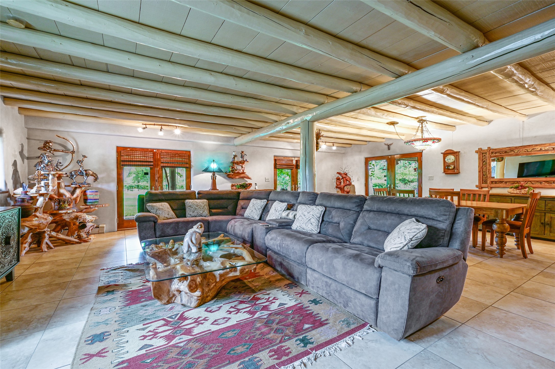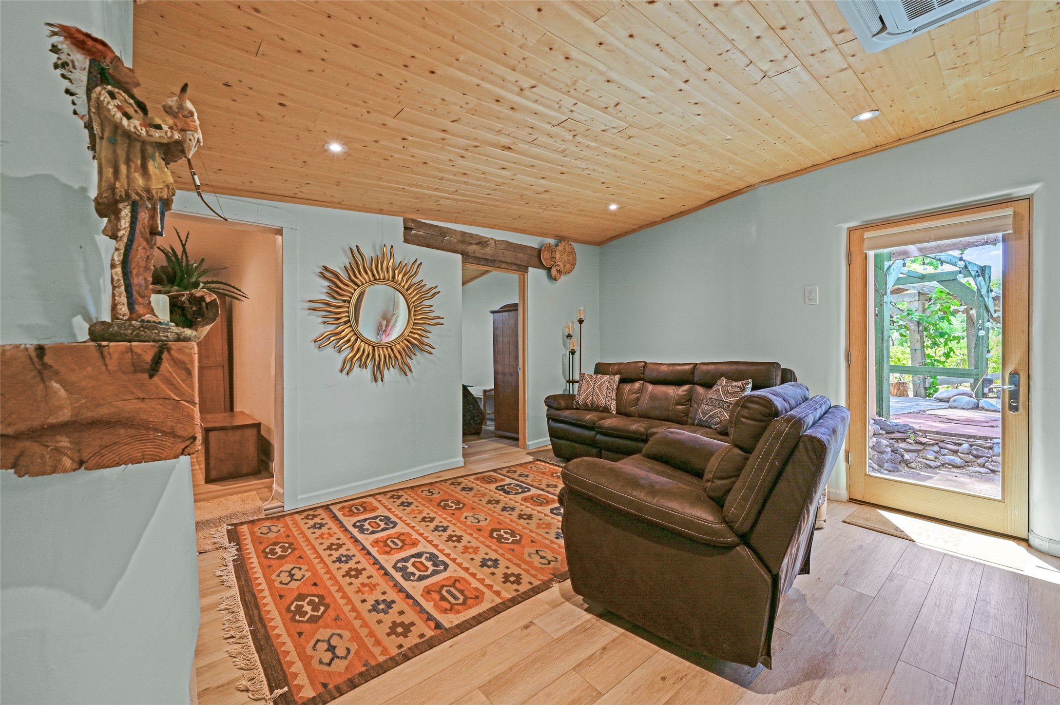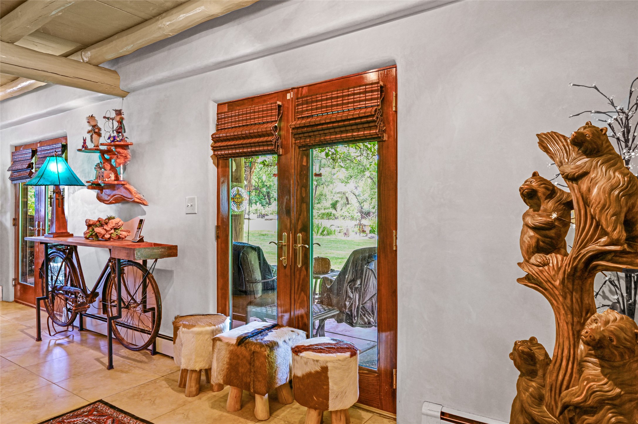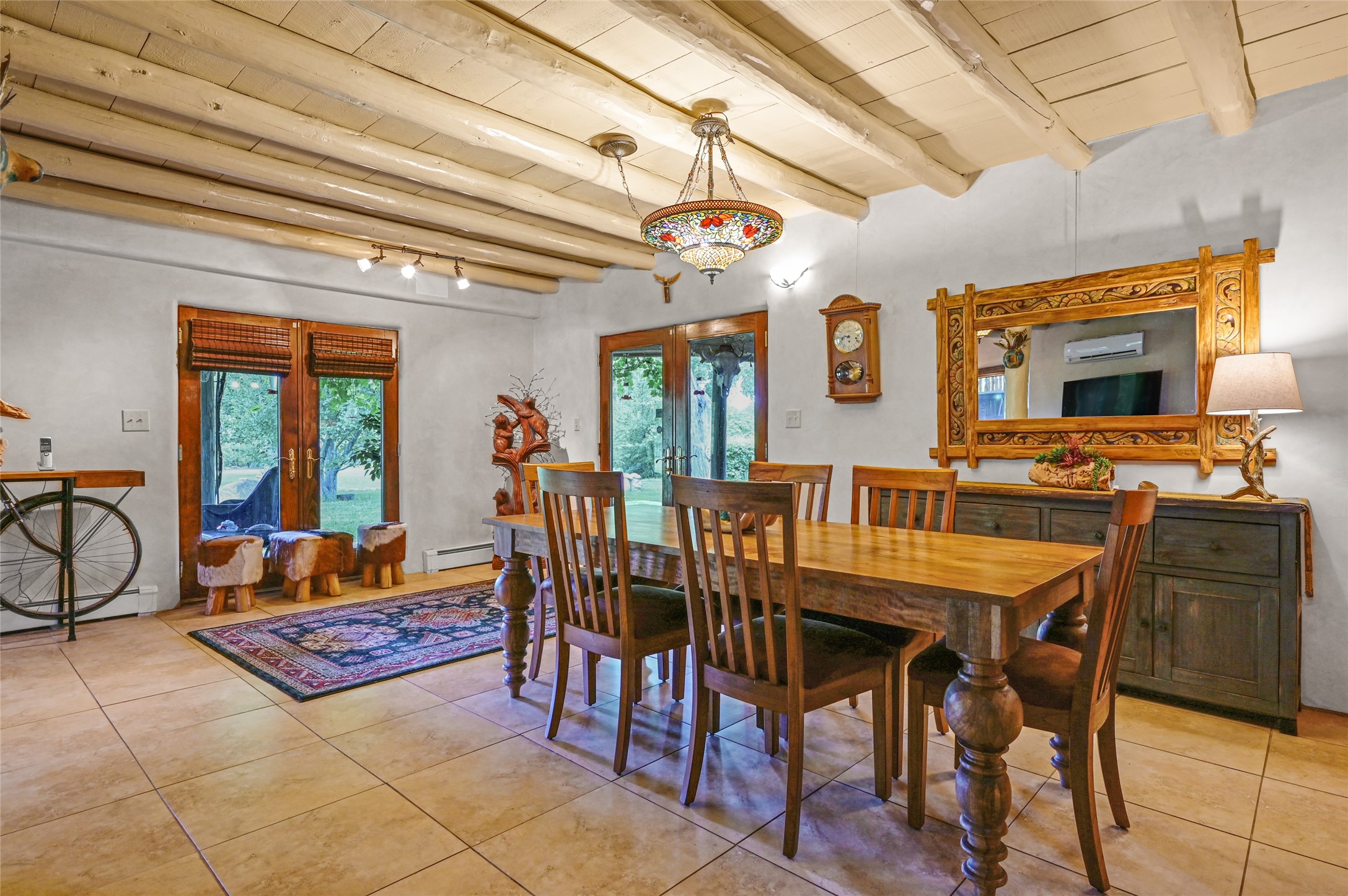 Heavenly 4.5-Acre Estate in Pojoaque Valley - Vineyard, Casitas & More!Rare opportunity to own one of the most spectacular estates in the Pojoaque Valley, just minutes from downtown Santa Fe. This 4.5-acre property offers a serene retreat with 3 acre-feet of domestic water rights and 6.91 acre-feet of irrigation water rights, supporting both vineyard expansion and lush garden potential. The grounds are also home to mature apple, plum, pear, and cherry trees.The main residence is a classic adobe featuring 4 bedrooms and 2 bathrooms (ESTIMATED SQ. FT. 2300), with traditional New Mexican details including vigas, brick floors, two rock fireplaces, and a spacious portal perfect for outdoor living.Three additional casitas (ESTIMATED TOTAL 3100 SQ. FT. COMBINED) provide excellent flexibility:1BR/1BA Casita - 800 sq. ft.2BR/2BA Casita - 811 sq. ft.1BR / 1BA Casita ready for your personal touch and renovation vision - 1500 sq. ft.Ideal for short-term rentals, guest stays, or multi-generational living.Outdoor amenities offer exceptional entertainment and relaxation opportunities:25-person hot tub/poolFirepit lounge areaOutdoor bathrooms and showersBrick pizza ovensWine cellar2 RV hookupsA large metal barn offers generous storage or potential for workshop, studio, or event use.Whether you dream of running a boutique vineyard, hosting retreats, or simply living in peaceful luxury, this unique Pojoaque Valley estate delivers charm, privacy, and unlimited potential.