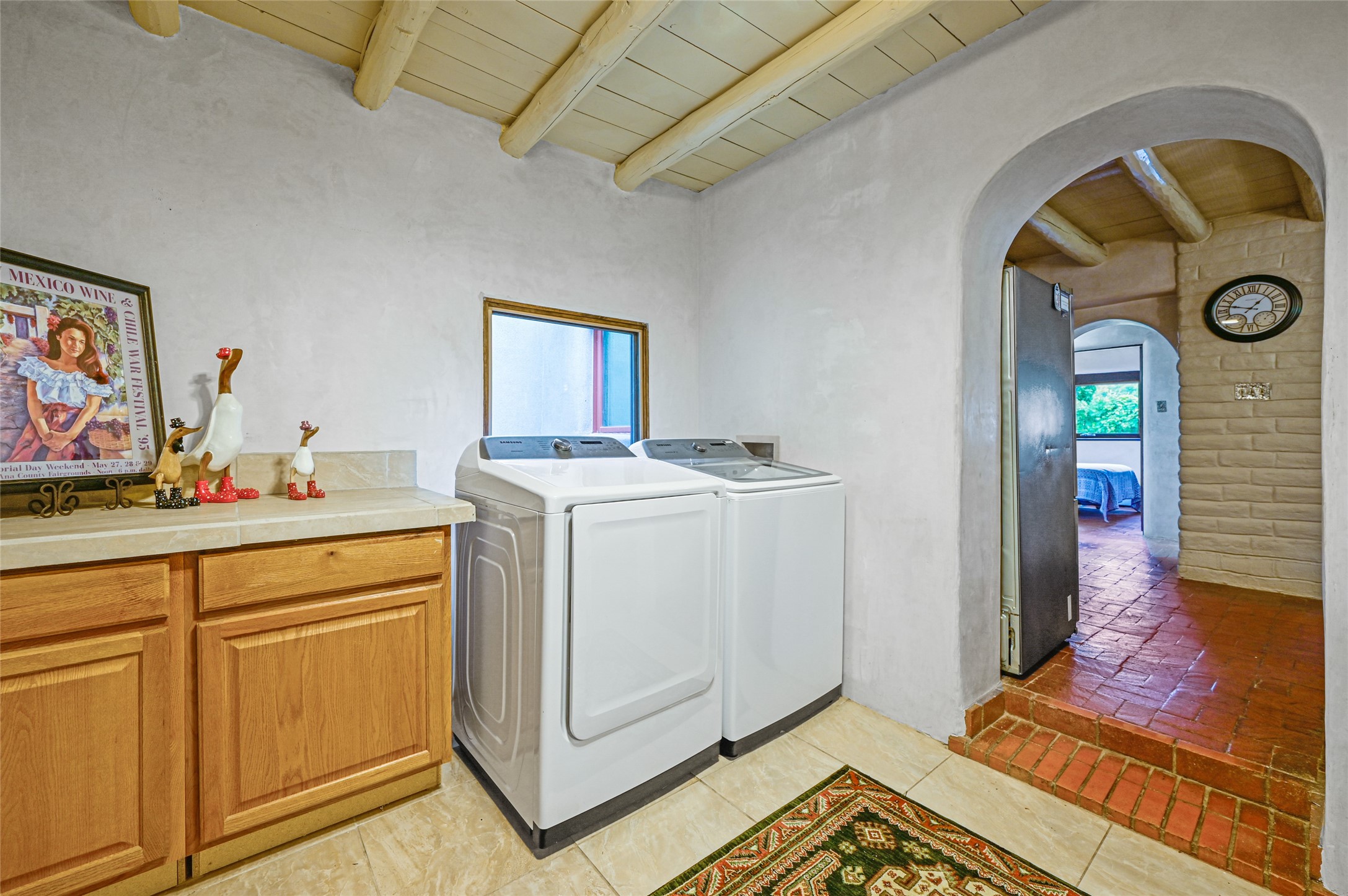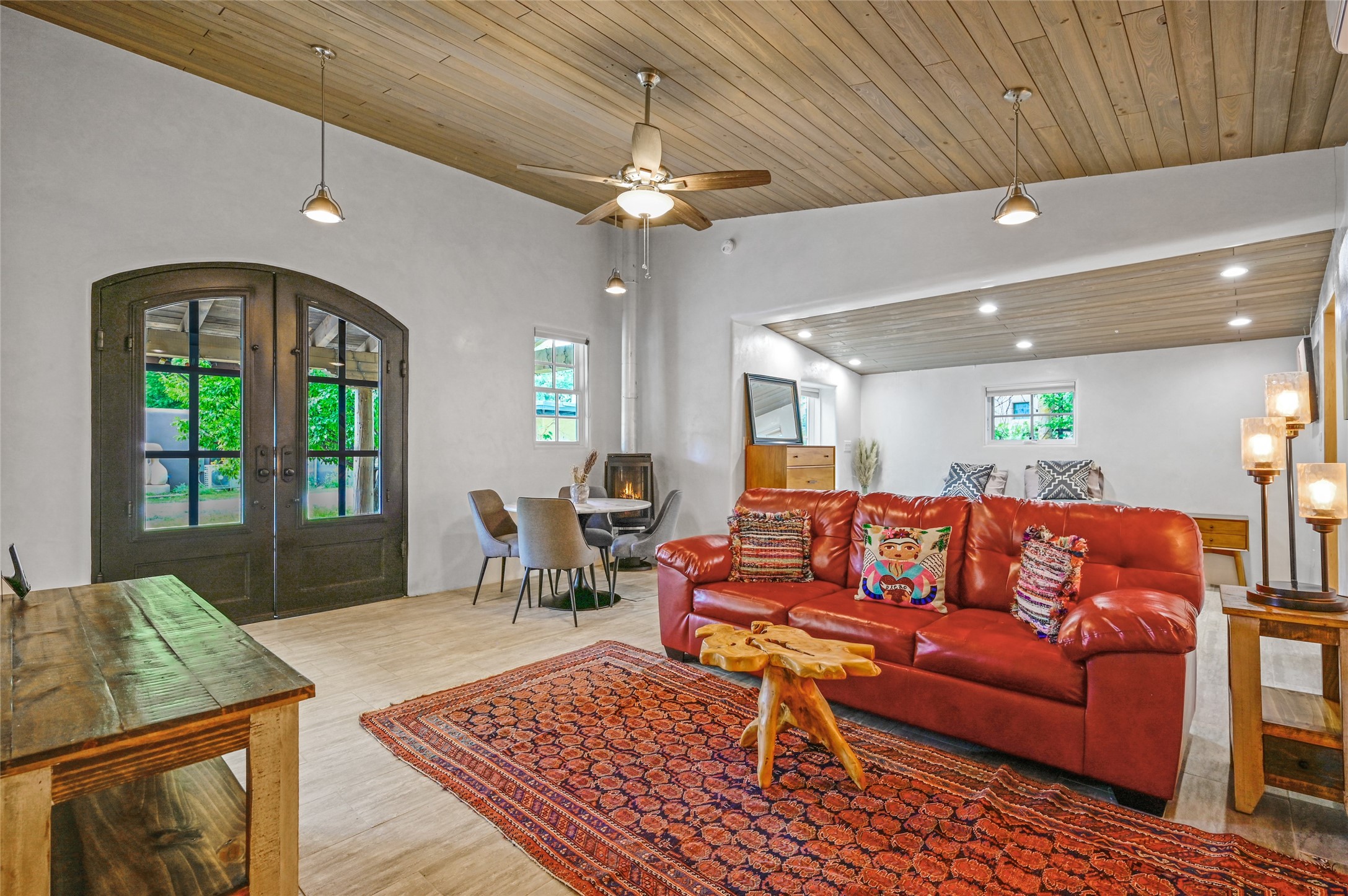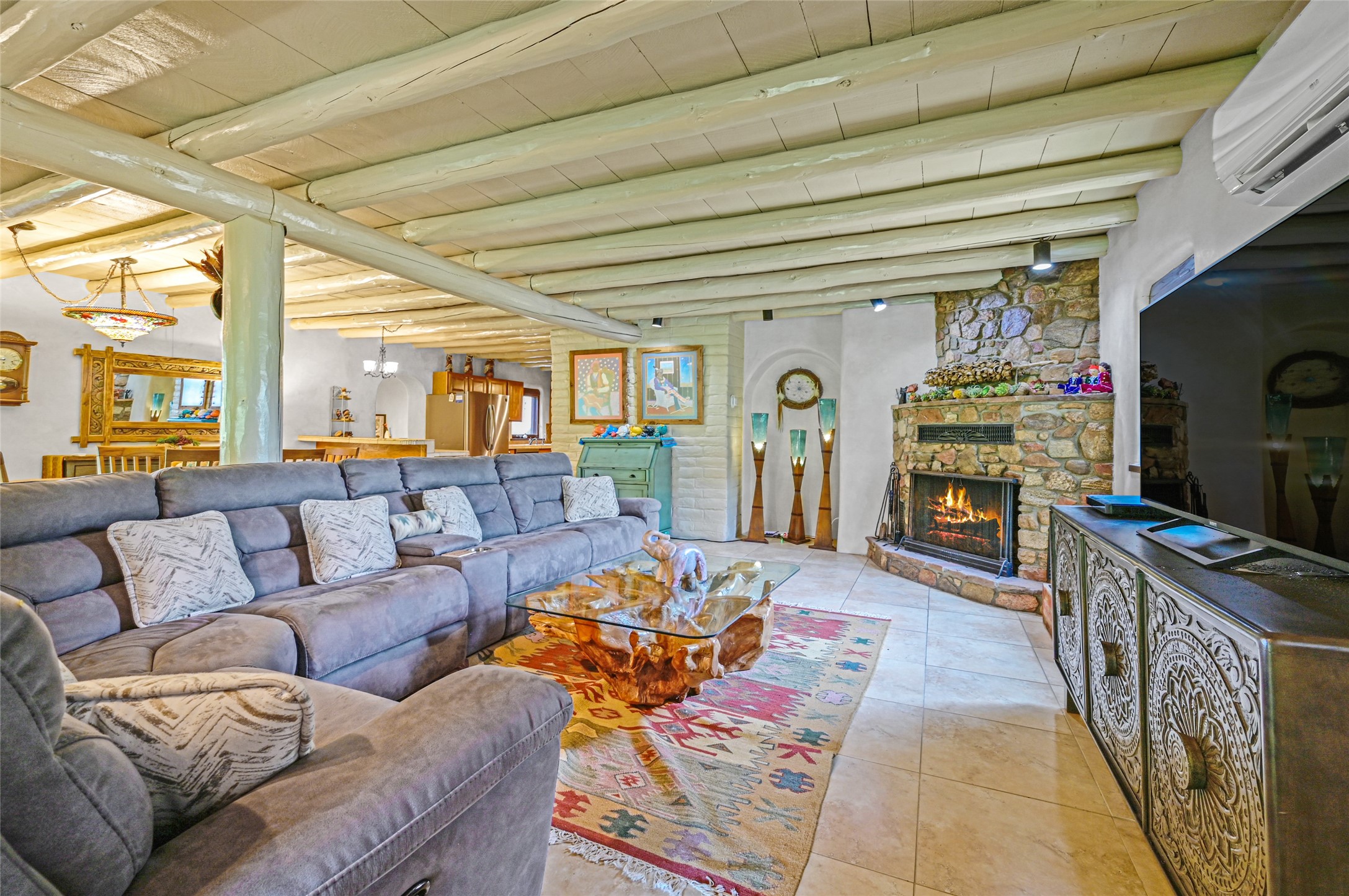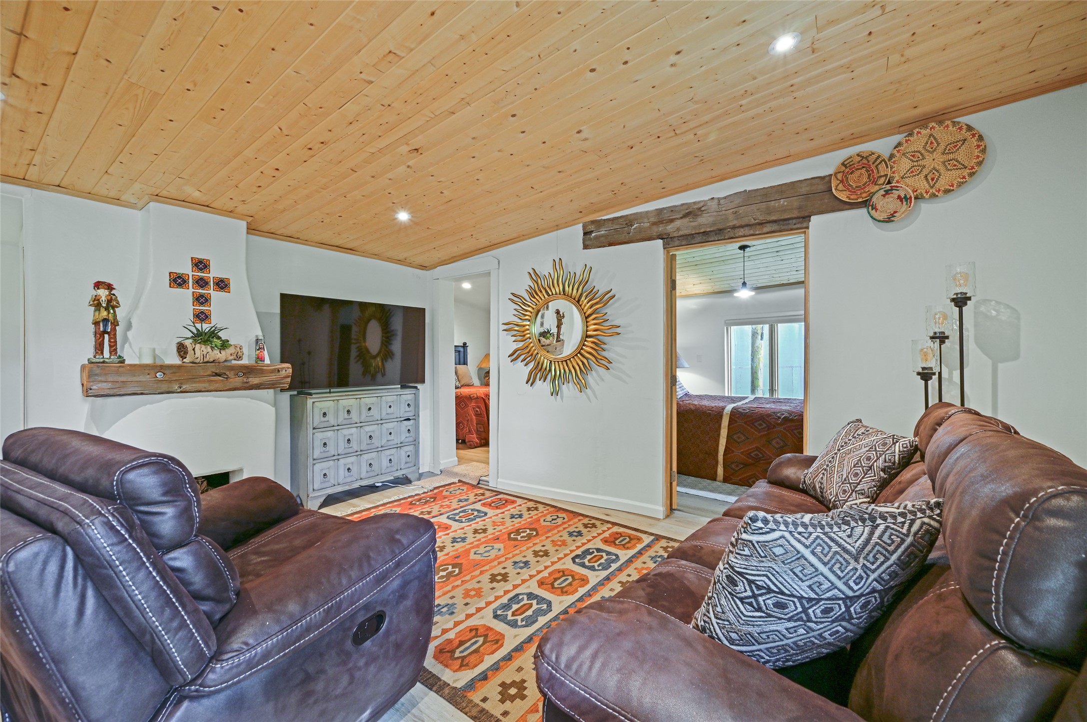 Heavenly 4.5-Acre Estate in Pojoaque Valley - Vineyard, Casitas & More!Rare opportunity to own one of the most spectacular estates in the Pojoaque Valley, just minutes from downtown Santa Fe. This 4.5-acre property offers a serene retreat with 3 acre-feet of domestic water rights and 6.91 acre-feet of irrigation water rights, supporting both vineyard expansion and lush garden potential. The grounds are also home to mature apple, plum, pear, and cherry trees.The main residence is a classic adobe featuring 4 bedrooms and 2 bathrooms (ESTIMATED SQ. FT. 2300), with traditional New Mexican details including vigas, brick floors, two rock fireplaces, and a spacious portal perfect for outdoor living.Three additional casitas (ESTIMATED TOTAL 3100 SQ. FT. COMBINED) provide excellent flexibility:1BR/1BA Casita - 800 sq. ft.2BR/2BA Casita - 811 sq. ft.1BR / 1BA Casita ready for your personal touch and renovation vision - 1500 sq. ft.Ideal for short-term rentals, guest stays, or multi-generational living.Outdoor amenities offer exceptional entertainment and relaxation opportunities:25-person hot tub/poolFirepit lounge areaOutdoor bathrooms and showersBrick pizza ovensWine cellar2 RV hookupsA large metal barn offers generous storage or potential for workshop, studio, or event use.Whether you dream of running a boutique vineyard, hosting retreats, or simply living in peaceful luxury, this unique Pojoaque Valley estate delivers charm, privacy, and unlimited potential.