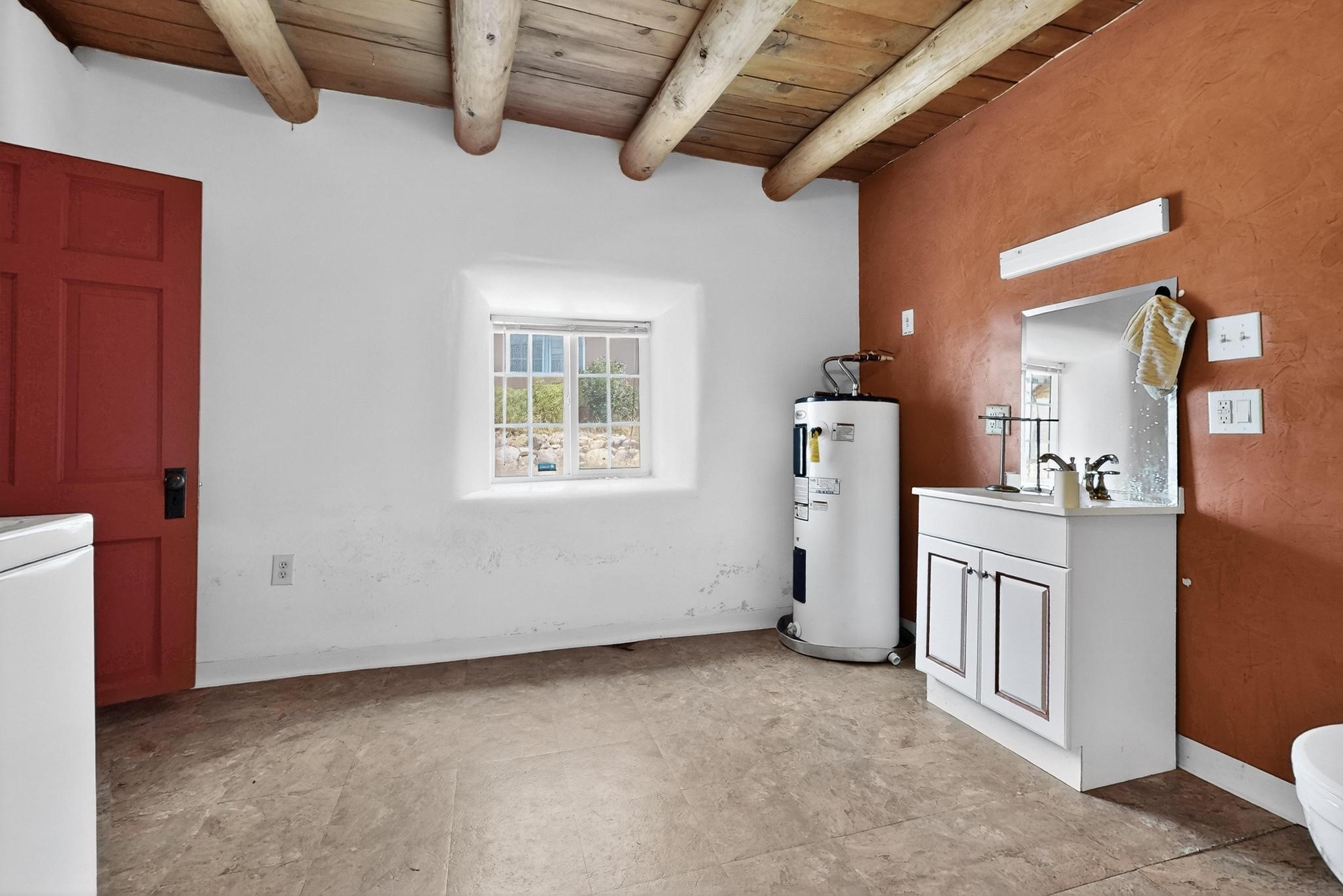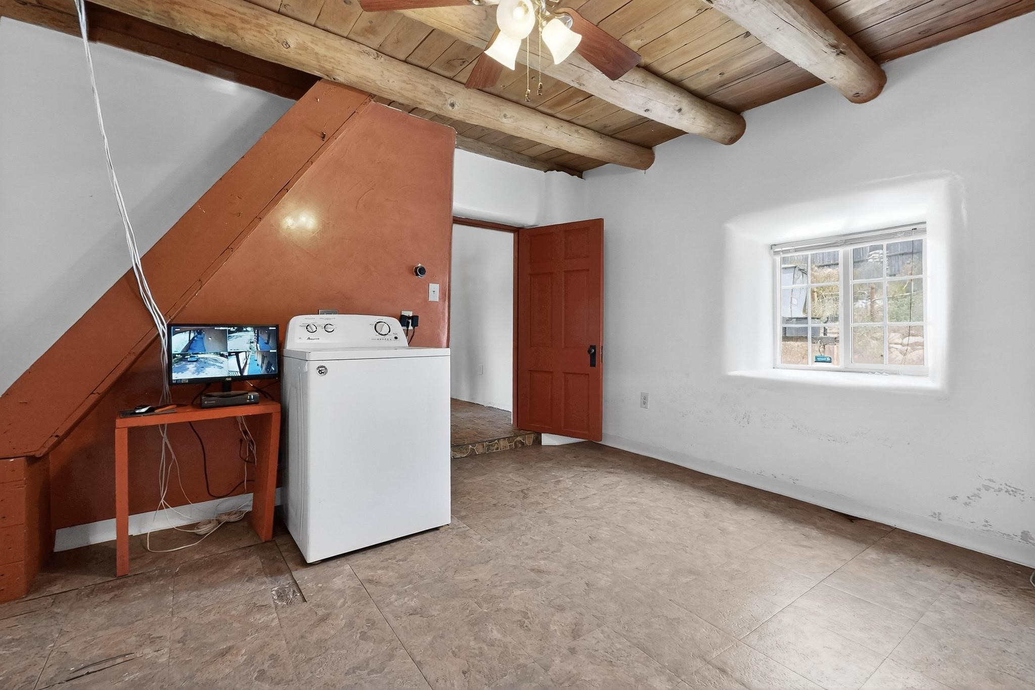 Charming Adobe Home with Classic New Mexico CharacterThis beautifully preserved adobe home offers timeless Southwestern charm and features a welcoming front porch--perfect for enjoying your morning coffee or watching the sunset.The layout includes:On one end: a private one-bedroom suite with kitchen and bathOn the other side: one additional bedroom, a second bath, and a laundry roomRarely do historic adobe homes like this come available in such excellent condition. Interior highlights include diamond-finish plaster walls, high ceilings, and exposed wood beams that showcase the true character of New Mexico architecture.Don't miss this unique opportunity to own a piece of local history.