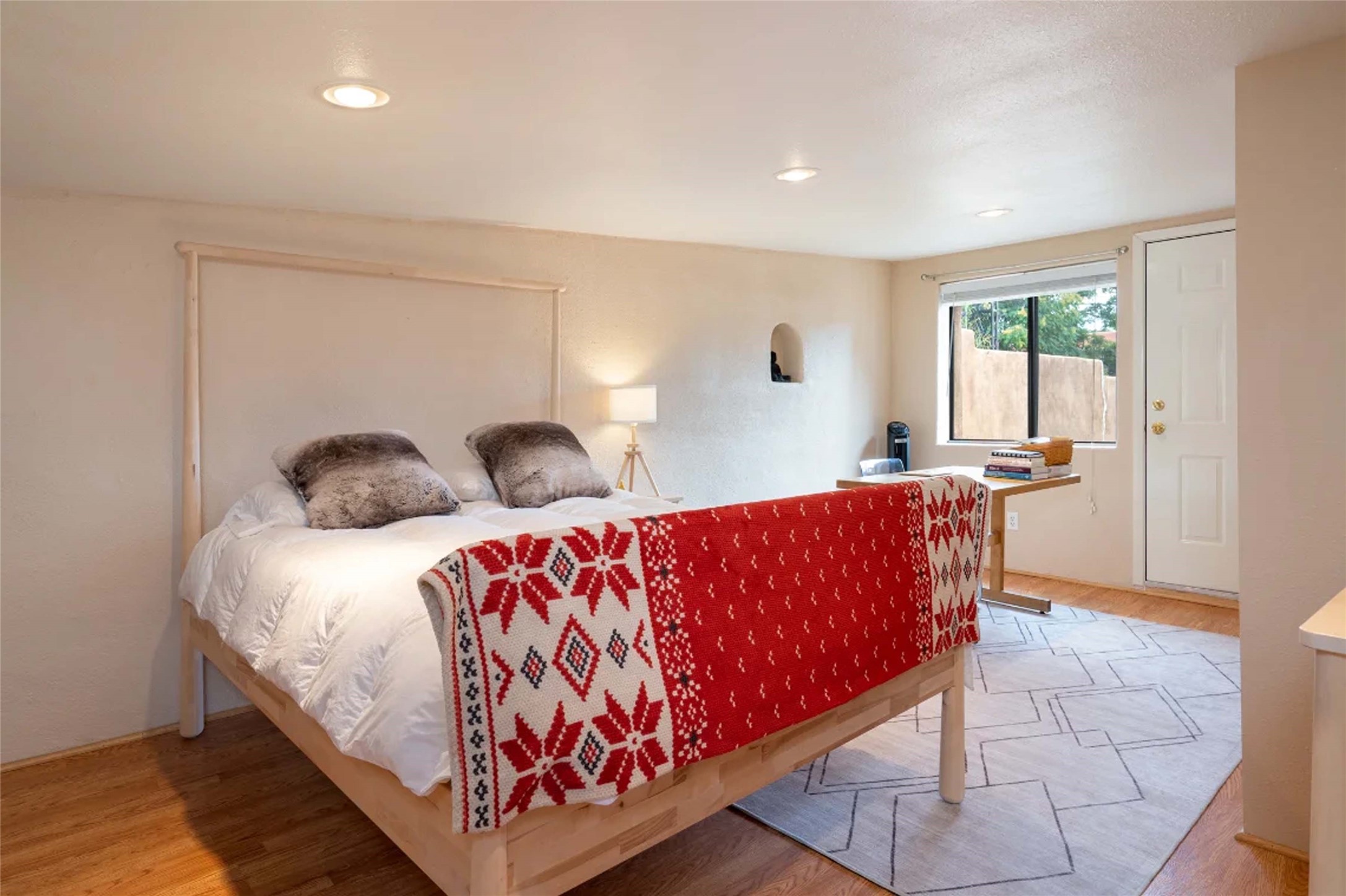 Tucked behind curved, gated walls in the heart of South Capital, this historic Spanish Pueblo Revival home offers the ideal blend of charm, location, and income potential. Built in the 1930s with iconic 15-inch adobe walls, original hardwood floors, and divided-light sash windows, this home exudes authentic Santa Fe character. Currently operating as a successful short-term rental, this property has a strong rental history, making it an excellent opportunity for investors or those looking to offset ownership costs with passive income. The thoughtful floor plan includes two private bedrooms, a spacious living area, and excellent flow for both hosting and relaxing. Step outside to enjoy the beautifully crafted flagstone patio and shaded portal, surrounded by mature trees and romantic gardens. Backing onto the historic Arroyo Tenorio Acequia, the setting is peaceful yet connected. Boasting a Walk Score of 91, you're just moments from the Plaza, River Walk, top-rated restaurants, cafes, art galleries, and Santa Fe's vibrant cultural scene. Whether you're seeking a charming residence, a part-time pied--terre, or a turn-key rental investment, this South Capital gem delivers. Imagine the Possibilities and make this beautiful home yours!