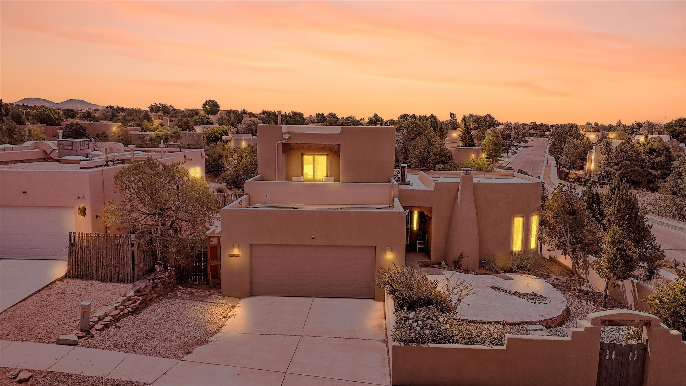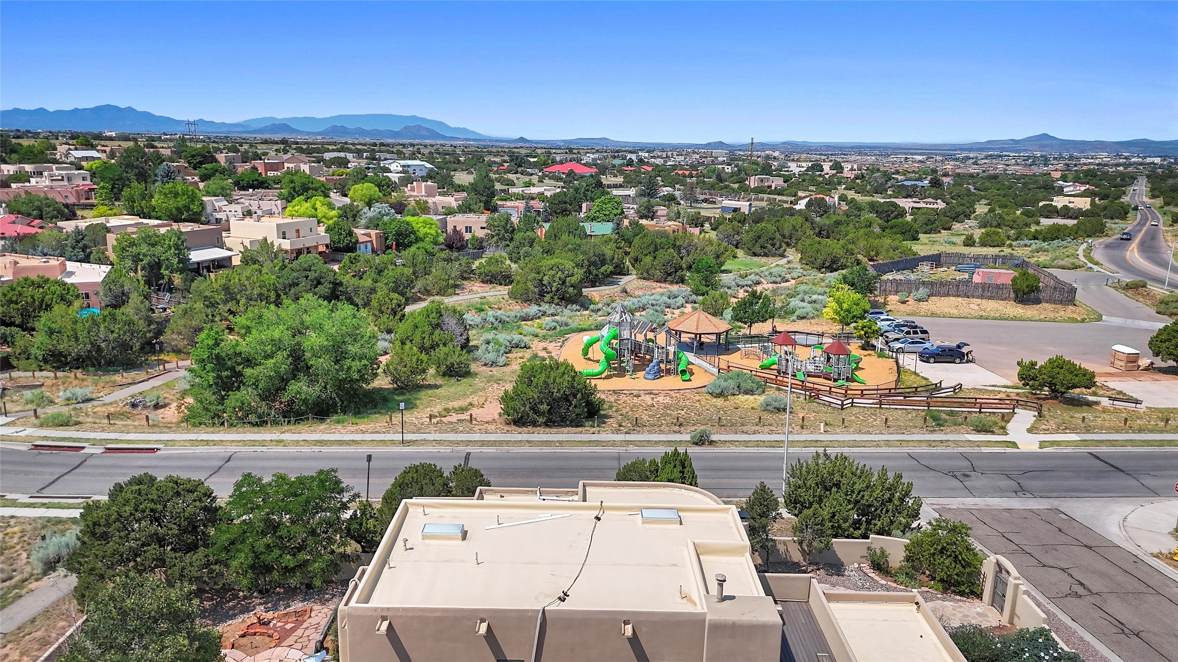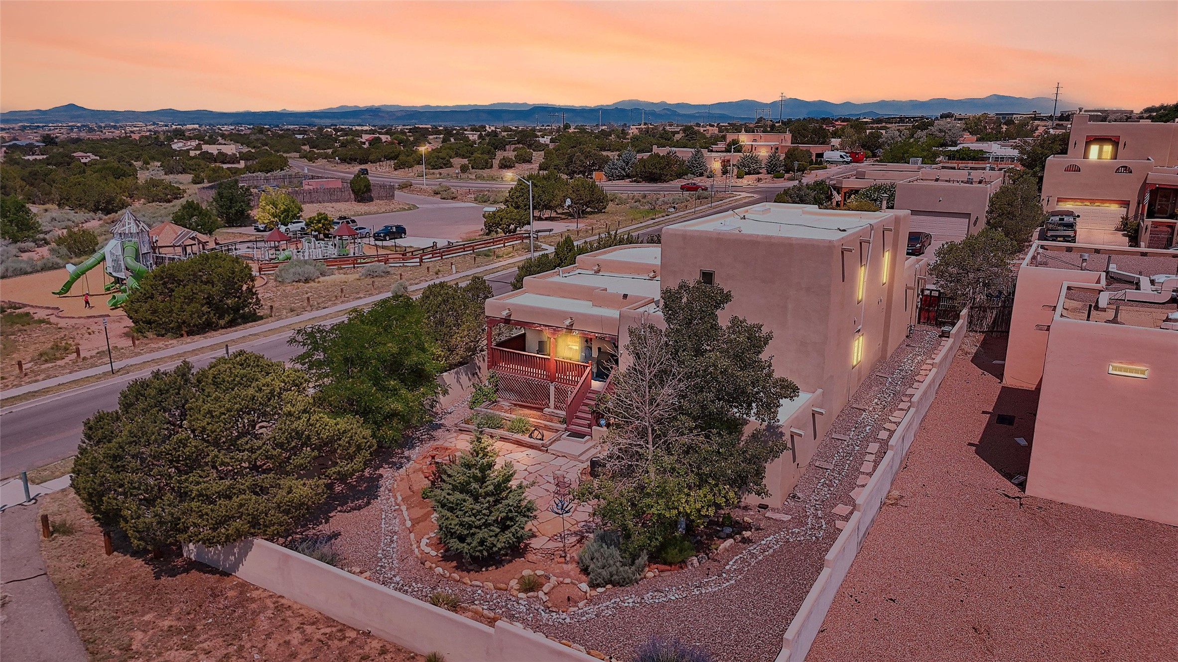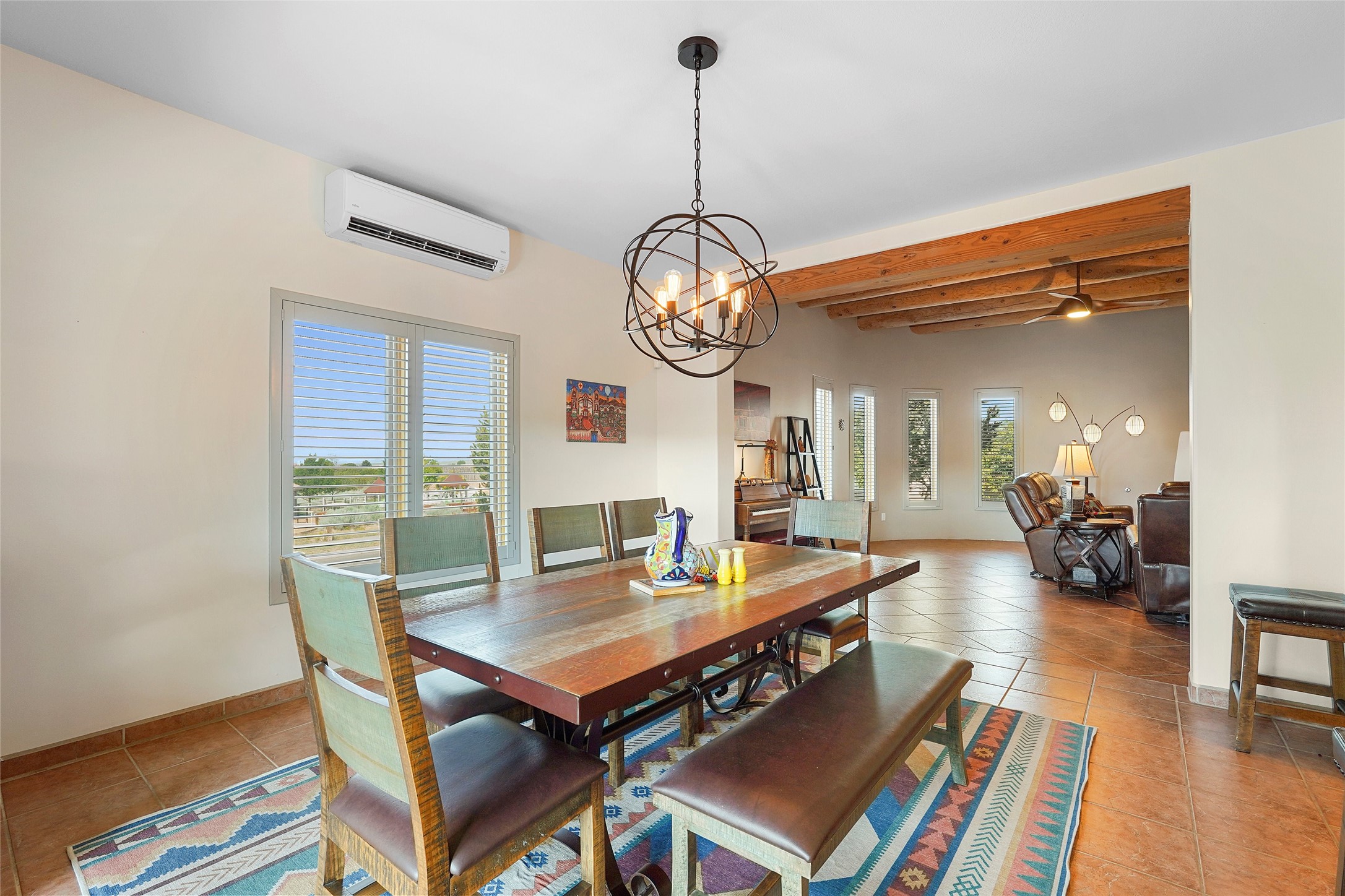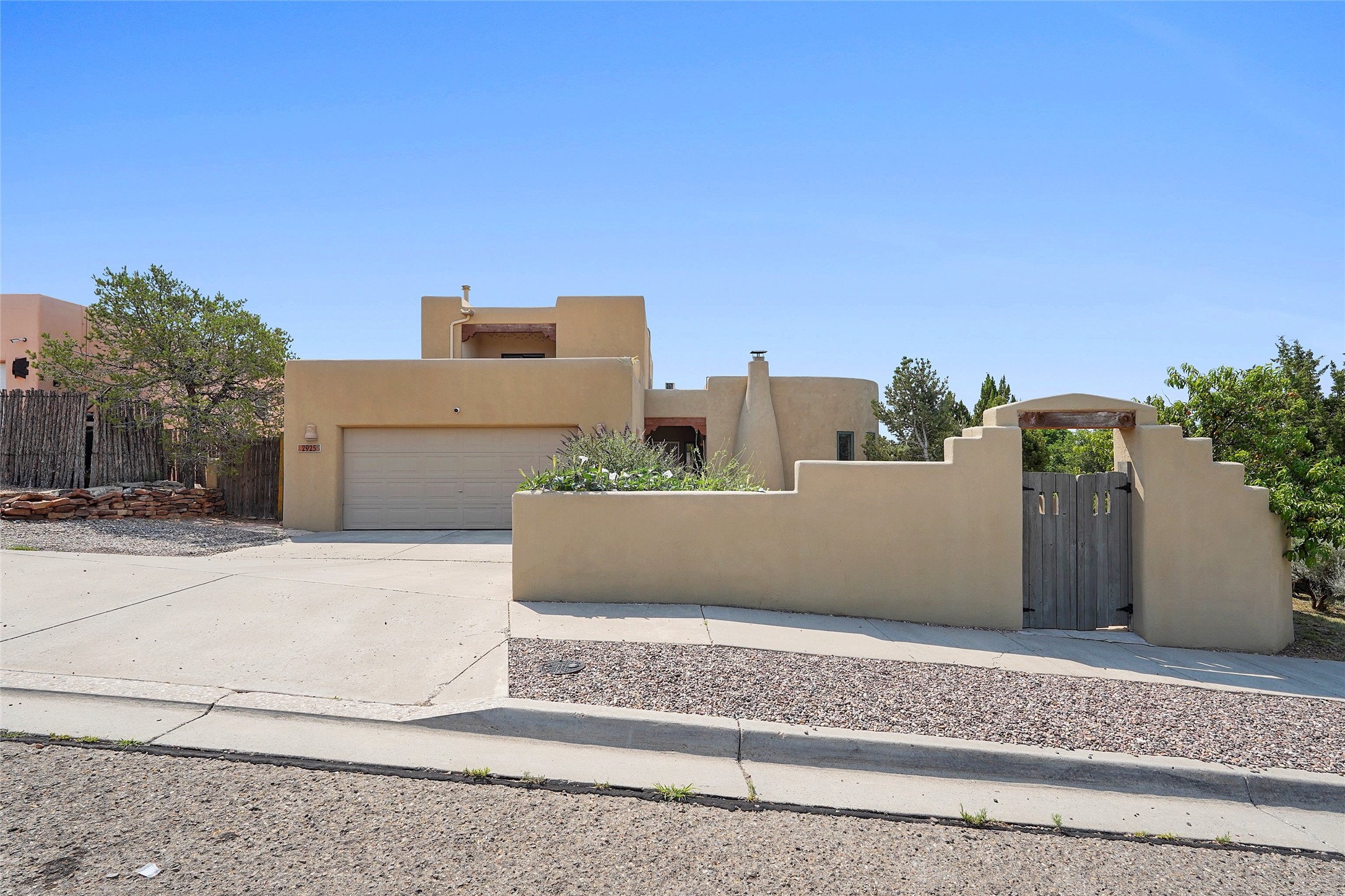 Welcome to this beautifully maintained home in the sought-after Pueblos de Sol subdivision, offering comfortable living and sweeping views. Recent upgrades include a modern kitchen with stainless steel appliances, granite countertops, and a spa-like primary bathroom with a standalone tub and custom stone tile. The primary suite also features a private deck with durable Trex decking. A TPO roof was installed in 2022. Enjoy year-round comfort with 5 mini-splits and radiant heating. Outdoor living shines with multiple decks, a charming courtyard, mature trees, and drip irrigation. A separate-entry studio/guesthouse with full bath offers rental or creative flexibility. Don't miss this Santa Fe gem! Trails and parks nearby!
