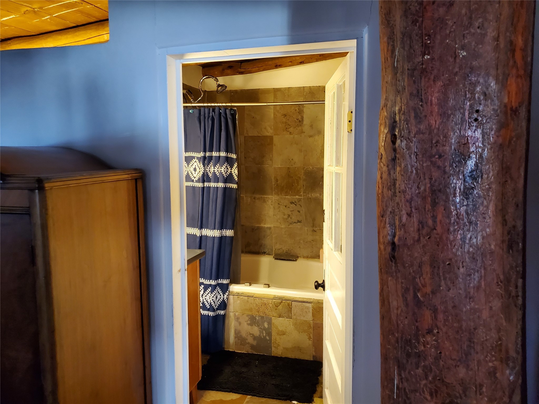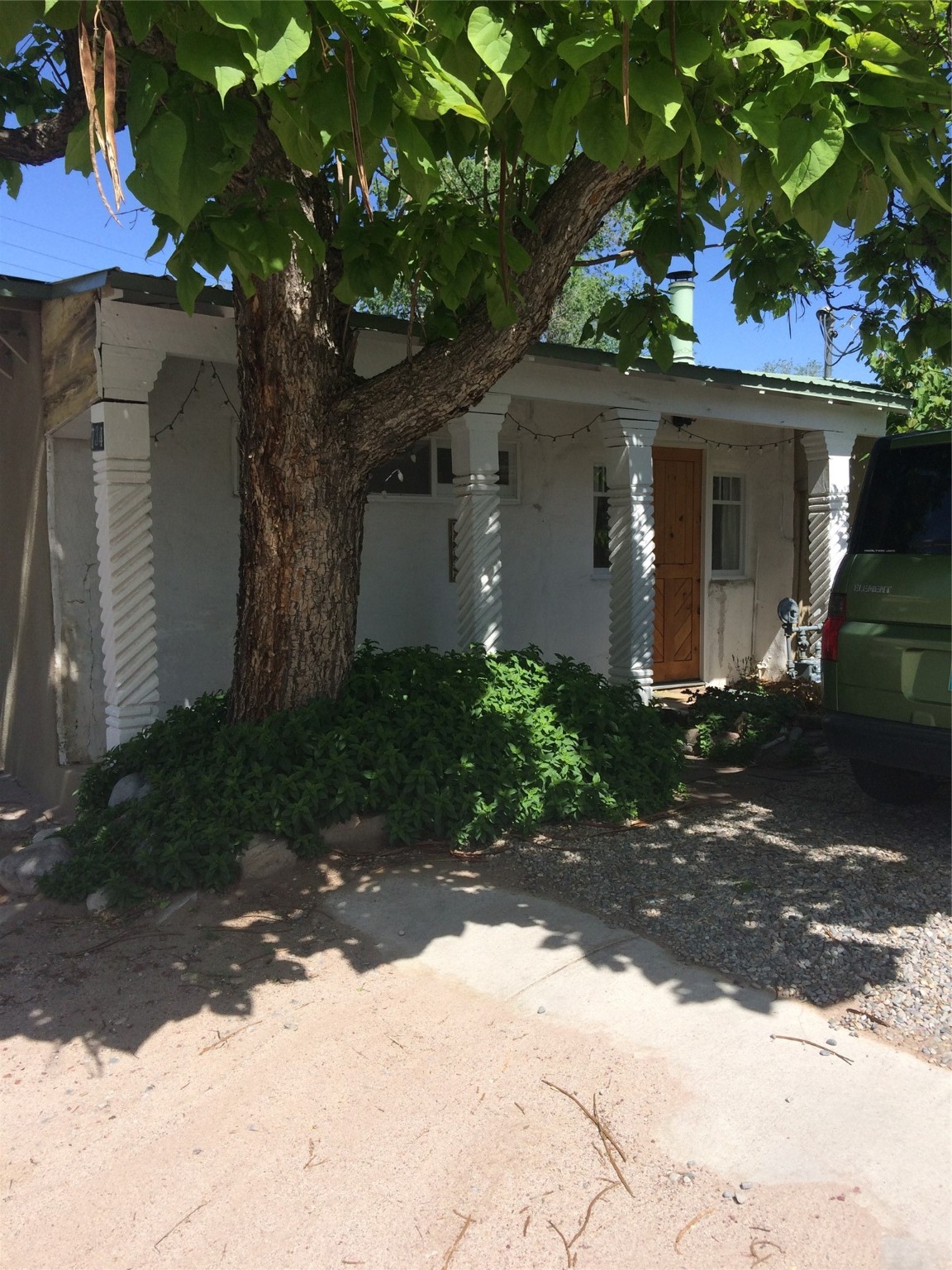 Charming, Historic, Quintessential Northern New Mexico territorial Adobe home with a garden paradise. This 122-year-old home is known as the old Martinez home. It started life as a General Mercantile store. Since then, it has been a few artist galleries, and a ceramic studio. This magical property has the original wood flooring in most of the house. Vigas and arched doorways throughout. Base board heating, a wood stove, and radiant floor heating in the wonderfully updated master bath to keep your toes toasty in the morning. There is so much space to do anything you can dream up, inside this home. The back yard is a gardener's paradise, boasting over 65 different rose bushes, grass, Flower beds, decorative trees and fruit trees. The property has water rights to keep the yard magical. The adobe barn was updated with cement floors, power and radiant floor heating, used to be a ceramics studio and as tons of potential per your liking. The tool shed is large enough to hold your tools and be a small workshop. There is abundant space in the back yard to plant a vegetable garden. The separate portal is tucked into the garden and creates an outdoor sanctuary perfect for gatherings with family and friends or a quiet evening of solitude.