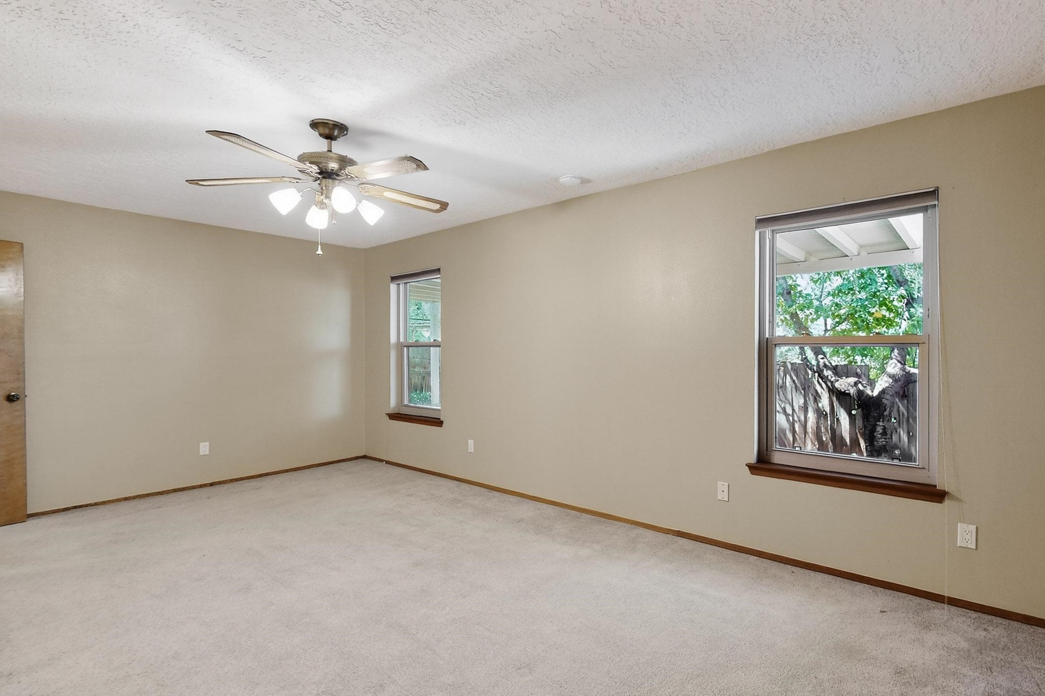 This beautifully, well-maintained single-level two-bedroom home is located near schools, shopping, a park, and a train stop. High ceilings with clearstory windows bring in much natural light, and the woodburning fireplace welcomes you with a great first impression. Two custom patios create a large entertainment area with great sunset views and a peaceful arroyo. There are cherry & pear trees as well as grape vines in the low maintenance backyard.