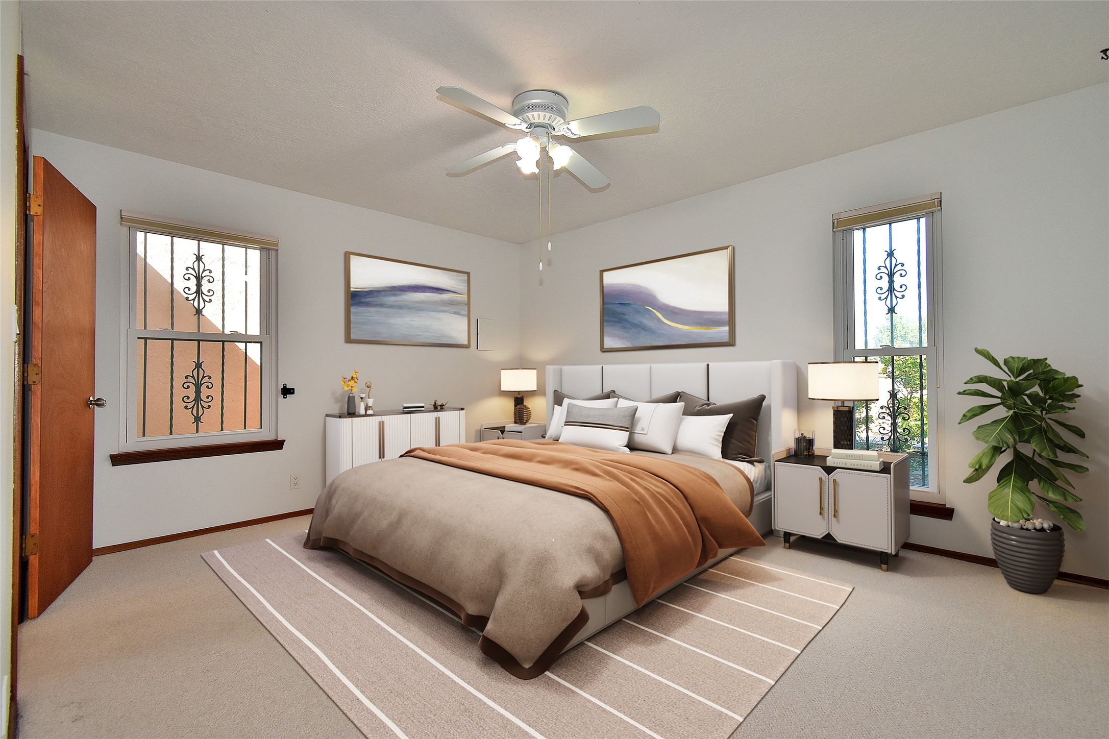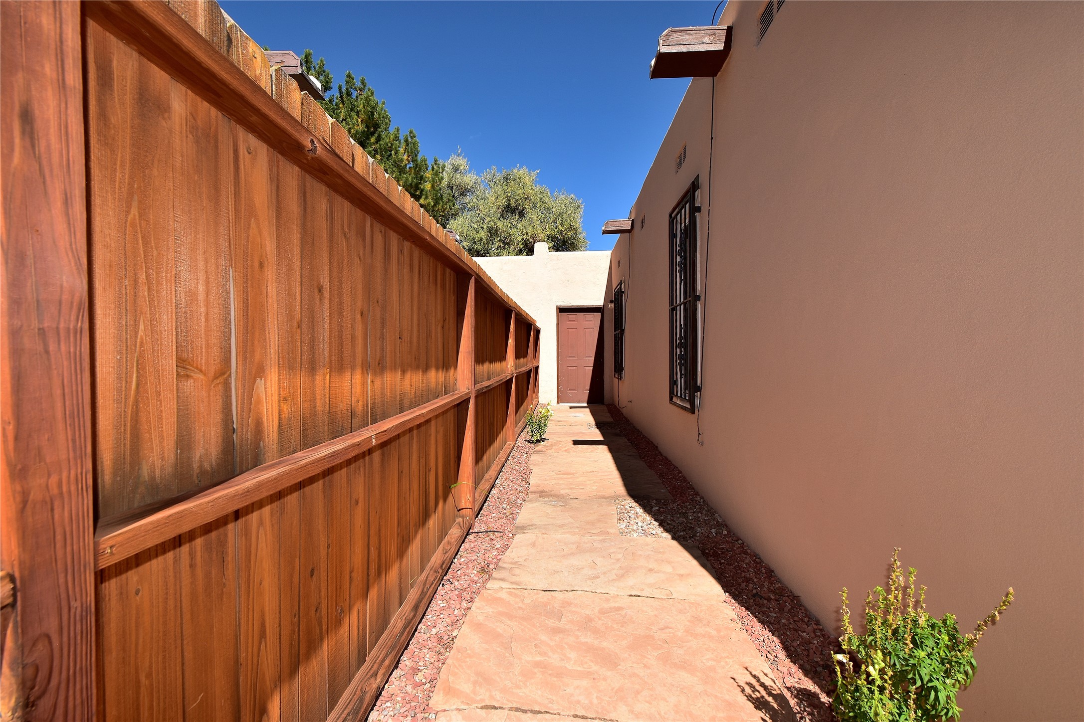 PRICE REDUCED AGAIN! NOW 425K. Beautiful, updated, light and bright and freshly painted home in Pueblo de Rodeo Rd. This single level home offers 3 bedrooms, 2 bathrooms and a 1-car garage with a spacious double driveway providing ample parking. An enclosed front entry courtyard welcomes you into the home. The galley kitchen features granite countertops, tile backsplash, pantry and new microwave in 2025. The backyard is private and offers a covered porch with flagstone and a large shed. Lovely features and amenities include: Newer windows-Remote Hunter Douglas top/down blinds-TPO roof-Tile and carpet floors-New washer and dryer in 2025 including water filter/softener system-Ceiling fans-Walk-in closet in primary suite-Carpet in the bedrooms. Super sweet home not to be missed.