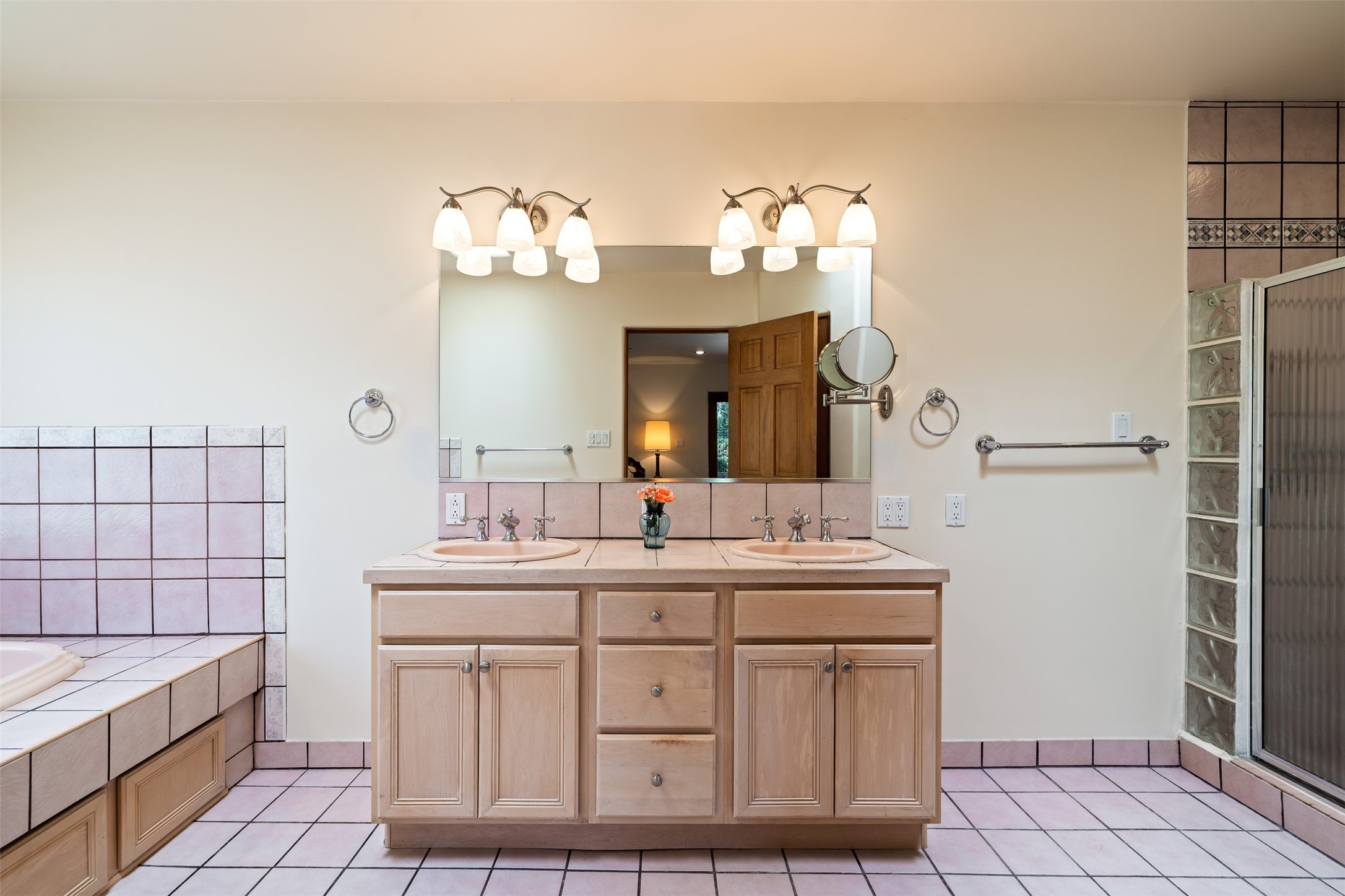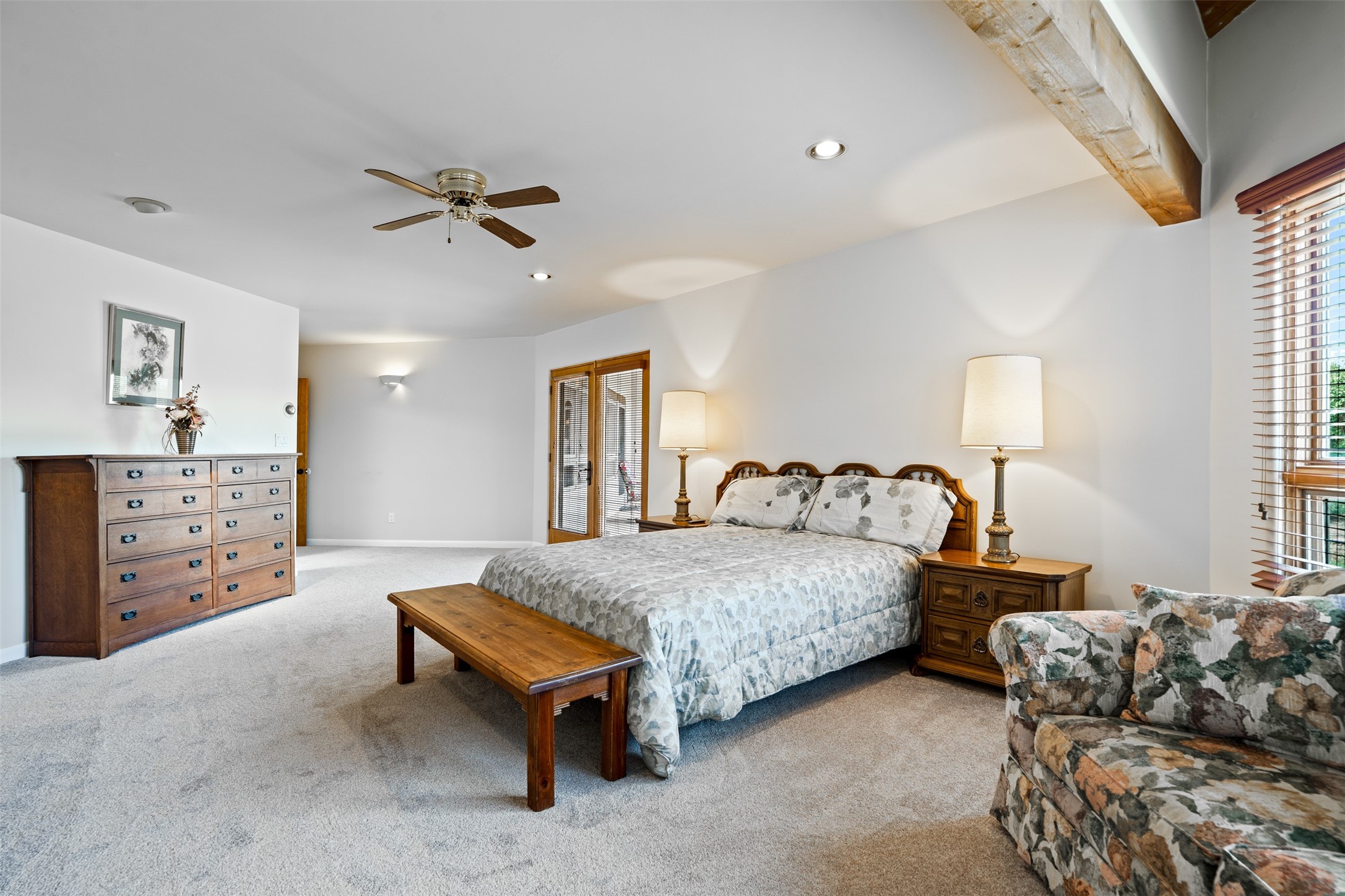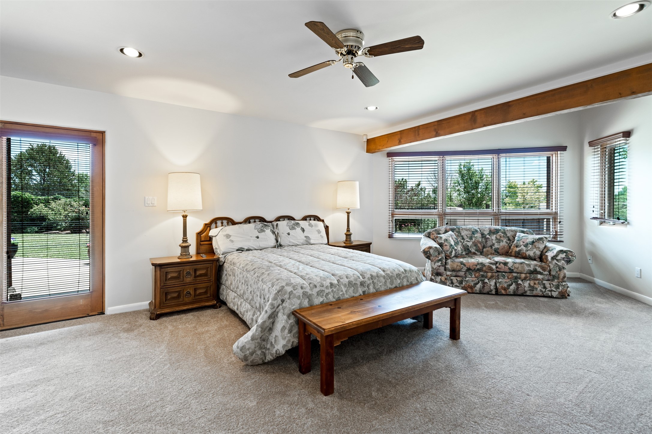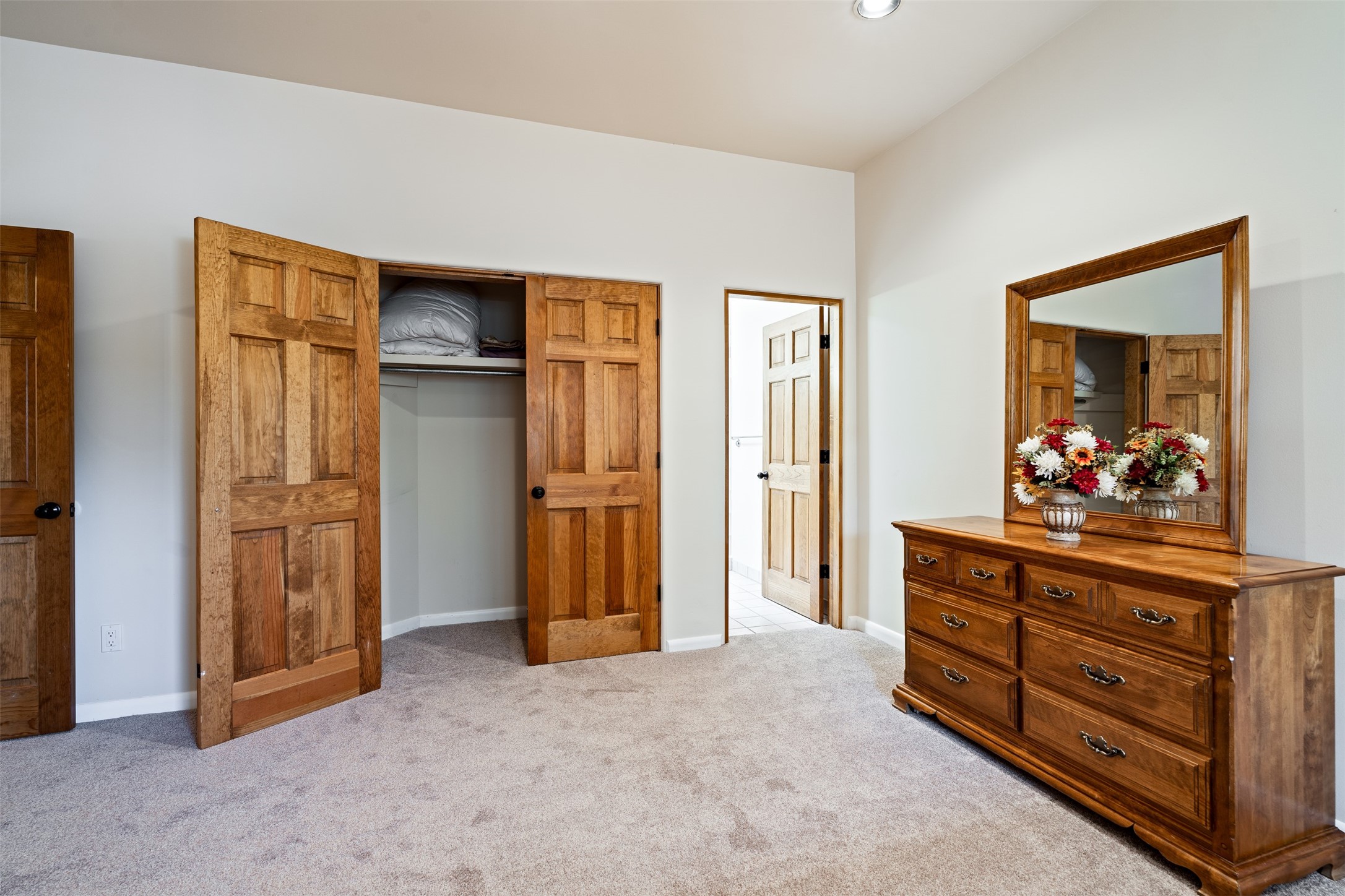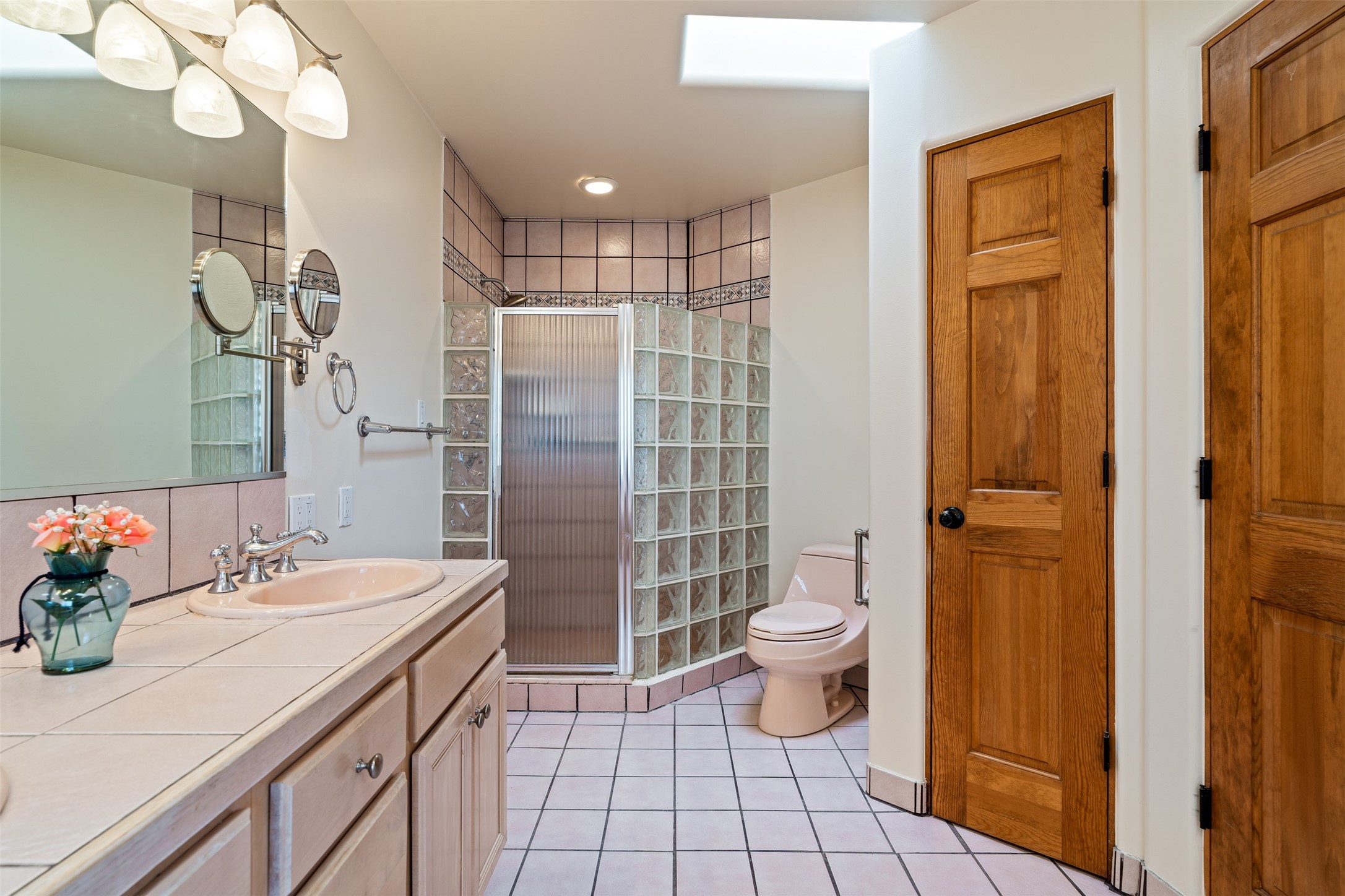 This one owner well maintained home is nestled on a quiet cul de sac street in an established neighborhood and offers an oasis of tranquility. It offers unparalleled charm and every detail has been thoughtfully crafted for luxurious living. From the moment you step into the spacious entry, you'll be captivated by the high ceilings throughout and the unique architectural elements. Enjoy the timeless Santa Fe charm vigas bring and especially when they are topped with split cedar as the grand hallway has been. Gather around the beautifully designed wood fireplace in the cozy living room, or enjoy morning coffee in the circular breakfast area with its enchanting wood-coned ceiling. The heart of the home, an updated kitchen with an island flows seamlessly into a formal dining area, perfect for entertaining. Retreat to the roomy primary bedroom or one of two spacious secondary bedrooms, each boasting an en-suite bathroom and generous closets. Outside, discover a private haven with established, irrigated front and back landscaping with a beautiful rose garden, and an enclosed backyard. Practical amenities such as an extra-long driveway, an oversized 1100 square foot 2-car garage with a 10-foot high double door. The garage is finished and has high ceilings and can accommodate many uses and greatly adds to the home's appeal. Bask in abundant natural light and enjoy the peace of mind that comes with living in an elegantly crafted home.