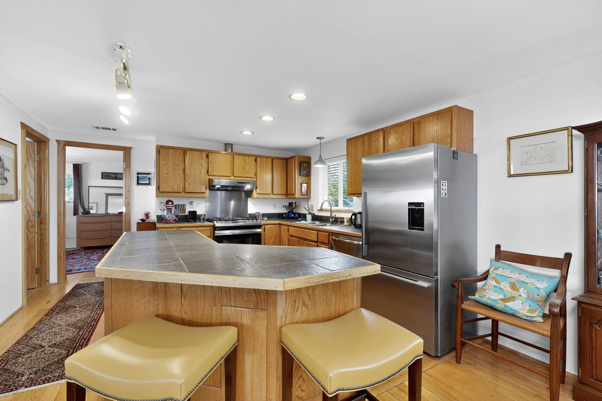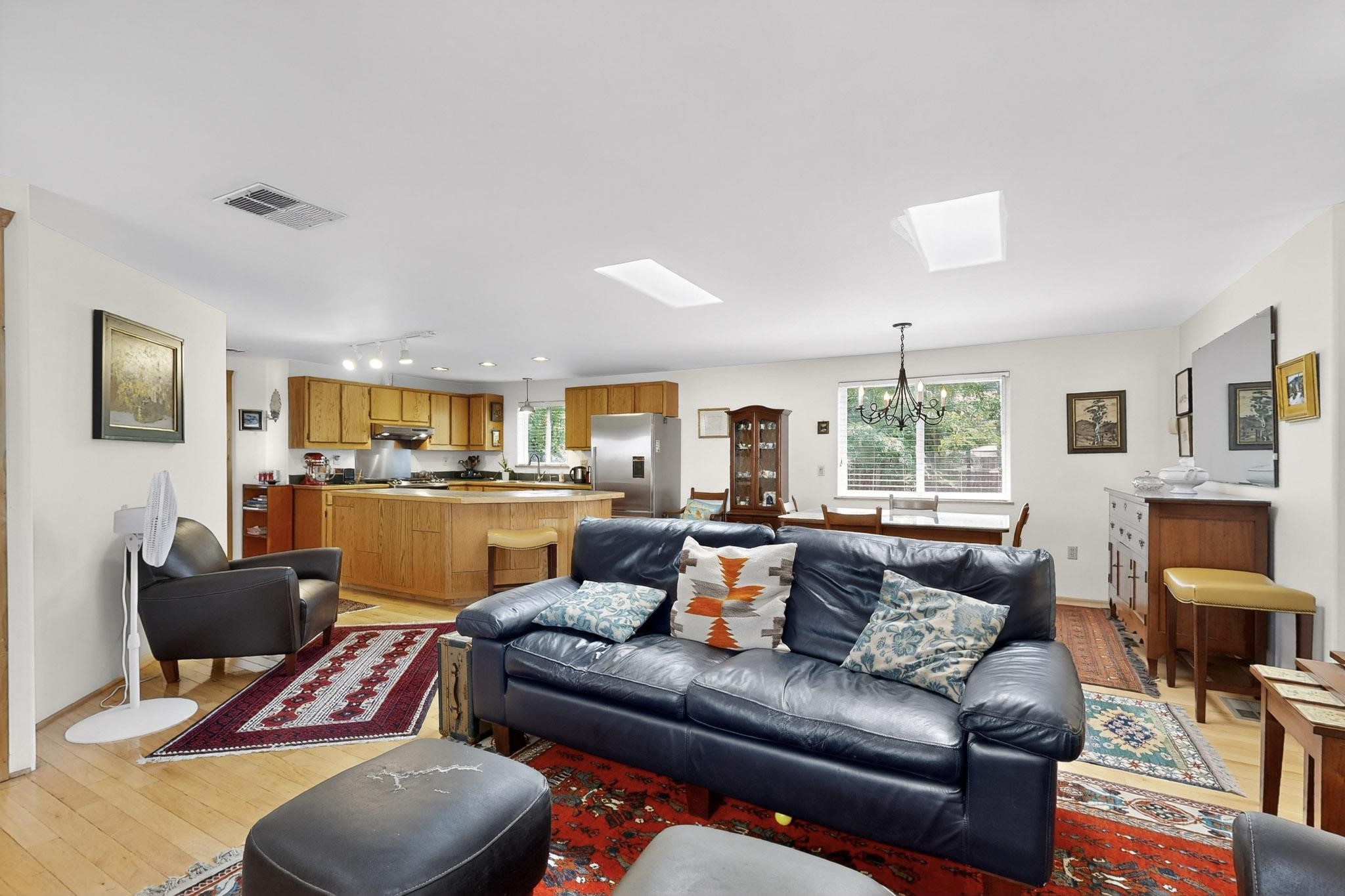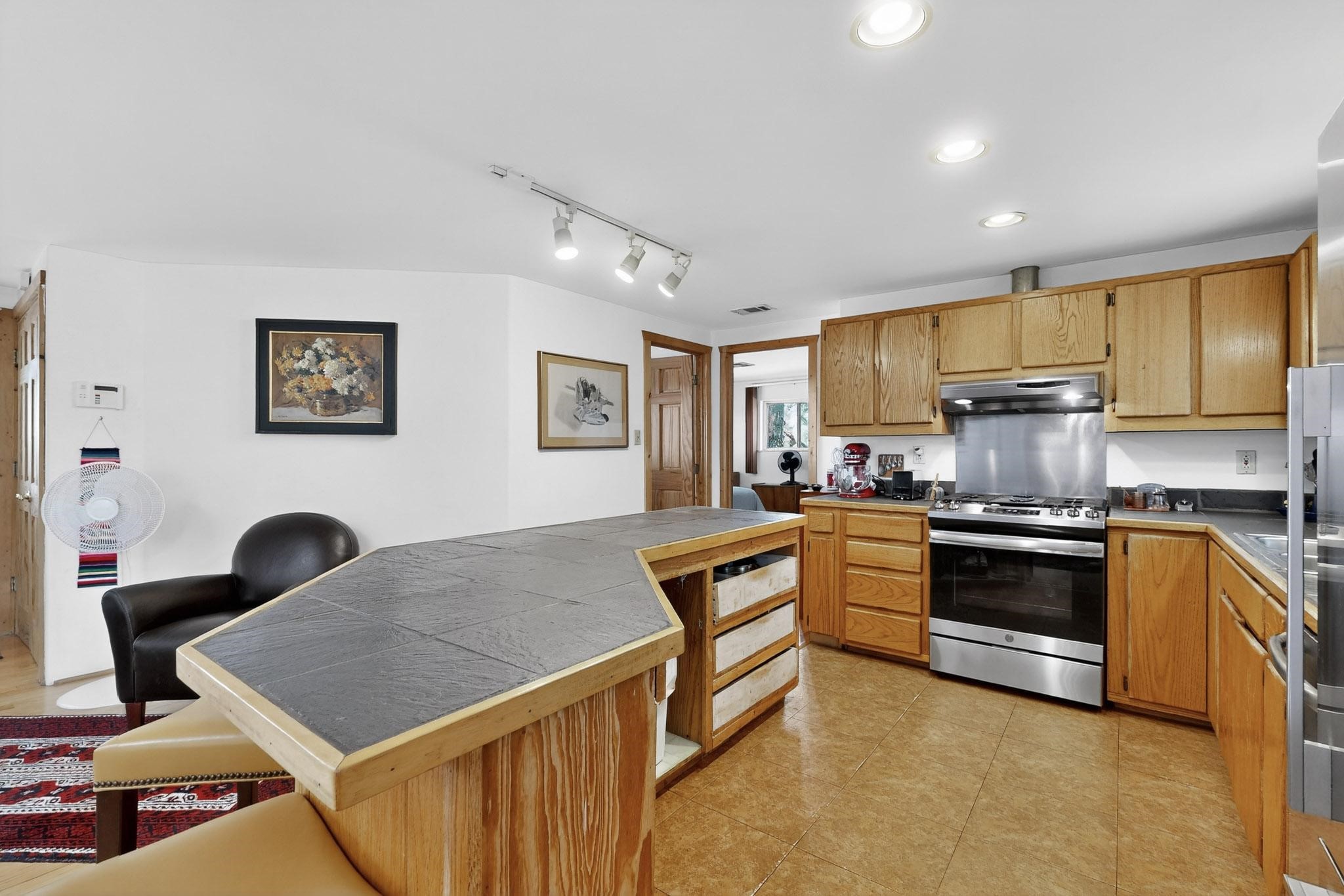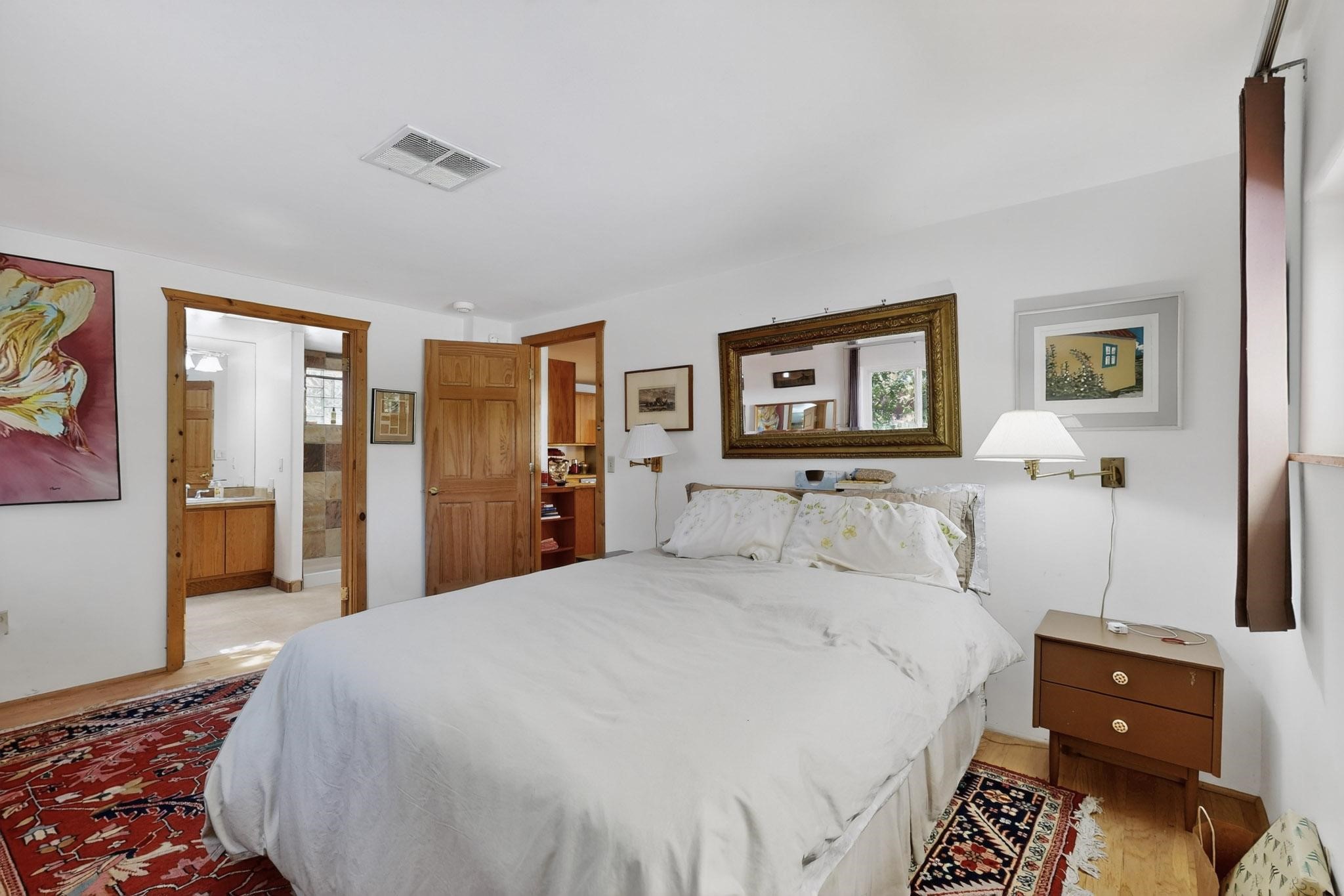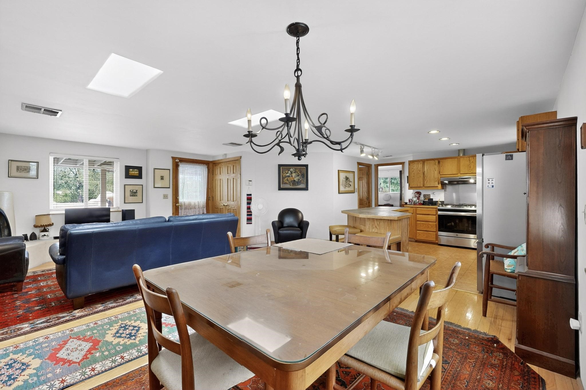Unique and charming property at the end of Paseo De La Conquistadora on just under a 1/2 acre corner lot. Potentially an ideal ADU (accessory dwelling unit). The property lends itself to multigenerational living with the elderly parents, an offspring and a caregiver living in close proximity but with separate living spaces for privacy. Nestled under mature tree cover this property has three residential dwellings. The site built house is composed of two units. One is a one bedroom with three quarter bath and has its own walled courtyard with flagstone pavers. The smaller unit is an efficiency with a three quarter bath. There is a manufactured home with two bedrooms, two office areas and two baths. It features oak and tile floors and has a nice ambience accented by a kiva fireplace. It also has a 684 square porch running the length of the building. There is a wonderful nicely landscaped side yard that is fenced and very private. The lot has numerous fruit trees, lilacs and tall pines and sits up high above the Santa Fe river and there is a nice view of the Sangres. The Santa Fe river trail is just below the lot. The property has secure access via a remote controlled gate.