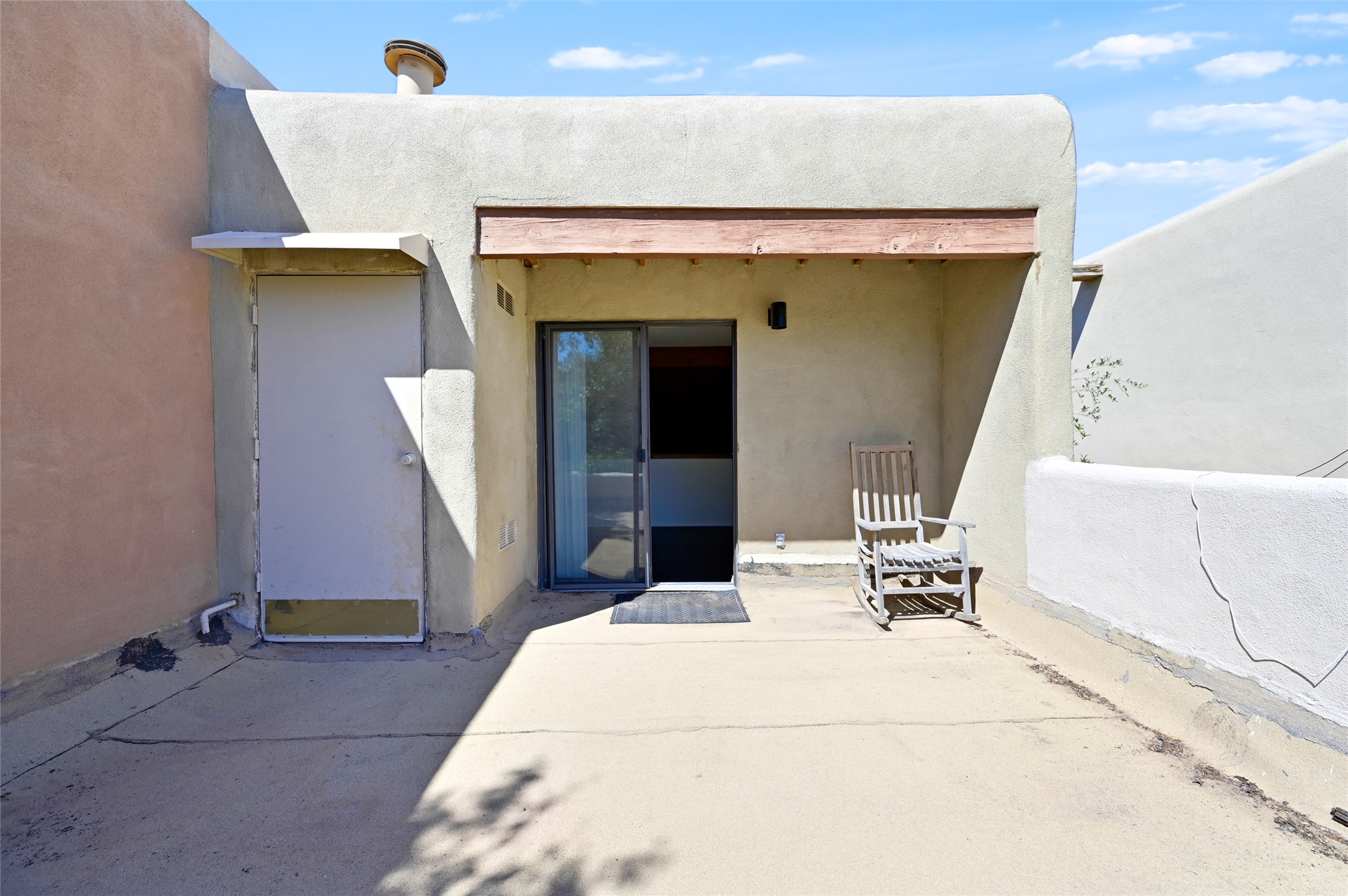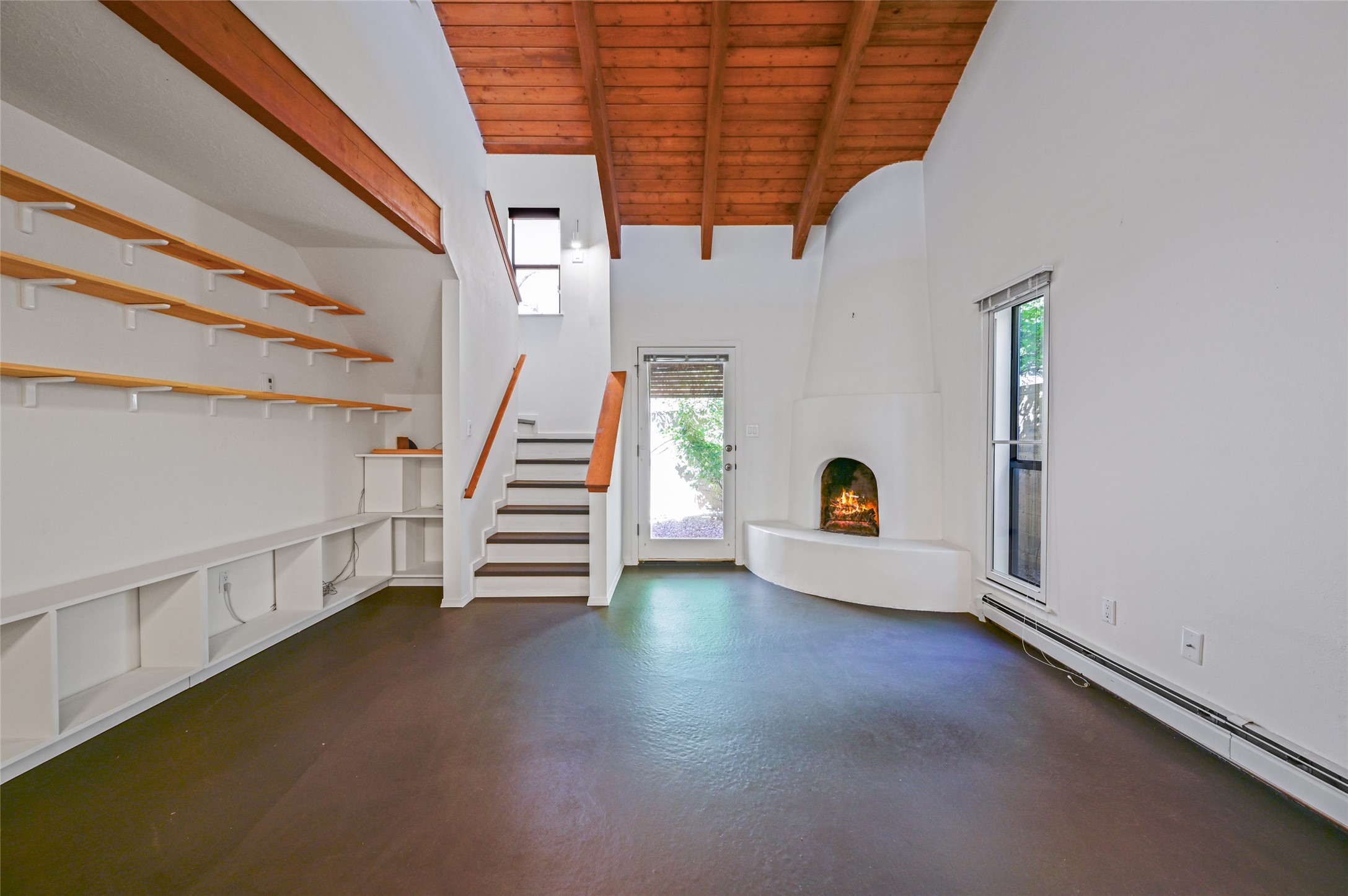 A charming townhome in the Las Americas development, located in the heart of Santa Fe. This inviting open-concept layout flows seamlessly from the living room to the kitchen. The living area features a cozy kiva fireplace, built-in bookshelves, and soaring vaulted ceilings. Upstairs, you'll find a spacious studio with a private balcony offering scenic views, while the primary bedroom is conveniently located on the main level along with a full bath for easy accessibility. The property also includes a fenced backyard with mature landscaping, perfect for relaxing or entertaining. Centrally located, this townhome offers close access to Santa Fe's vibrant shops, restaurants, and beautiful natural spaces. With several nearby trails, it provides the ideal balance of urban living and outdoor adventure.