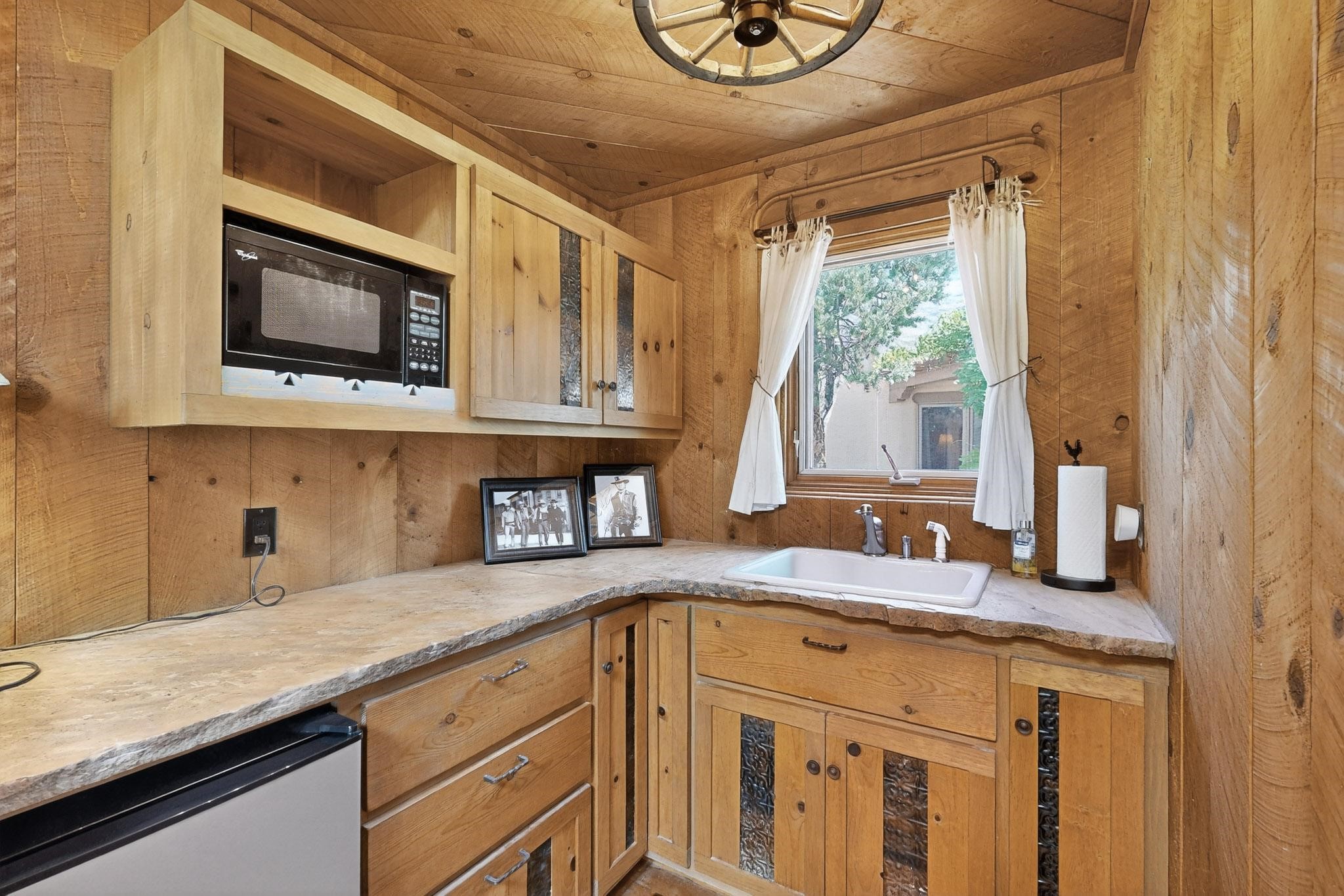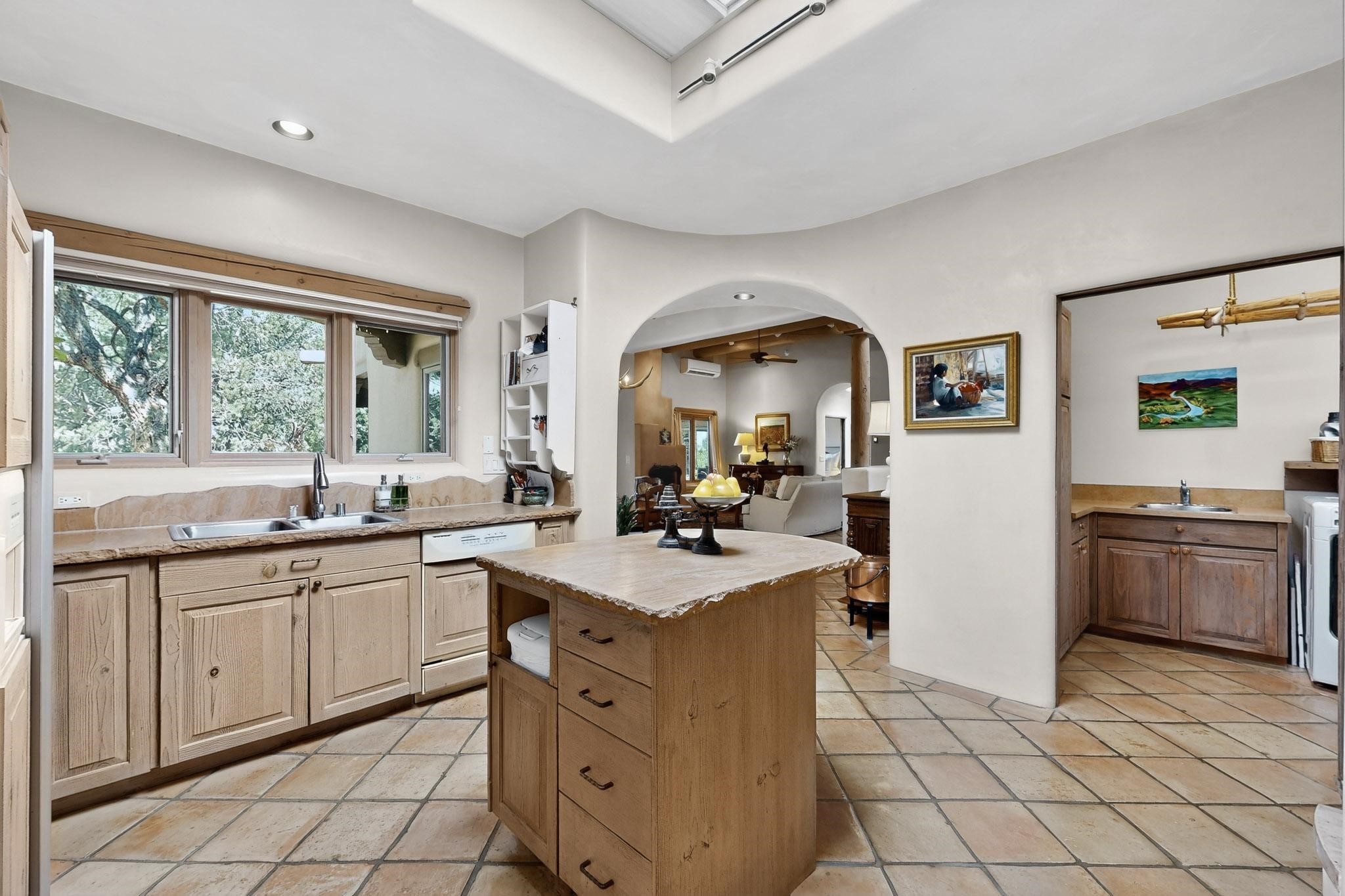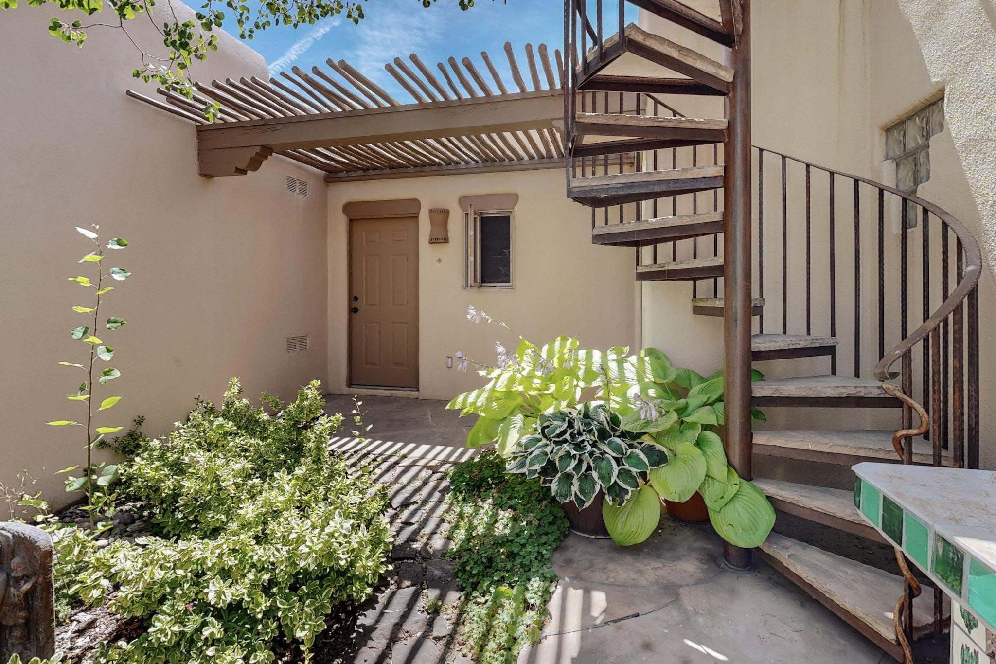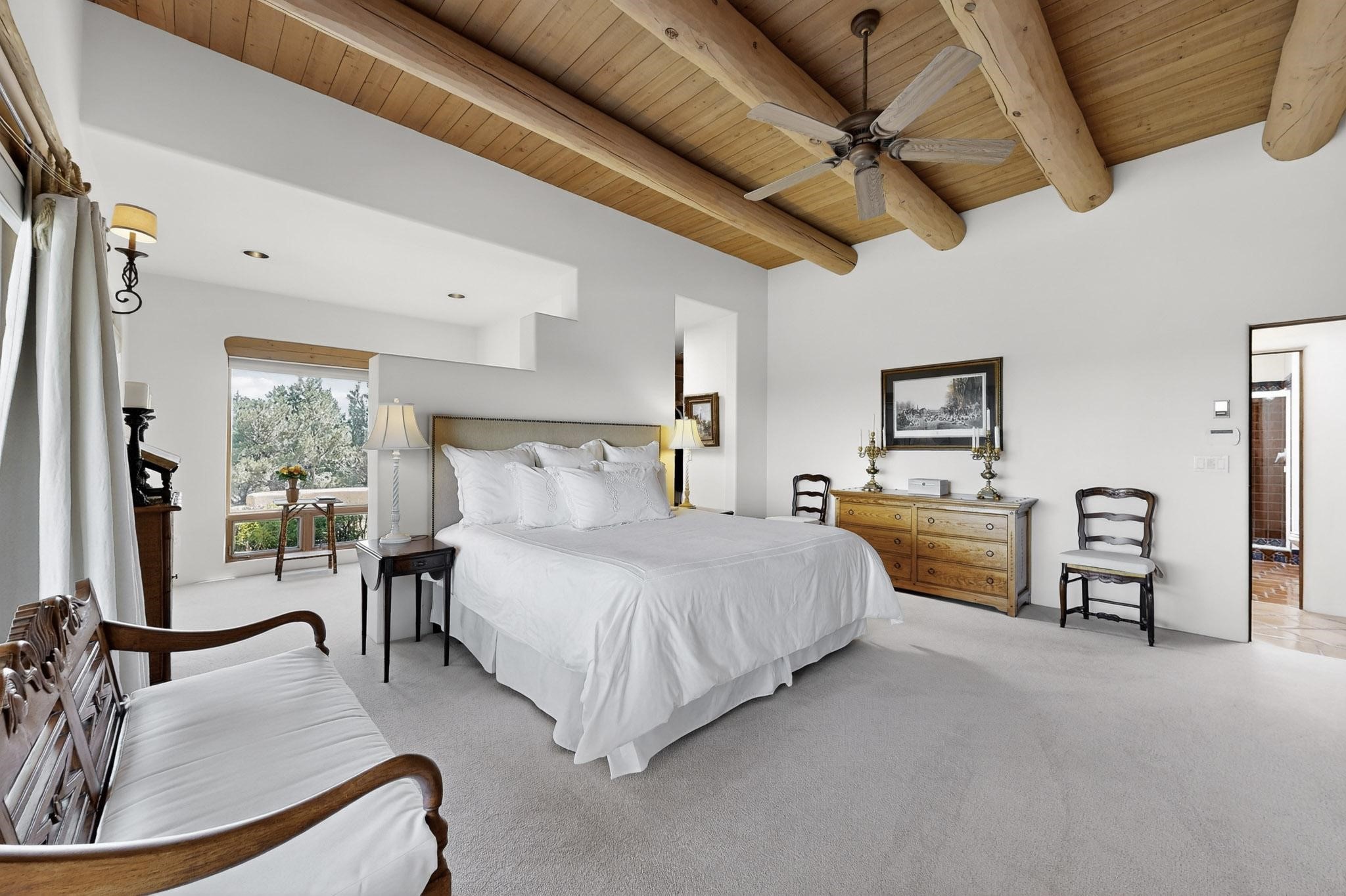 Vast sweeping panoramic western views define this exceptional property. The main house includes a primary bedroom suite with a fireplace, comfortable sitting area and a spa bath for relaxation. Large windows showcase the expansive western vistas, and doors lead to the portal. An additional room serves as either a TV room/office or bedroom and features its own fireplace and stunning views of the Sangres. The open floor plan seamlessly connects the living room, dining room, and kitchen, all centered around the fireplace. A unique and charming casita complements the main residence, equipped with a kitchenette, bath, and a cozy fireplace, making it ideal for guests or extended living. The wraparound portal, featuring a fireplace, showcases sweeping western views, offering the ideal setting to enjoy breathtaking sunsets. Relax to the soothing sounds of the stone fountain and enjoy watching the birds and butterflies in the fragrant colorful garden. A large patio area including a built-in grill, features additional space for relaxing and entertaining. The rooftop deck offers spectacular 360-degree views and the gated and walled property offers privacy.