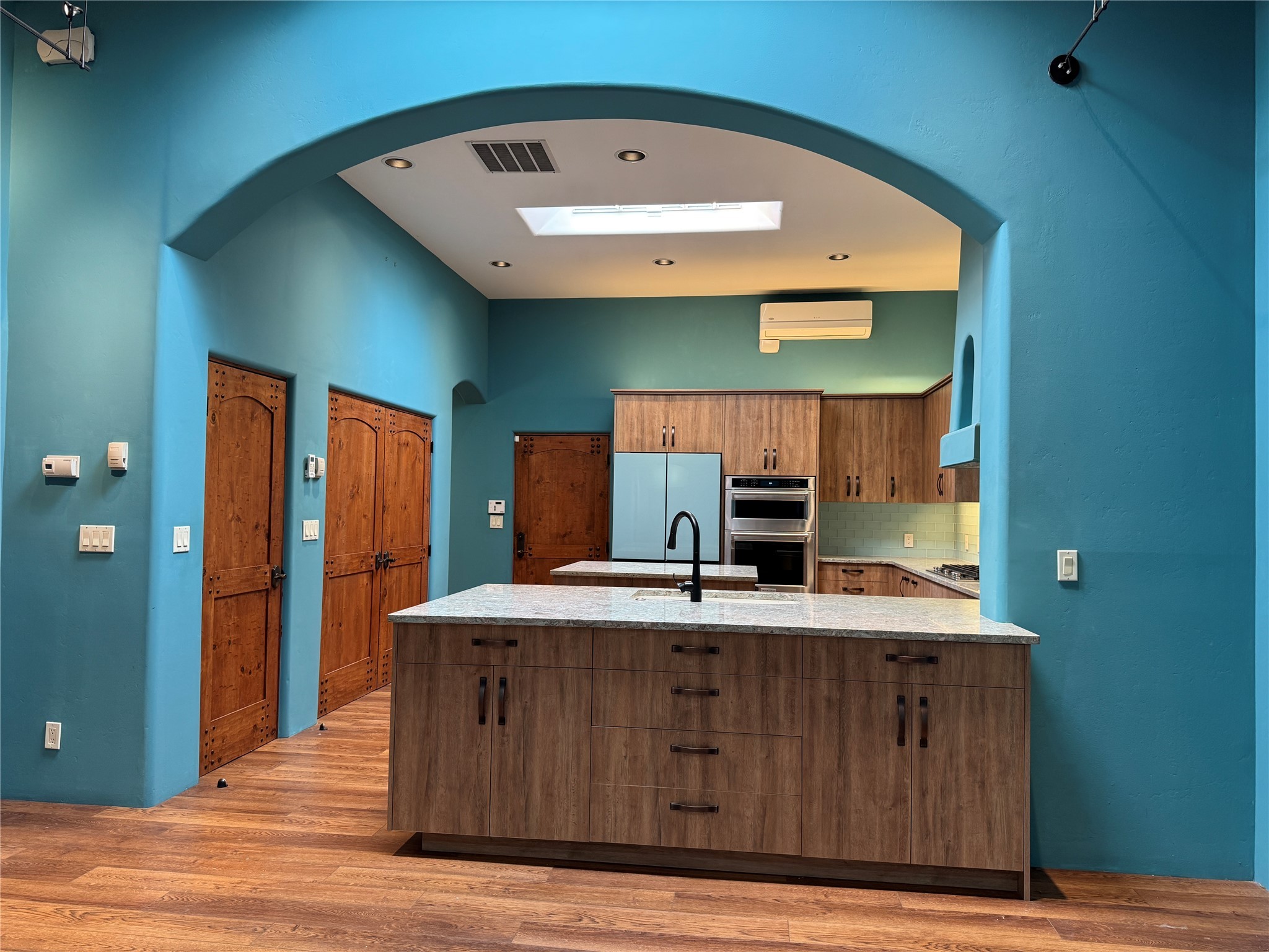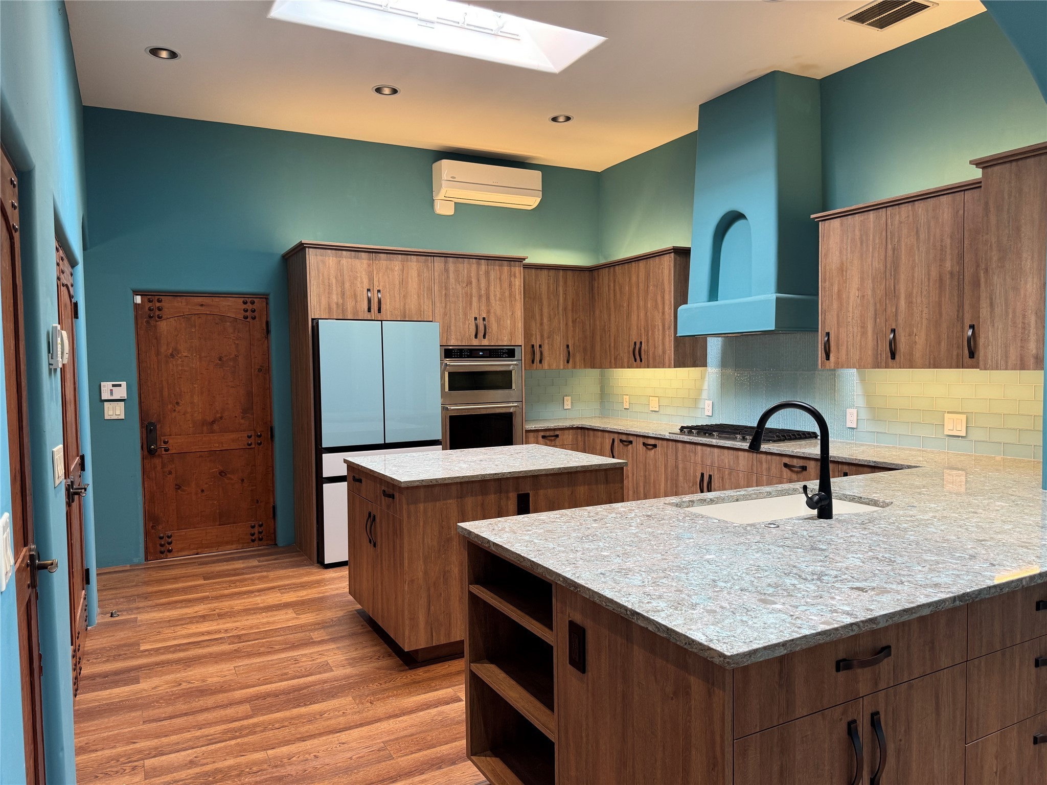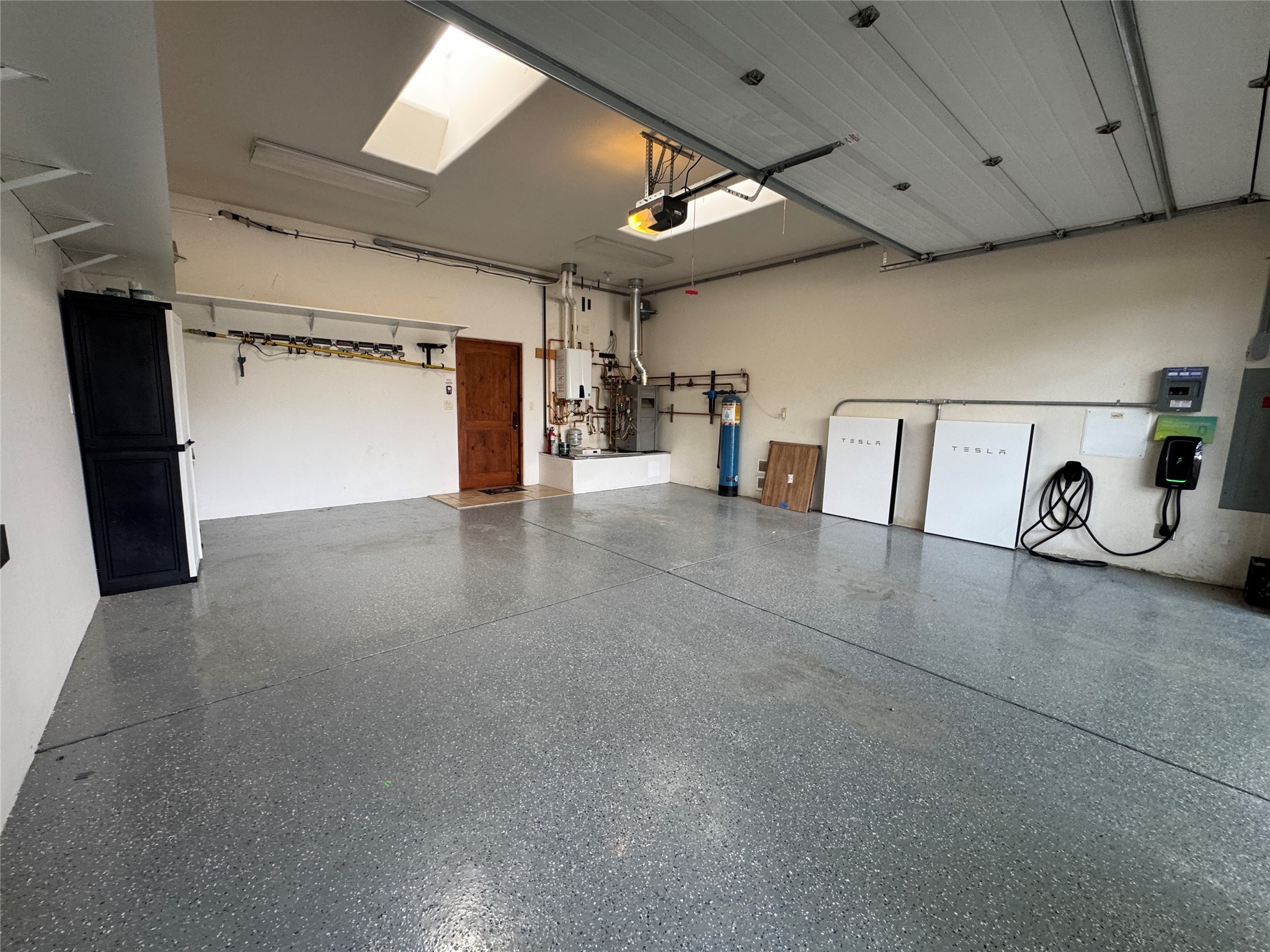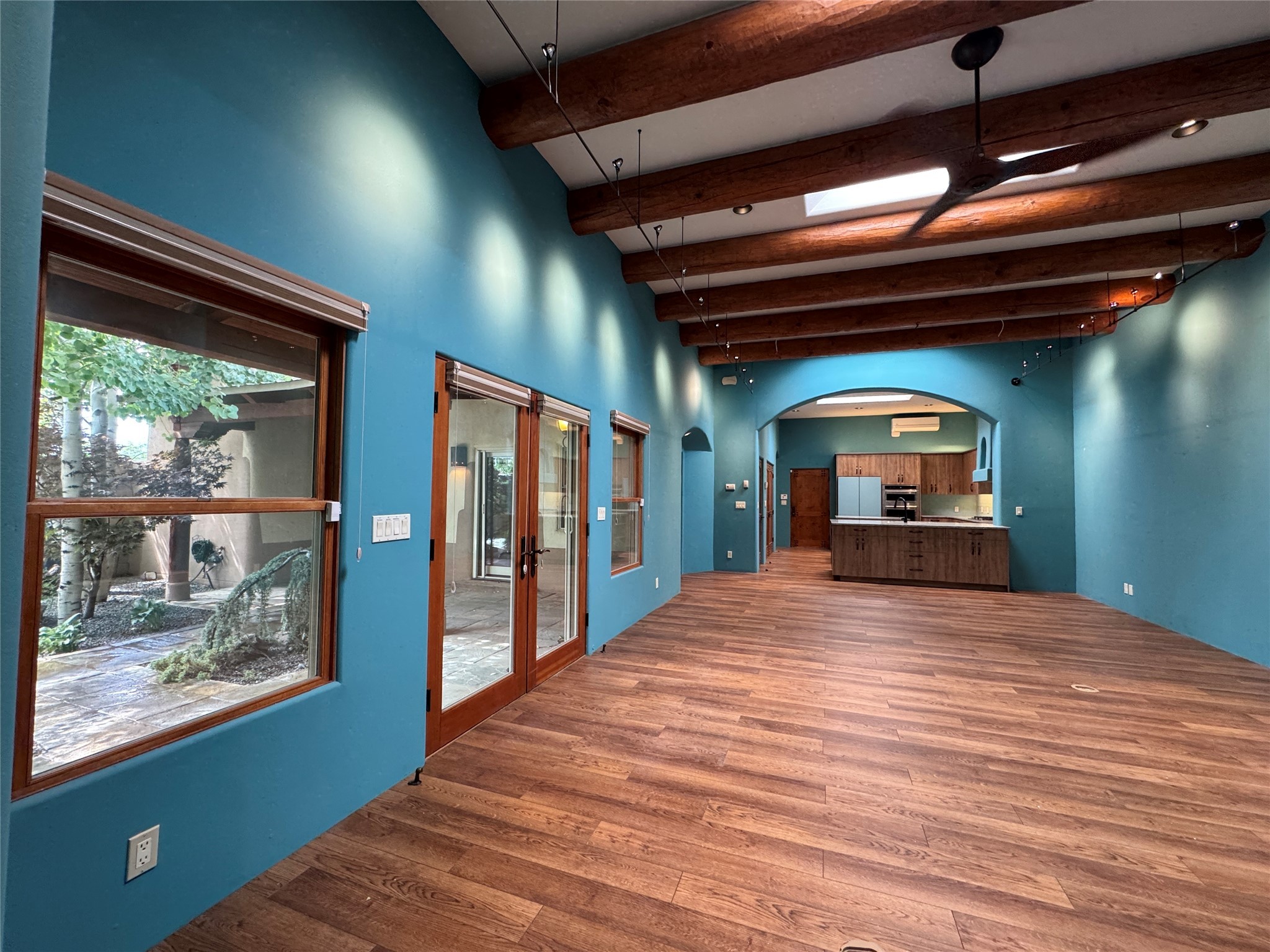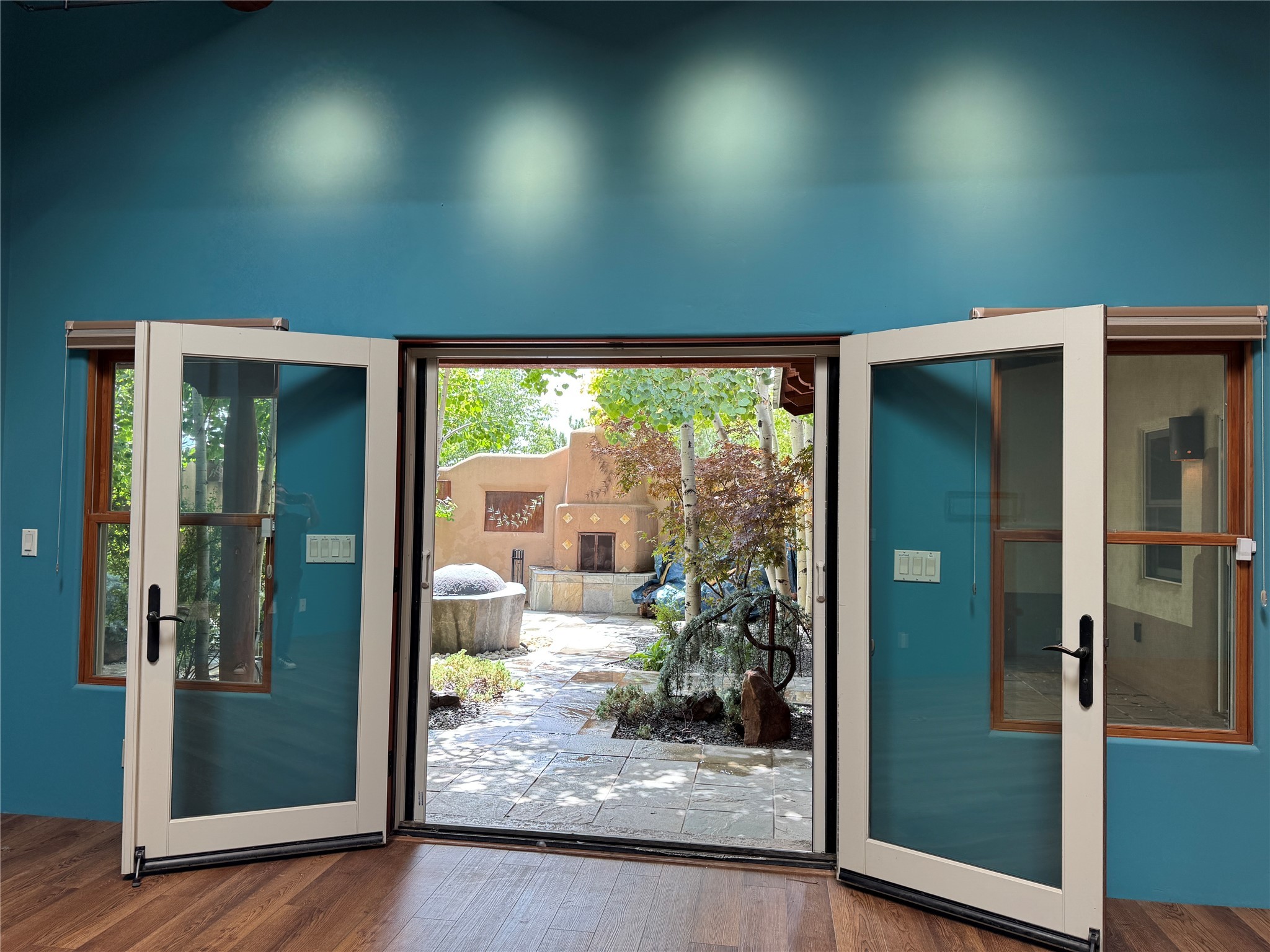 Check out the magical courtyards in the coveted Oshara Village community home featuring abundant natural light and open concept living. The main house has 2 bedrooms and 2 bathrooms. High ceilings with skylights bring the outdoors in and large traditional southwestern vigas remind you that you are in the Southwest. The beautifully remodeled chef's kitchen features a KitchenAid gas stove and oven alongside a Samsung smart refrigerator. The spacious living room has gallery lighting throughout, perfect for your art collection. The wood burning kiva creates a quintessential Santa Fe ambiance with hand chiseled solid wood doors, top of the line window shades, stone tile are found throughout this dreamy home. Enjoy the privacy of room separation from guests with the second bedroom having its own entrance via the courtyard. At the end of the day relax in your Jason Hydrotherapy tub in a spa-like main bathroom with a Japanese smart heated toilet. The walk-in closet is ready for your wardrobe for all four seasons. Other features include miniSplit cooling and heating, tankless water heater, $50K Solar Panel system (paid off), and 2 car garage with finished floor including 2 Tesla generator batteries and an electric charging station, ready for your green vehicle. Natural landscaping with mature aspen trees, gorgeous water features, and outdoor fireplace create your own oasis for entertaining or sipping that first cup of coffee/tea in the morning, listening to the birds in one of the most beautiful courtyards in Santa Fe. This property also includes a 30 sf heated casita/guest house with a separate entrance featuring a mini kitchen with Wolf burners , mini fridge and a kitchen sink. Two minutes and you are at Pantry Dos Restaurant and a few minutes drive to the Community College, Genoveva Chavez Center, stores, grocery stores, cafes, restaurants and much more. Come experience 3 Craftsman Road, your private oasis in the desert awaits!