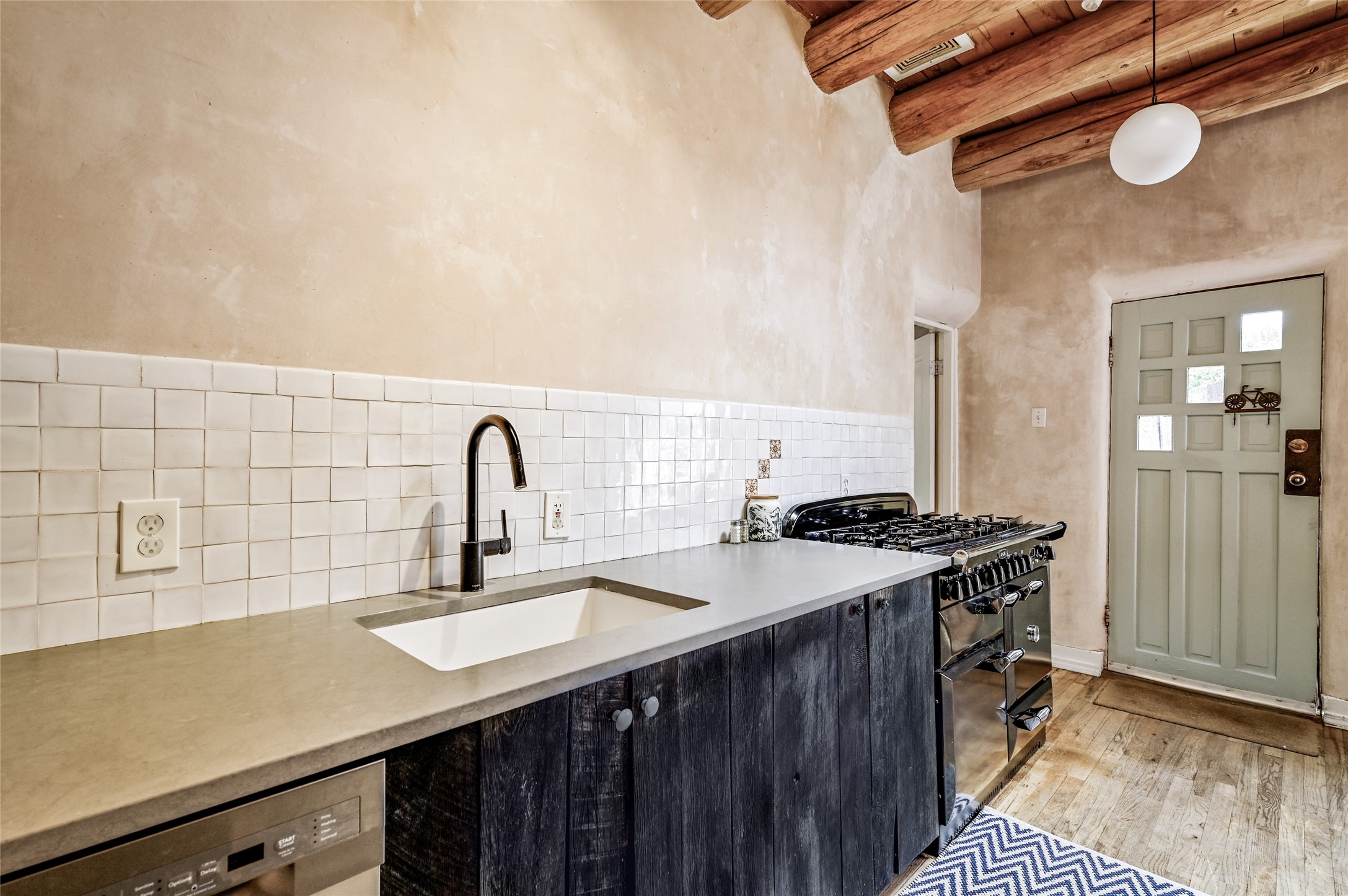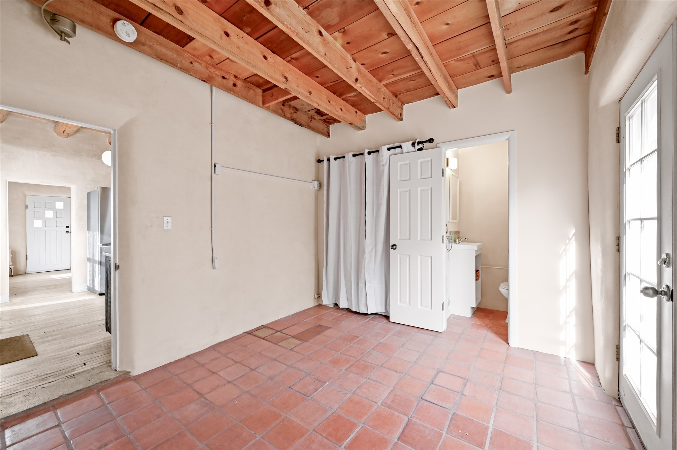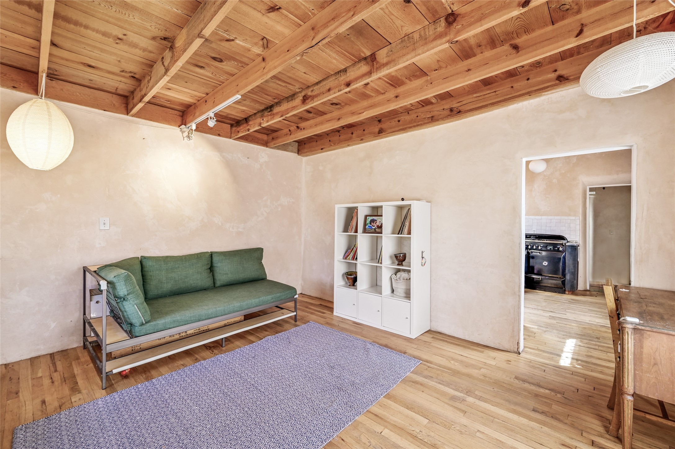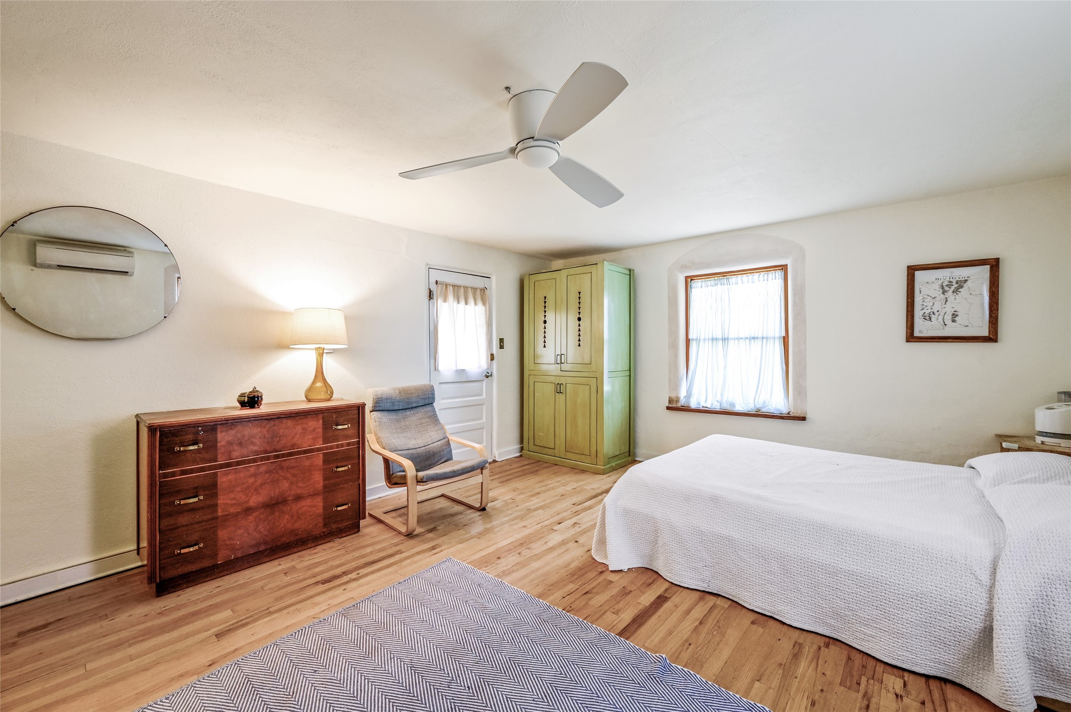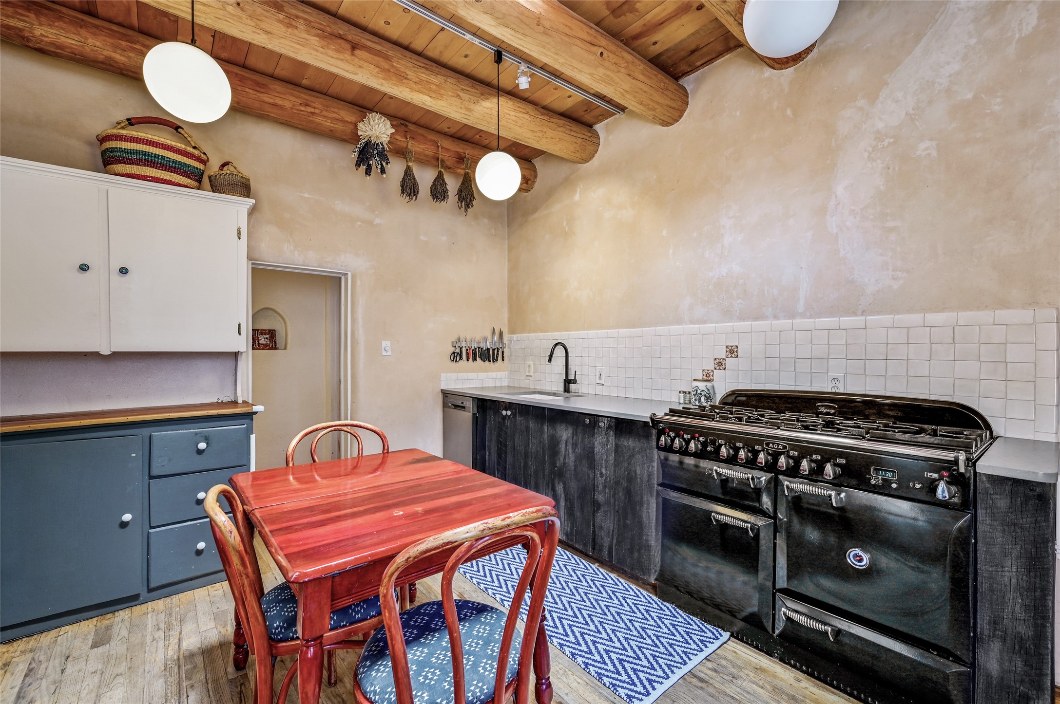 Charming 2 bed/2.5 bath + bonus room/office single level adobe home on corner lot w/thoughtful modern upgrades in centrally located neighborhood. Walk to coffee shops, restaurants, parks, and ride the Rail Trail to the farmers market, concerts, and events in the Railyard District and historic Santa Fe Plaza just minutes away. Versatile ~1400sf layout w/bright South facing living room & eat-in kitchen w/abundant cabinet space, designer AGA oven, & new stainless-steel appliances. Classic Santa Fe details throughout with hardwood floors, vigas, niches, Talavera tile, and plaster walls paired with recent updates such as a brand new renovated half bath in the bonus room/office. Enjoy customizable temperature control with zoned heating/cooling with mini splits and gas fireplaces & heaters. Ample outdoor living and entertaining space with large walled front and back yards with mature apricot trees. Don't miss your chance to own this cozy adobe home in the heart of Santa Fe!