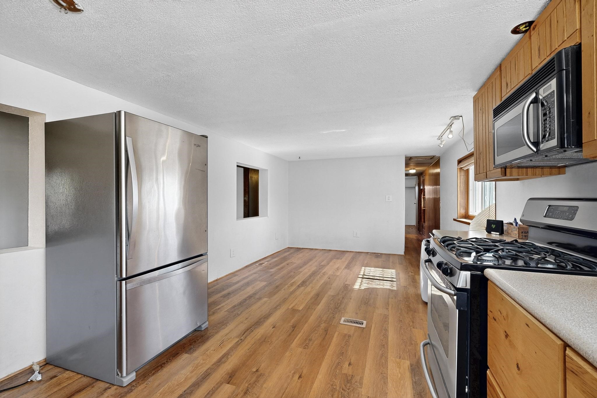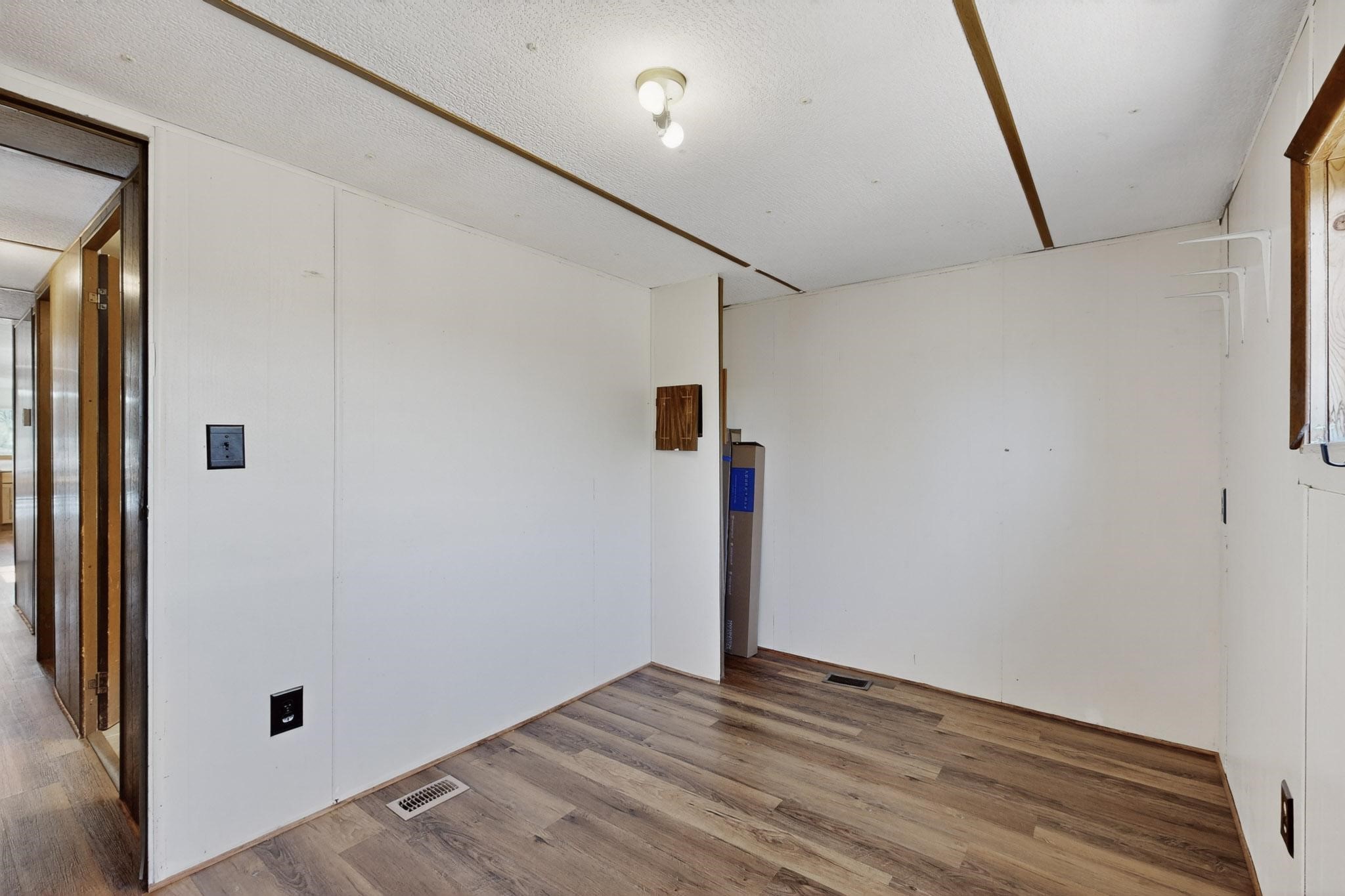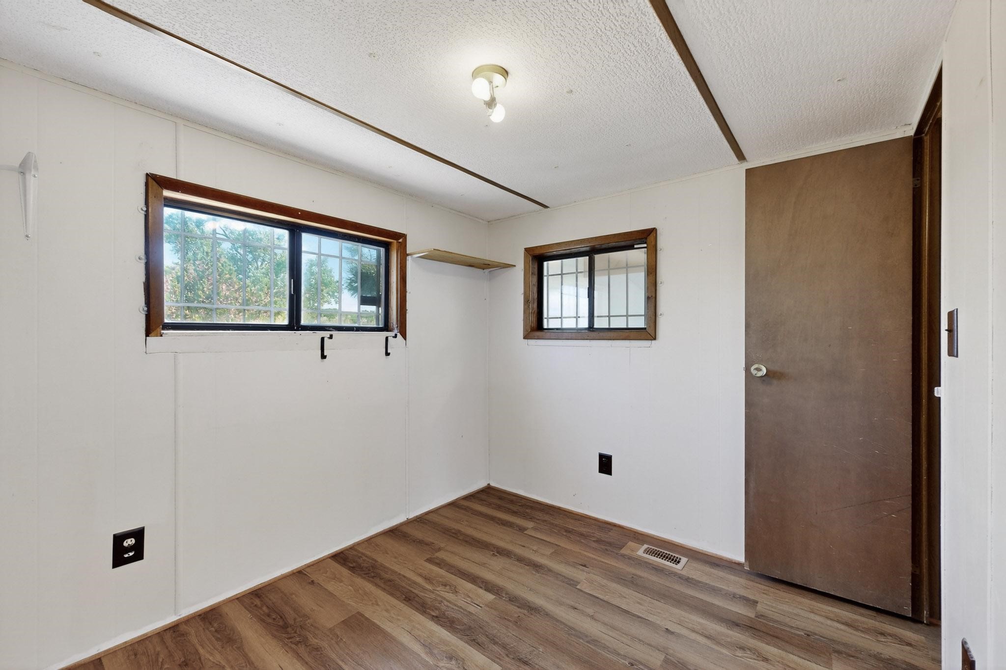 Tucked away in a serene, private haven far from the hustle and bustle, but only 23 miles from Santa Fe, and 21 miles from Los Alamos, this 5.04-acre horse property weaves together rural charm and modern comfort. Enveloped by lush, irrigated land and shaded by towering cottonwood trees, the estate offers a tranquil retreat perfect for those craving peaceful solitude. The property consist of four separate but adjoining parcels, with a well-maintained large barn that stands ready for equestrian pursuits or hobbies, while secure water rights ensure the vibrant pastures and greenery thrive year-round. Scattered across the property, fruit trees yield seasonal delights, adding a touch of homesteading allure. At the heart of this oasis lies a converted and expanded 3-bedroom, 2-bathroom manufactured home. Whether you're an equestrian enthusiast, a nature lover, or simply seeking a secluded sanctuary, this remarkable property invites you to embrace a life of tranquility and endless possibilities. Schedule a showing today to discover this rare gem! Neither seller nor broker warrant any listing information. Areas that are of matrial interest should be independently verified by the buyer.