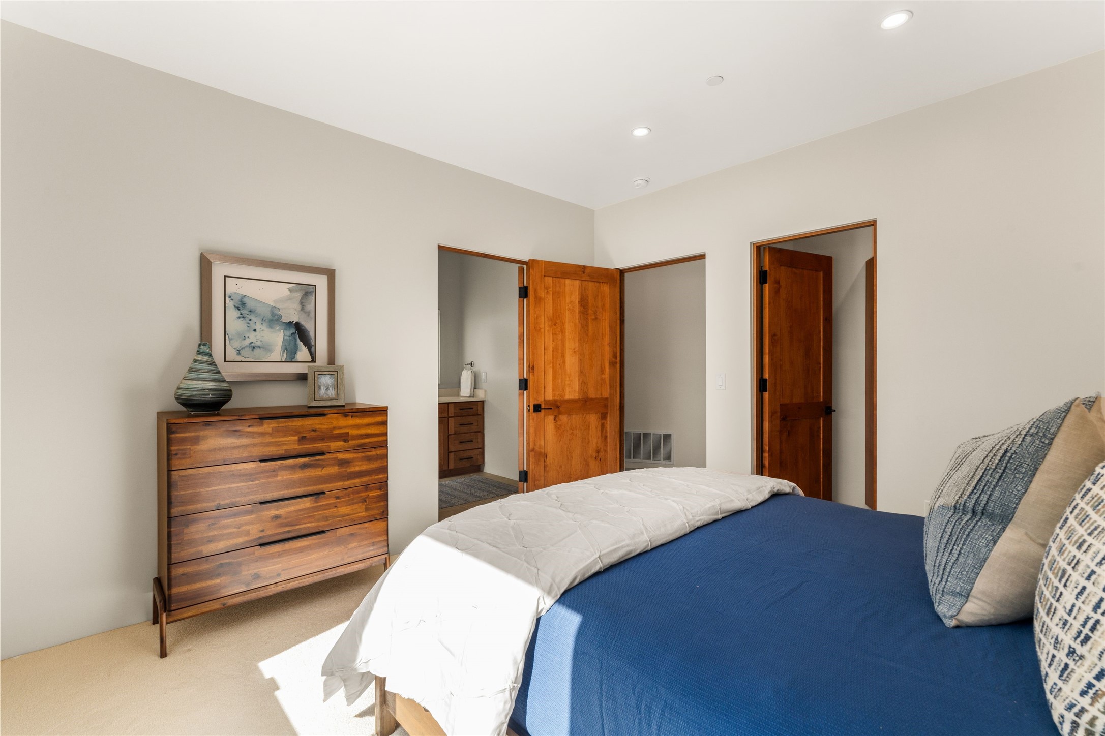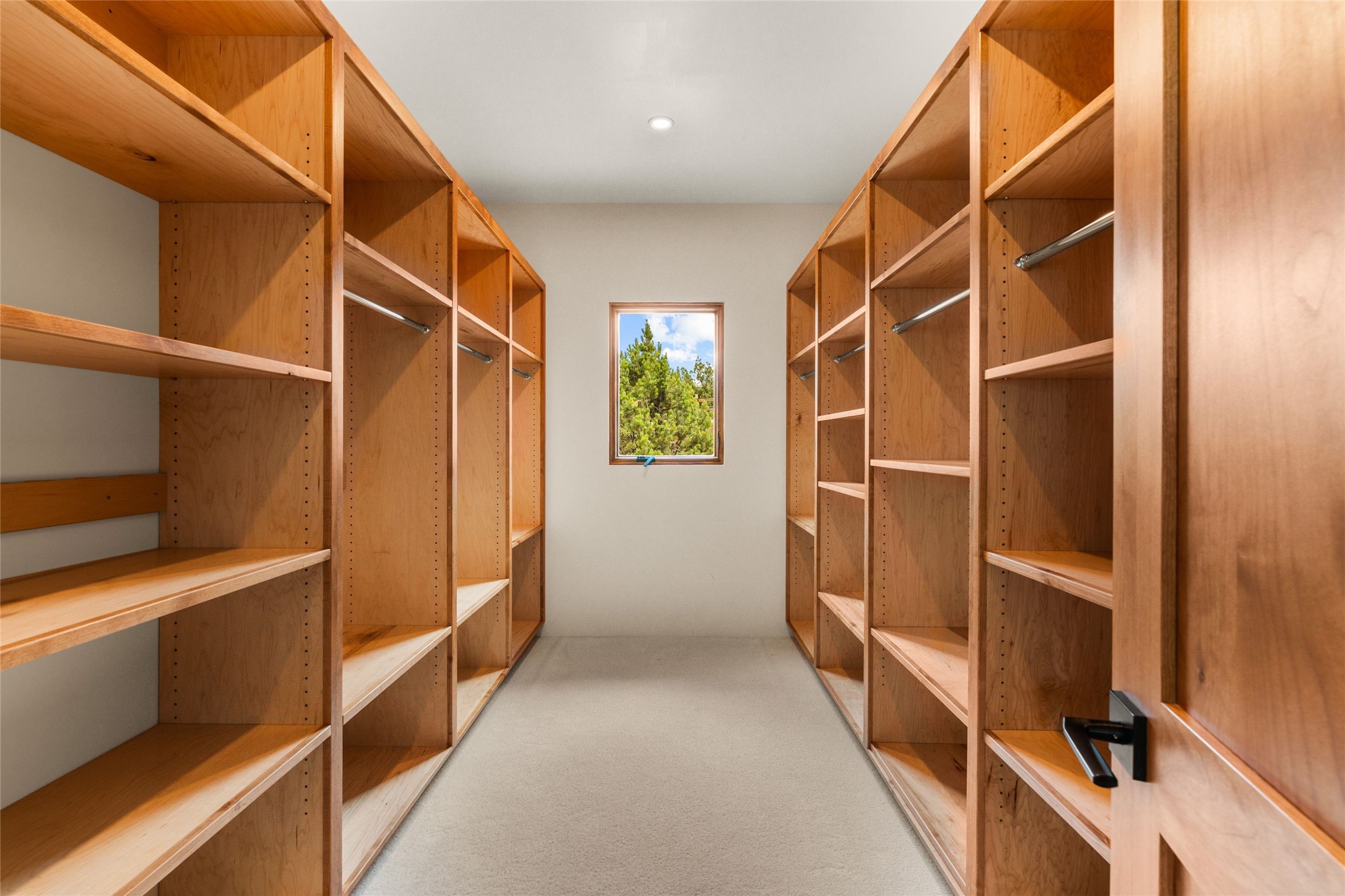 Santa Fe is a vibrant city and this is the home to enjoy it in. Nestled in one of the most sought after neighborhoods, this exceptional custom built home offers the perfect blend of luxury, tranquility, and design. Not far from the downtown, yet situated on 2.5 acres with breathtaking views in all directions. Not too grandiose but just the right amount of wonderful with tall beamed ceilings, tasteful wood floors and an impressive open concept that accommodates flawlessly while continually framing the captivating West views Santa Fe is famous for. Spend your mornings on the south of the home with a delightful seating area amongst fabulously landscaped outdoor spaces with mature spruce and aspen trees and fire pit but be sure to take in the evenings on the rear portal with the custom 65" Cubo Fire Table situated to capture the unparalleled views of the Jemez Mountains. With over a thousand sq ft of covered outdoor spaces, this is the ideal place to enjoy; as beautiful on the inside as on the outside and perfect for entertaining. Heated oversized three car garage, den/bedroom with extra soundproofing great for music enthusiasts or a media room, nicely appointed kitchen, bedrooms en suite, gated entry, Tpo roof, nearby trail systems, no dirt roads, Level 3 ev charger, whole home humidification system and more. If you're looking for a property that combines privacy, elegance, and a connection to the natural beauty of this incredible city, look no further. Come and experience this serene and tranquil beauty, and oh those outdoor spaces!