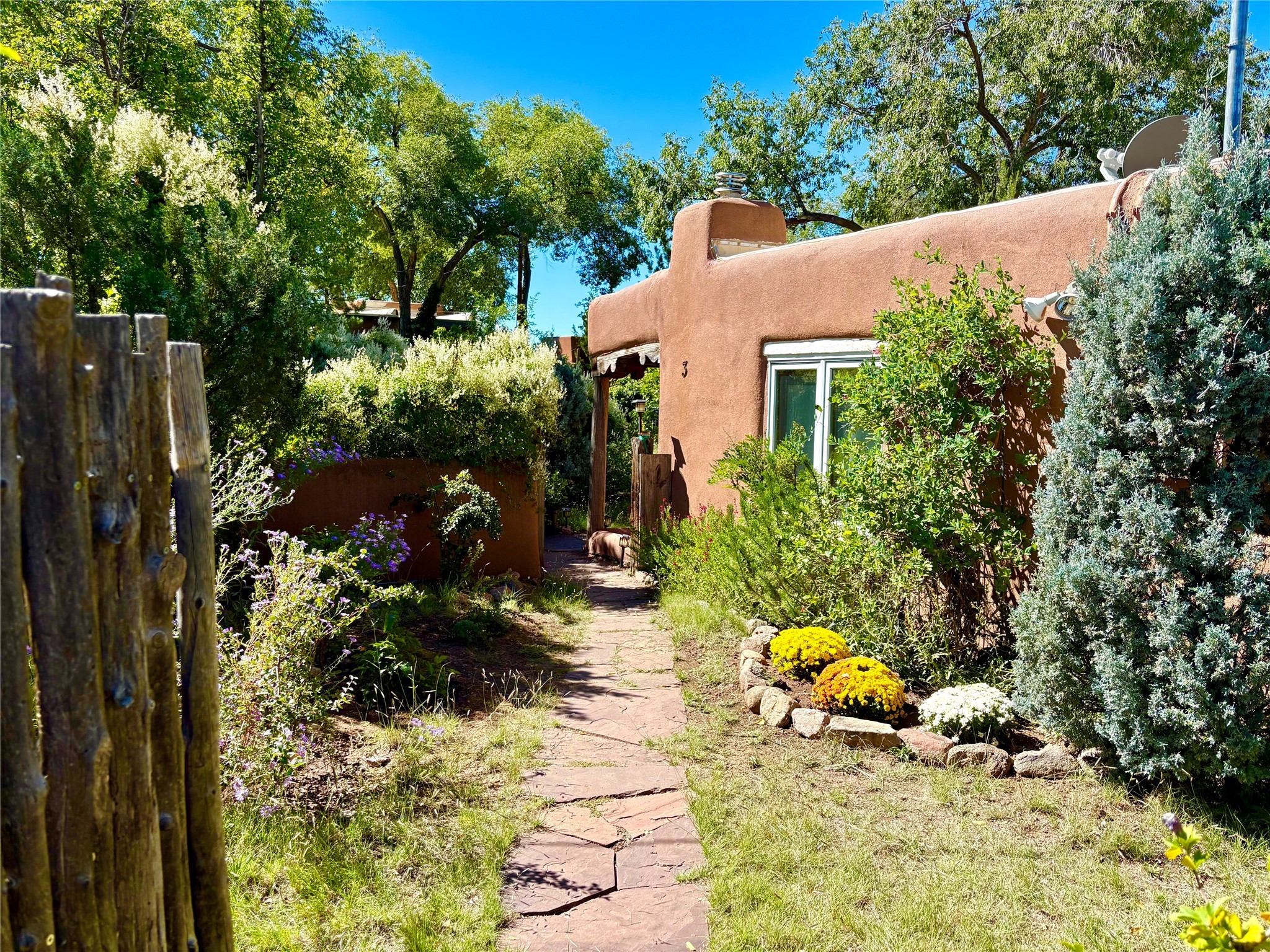 *** WEBSITE: oldcompoundsantafe.com *** What's your dream? A historic Santa Fe compound, nestled on about two semi-rural acres, with an adjoining 0.41 acre lot. Less than 3 miles from the Santa Fe Plaza, the 100+ year old adobe residence and five casitas surround a green central oasis and a small swimming pool. + Imagine the possibilities: retreat, extended family, intentional community, workshops, therapy & health, retirement, or something not yet imagined. +Reserved development rights on 2/3 acre and the vacant lot expand the possibilities. +The current owners discovered the compound in 1969, bought it in 2006, and have been restoring, planting, and loving it ever since. They are ready to offer the compound to new owners, whatever their new dreams may be. + 6 units in 4 buildings, with 8 bedrooms, 8 baths, 9 fireplaces. (Note: Fires in fireplaces are photoshopped in. Buyer should verify fireplaces' functionality.) + Total heated space = 6215 sq. ft. + Each unit has private outdoor garden space. + Extensive remodeling: kitchens and baths, oak and brick floors, new Pella windows, TPO roof, and more. + Landscaping with hundreds of native trees, bushes, vines, and flowers; rock walls and fences. + 12' x 28' Barn with roll up garage door.