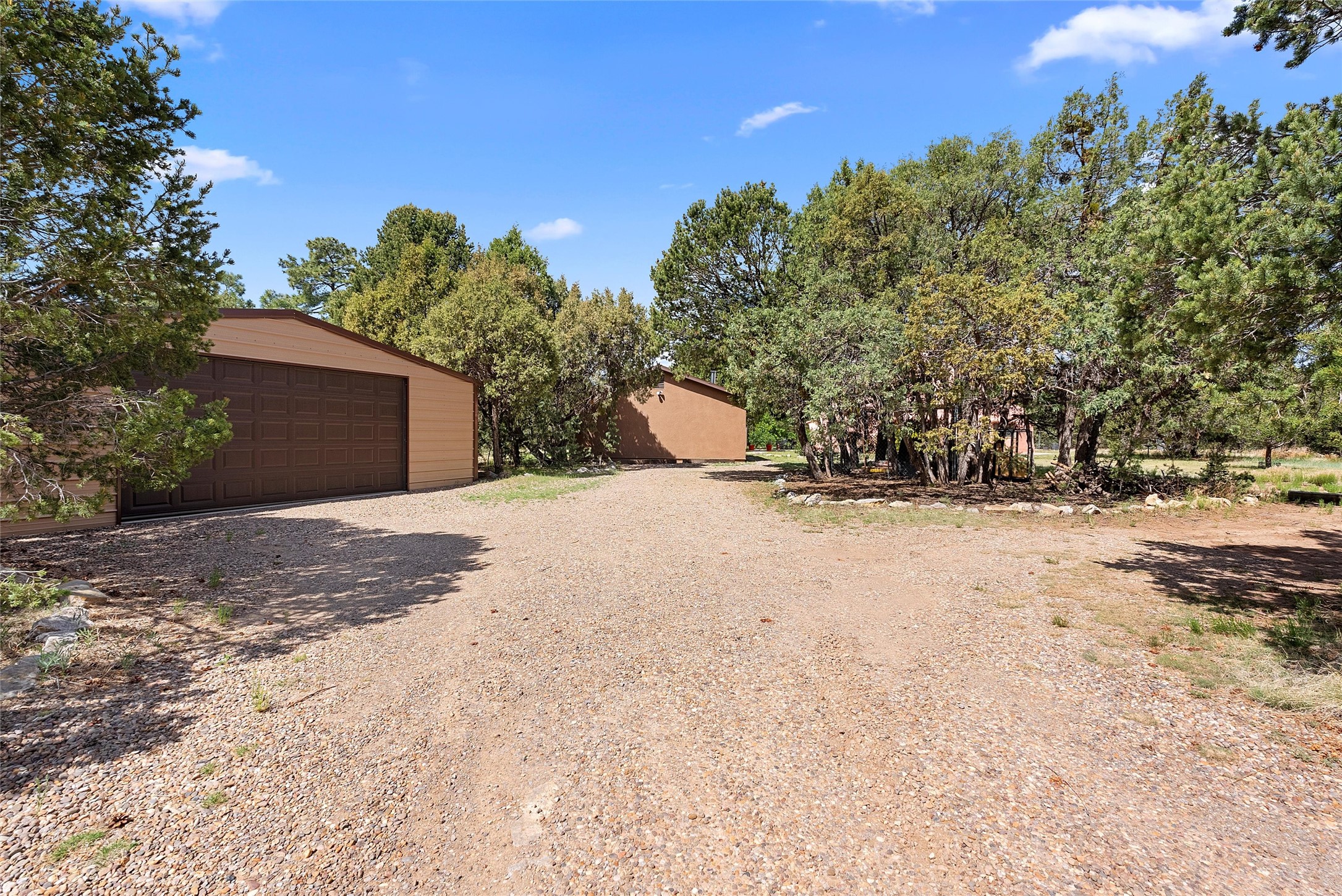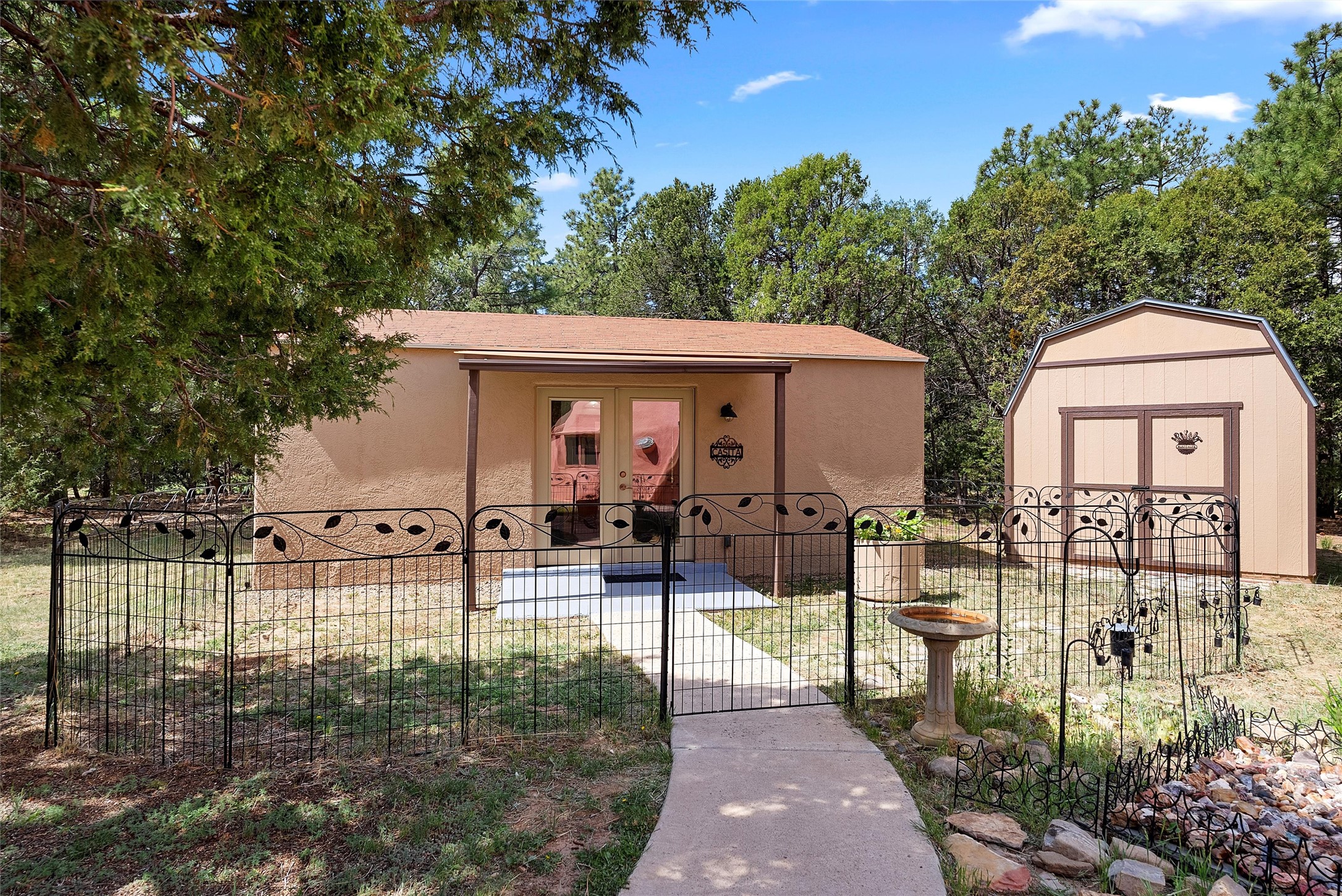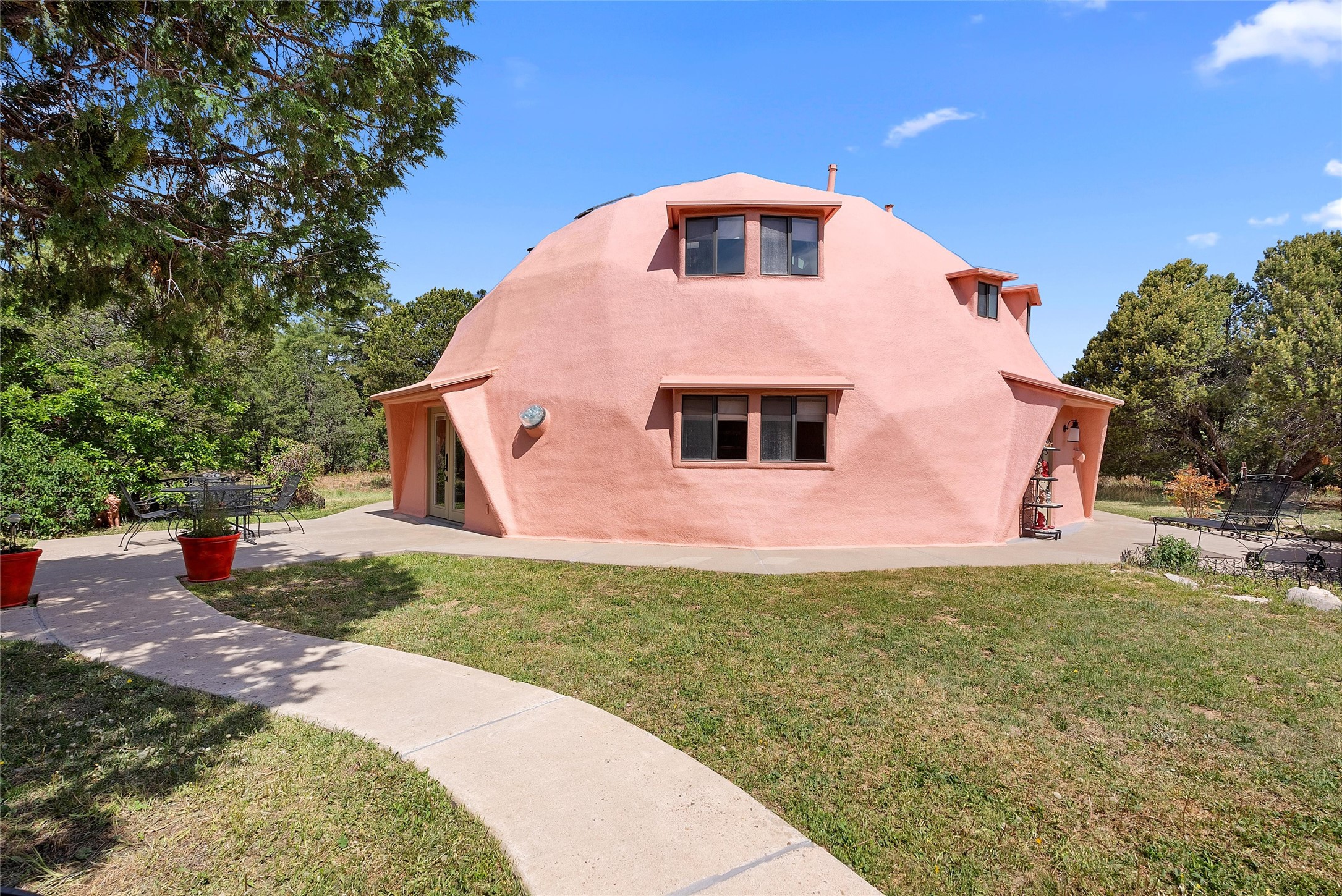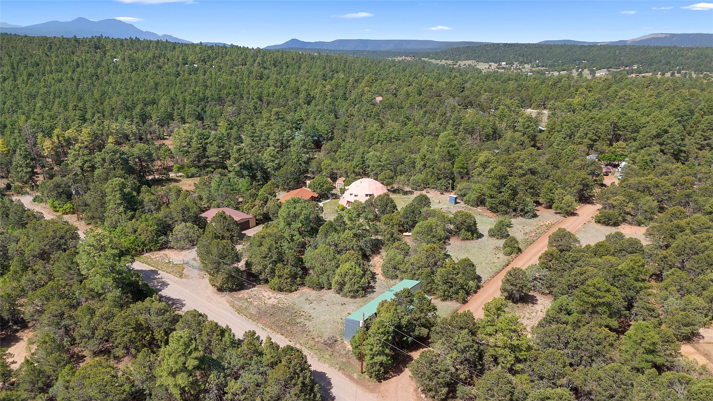 UNLIKE ANYTHING ELSE IN THE EAST MOUNTAINS, THIS EXPANSIVE TIJERAS HORSE PROPERTY IS A WORLD OF ITS OWN. Tucked into over four wooded and meadowed acres, it offers a rare blend of space, privacy, and versatility with three distinct residences. The 2-story dome house features exposed beams, tile floors, two fireplaces, and a charming country kitchen. Imagine sitting out on the open patio with 360 degrees of nature. The cozy casita is a perfect studio or guest house, while the spacious cottage--with its open layout, concrete floors, wood stove, and walk-in closet--adds even more flexibility for multi-generational living. A pole barn, detached garage, workshop, plenty of room of animals and toys. Furniture and tools convey--bring your vision and make this one your perfect mountain retreat!