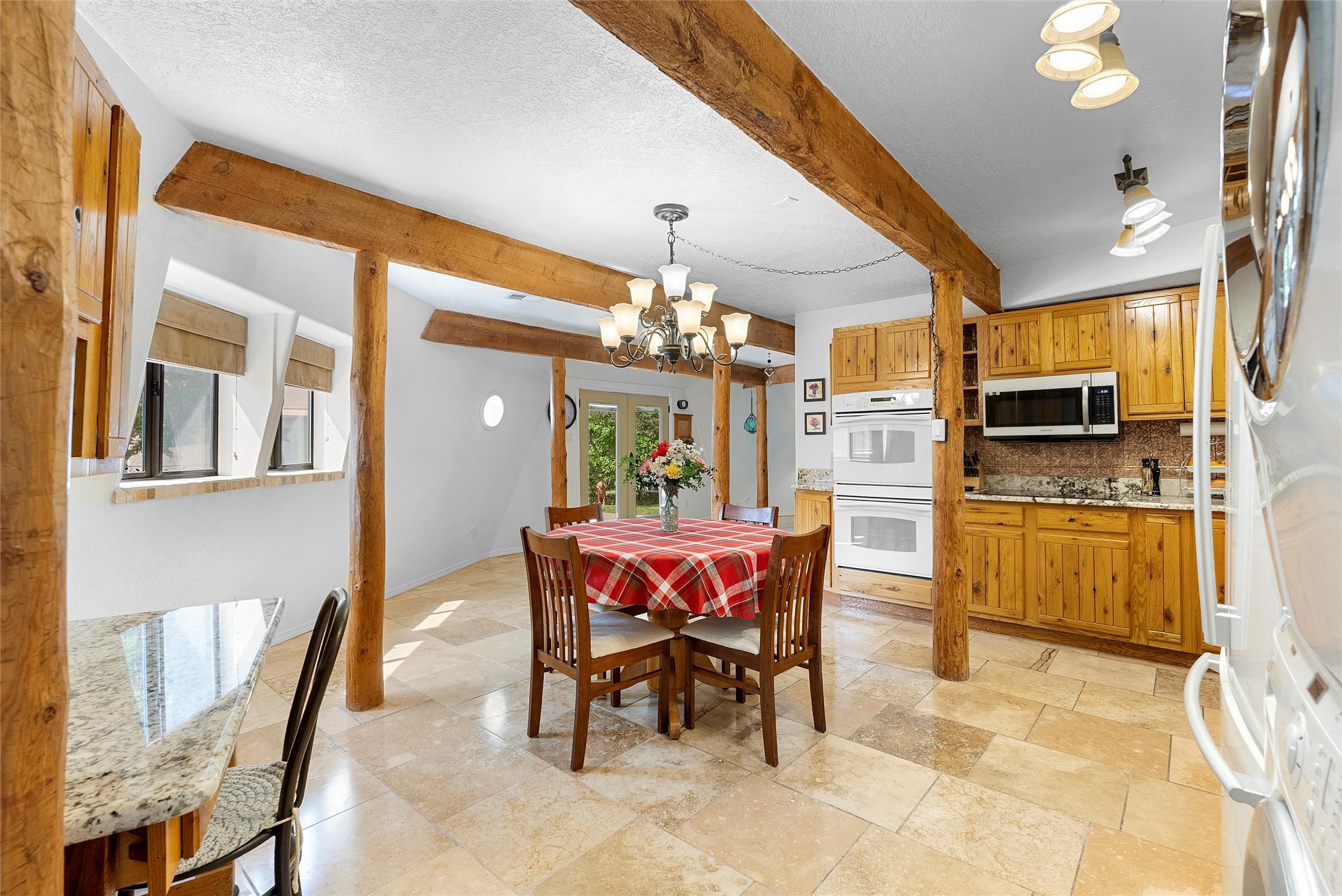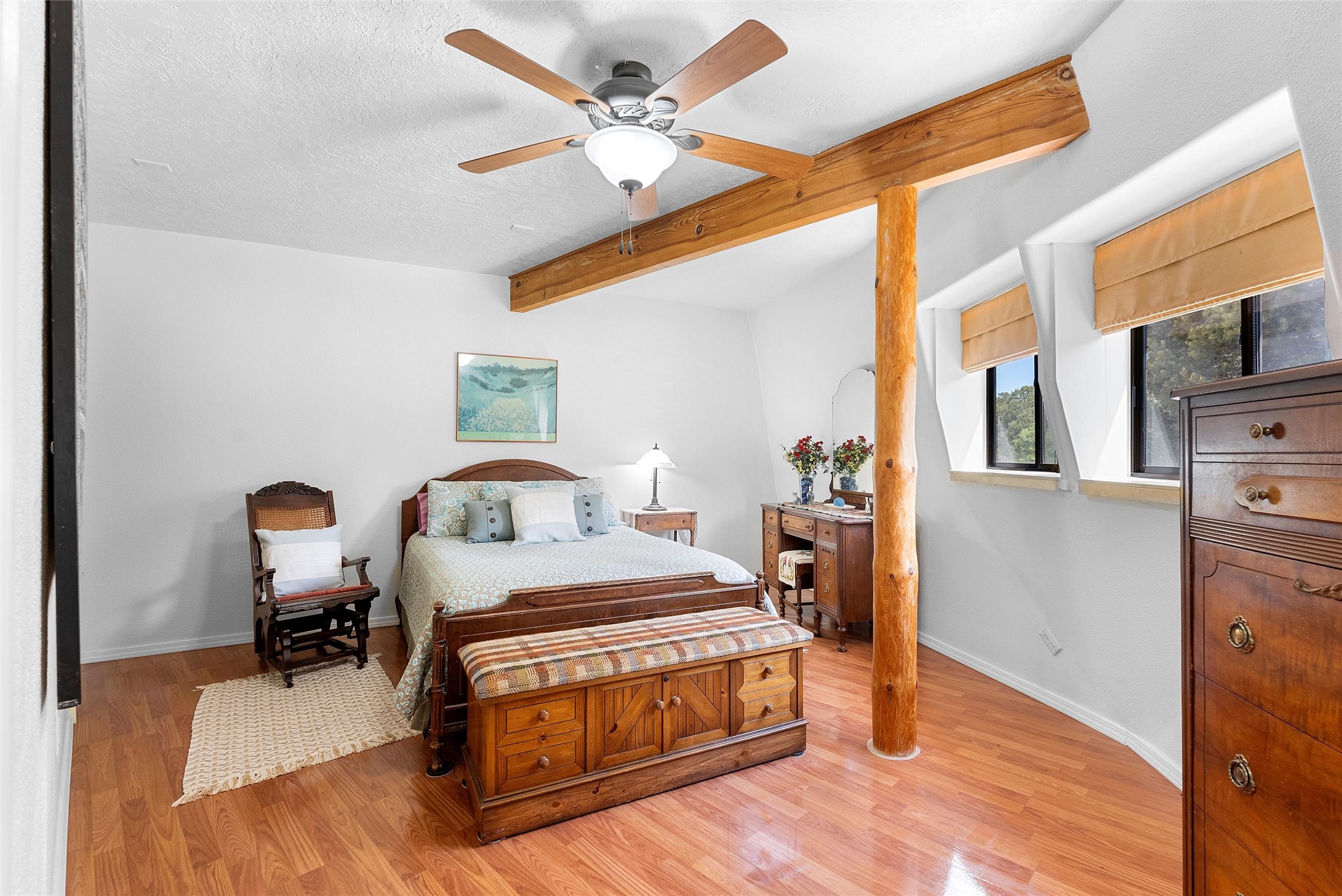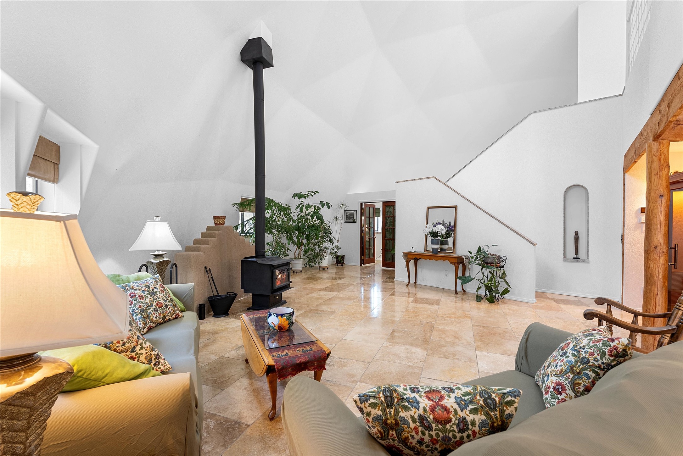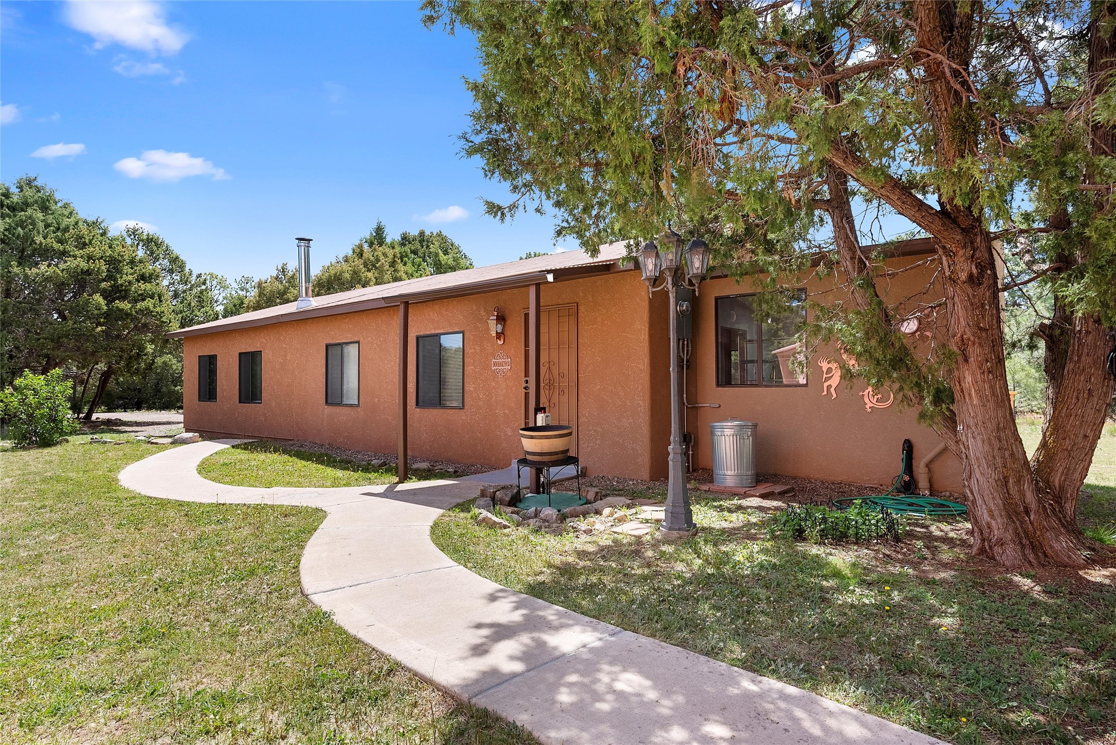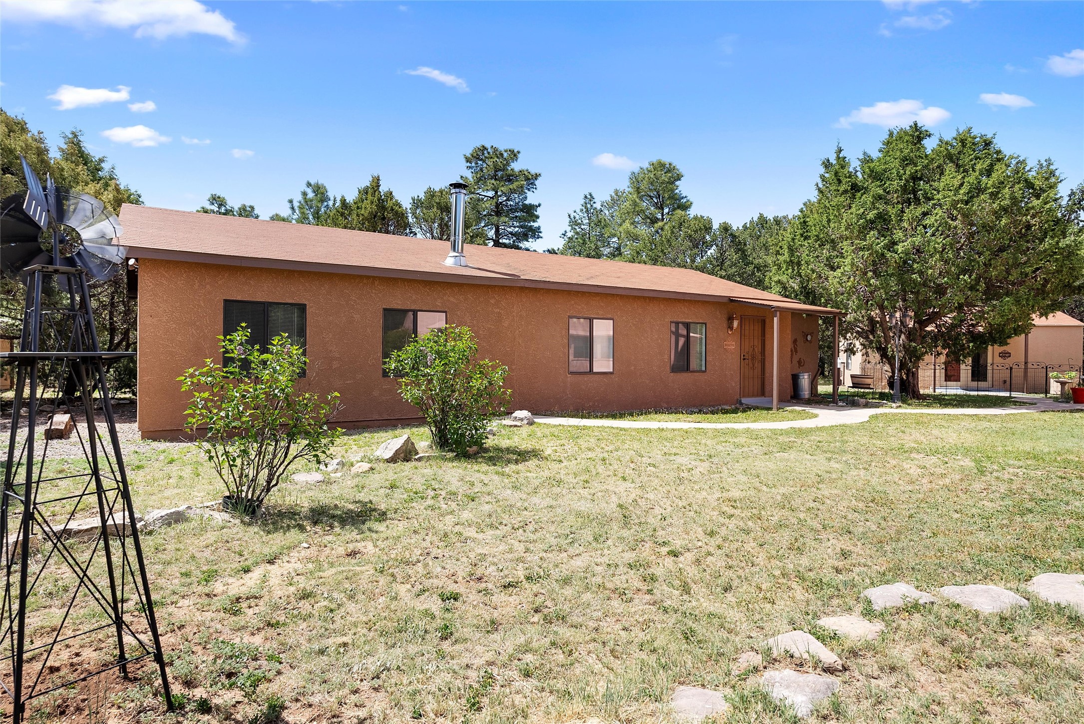 UNLIKE ANYTHING ELSE IN THE EAST MOUNTAINS, THIS EXPANSIVE TIJERAS HORSE PROPERTY IS A WORLD OF ITS OWN. Tucked into over four wooded and meadowed acres, it offers a rare blend of space, privacy, and versatility with three distinct residences. The 2-story dome house features exposed beams, tile floors, two fireplaces, and a charming country kitchen. Imagine sitting out on the open patio with 360 degrees of nature. The cozy casita is a perfect studio or guest house, while the spacious cottage--with its open layout, concrete floors, wood stove, and walk-in closet--adds even more flexibility for multi-generational living. A pole barn, detached garage, workshop, plenty of room of animals and toys. Furniture and tools convey--bring your vision and make this one your perfect mountain retreat!