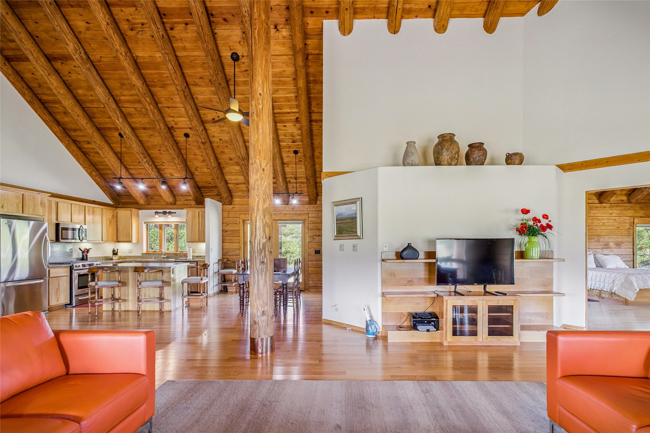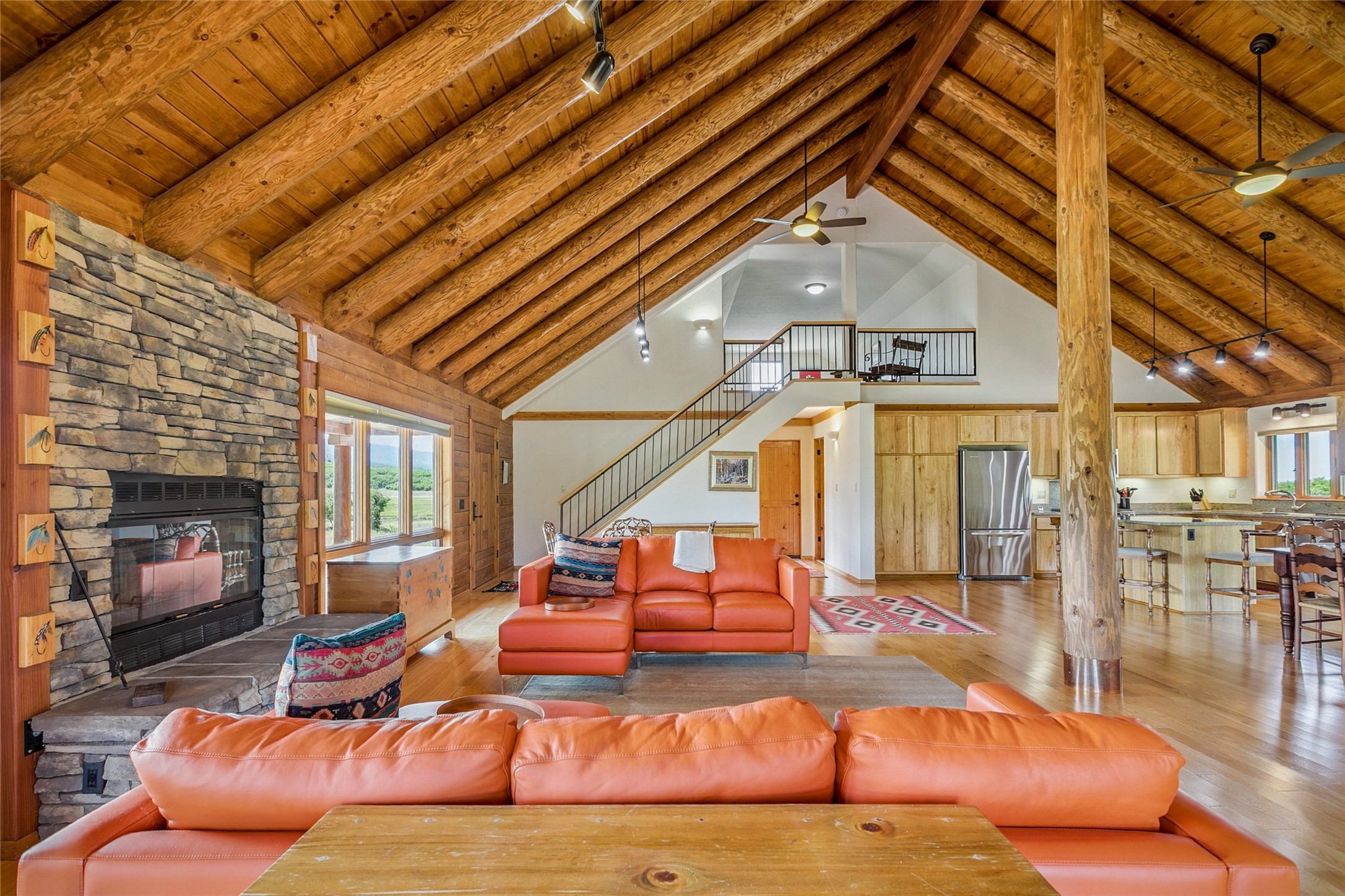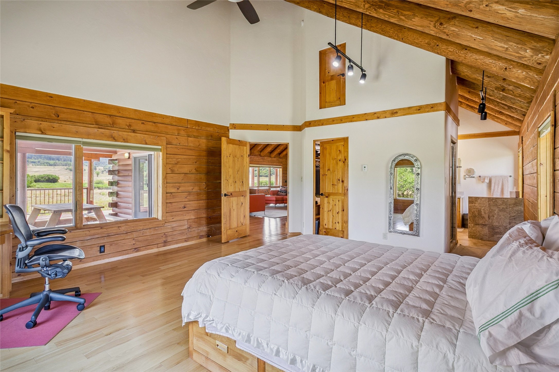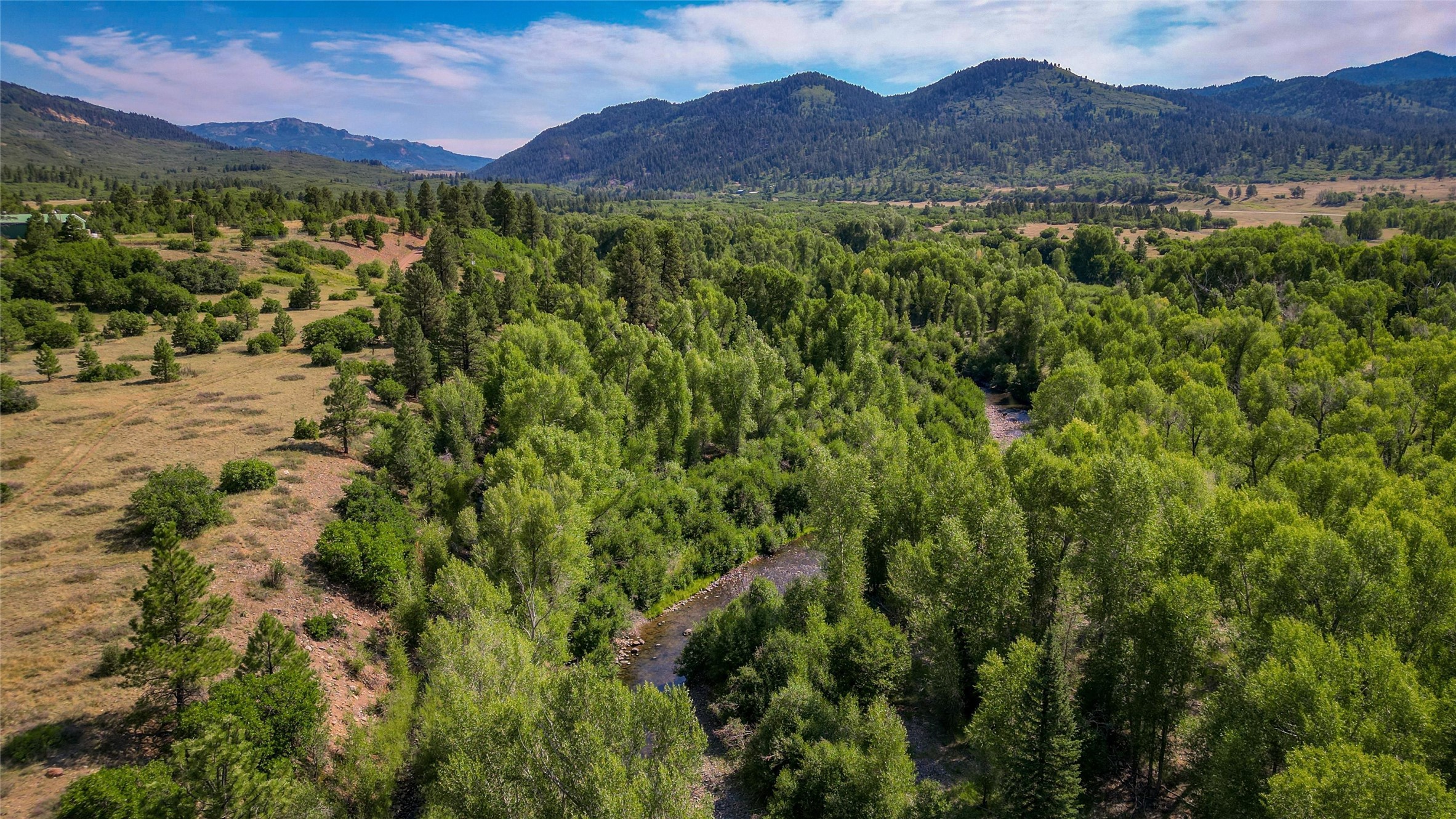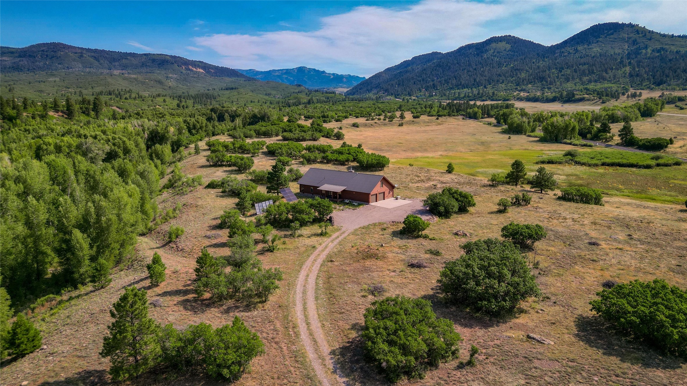 Located north of the Village of Chama, this 24.6 acres has Chama River Frontage on the west, the Cumbres and Toltec Scenic Railroad tracks on the east and it borders a large ranch holding (RDOP) on the north. The property is 2 levels with approximately 12 acres on the upper portion where the house is located and approximately 12.6 acres in the flood plain along the Chama River. Enjoy the amazing views from the covered decks of the spacious and thoughtfully designed D Log home or head down the path to the shade of the cottonwoods along the river. The main floor of the house has an open concept living and kitchen area, 2 bedrooms, 2 bathrooms and attached 2 car garage with laundry facilities. The upstairs is an open loft area, great for overflow company, office or hobby space. The main bedroom has a large walk in closet, an en suite bathroom, complete with a steam shower and soaking tub. The house has in-floor heat and a wood burning fireplace for the chilly winter nights. During the summer, the train departs the train station in Chama around 10am and heads north along the property boundary and returns in the afternoons around 4pm. This is a private location, perfect for the buyer who is looking for a self sustaining property where trout fishing is just down the hill and everything is powered by solar or generator power.