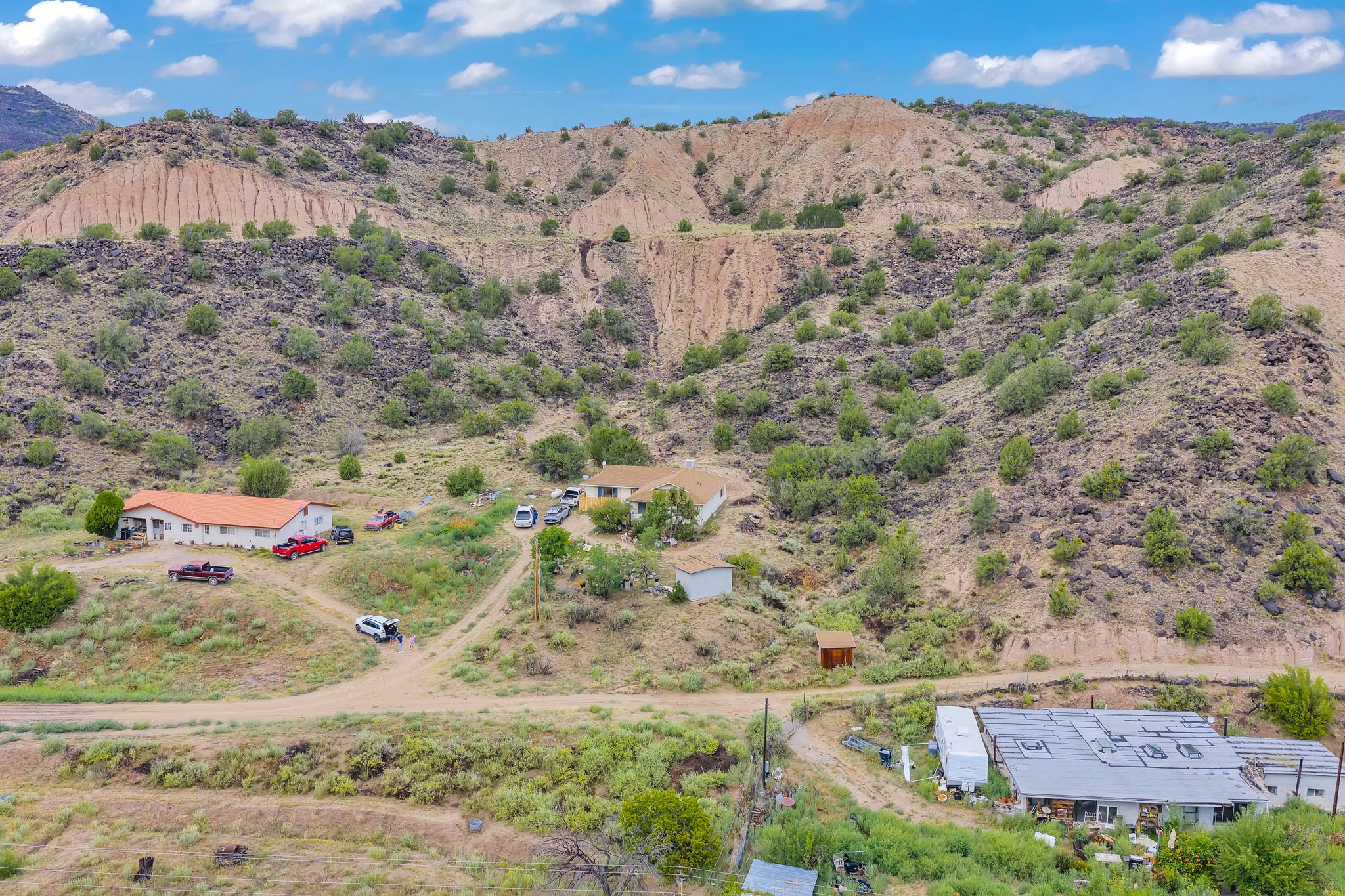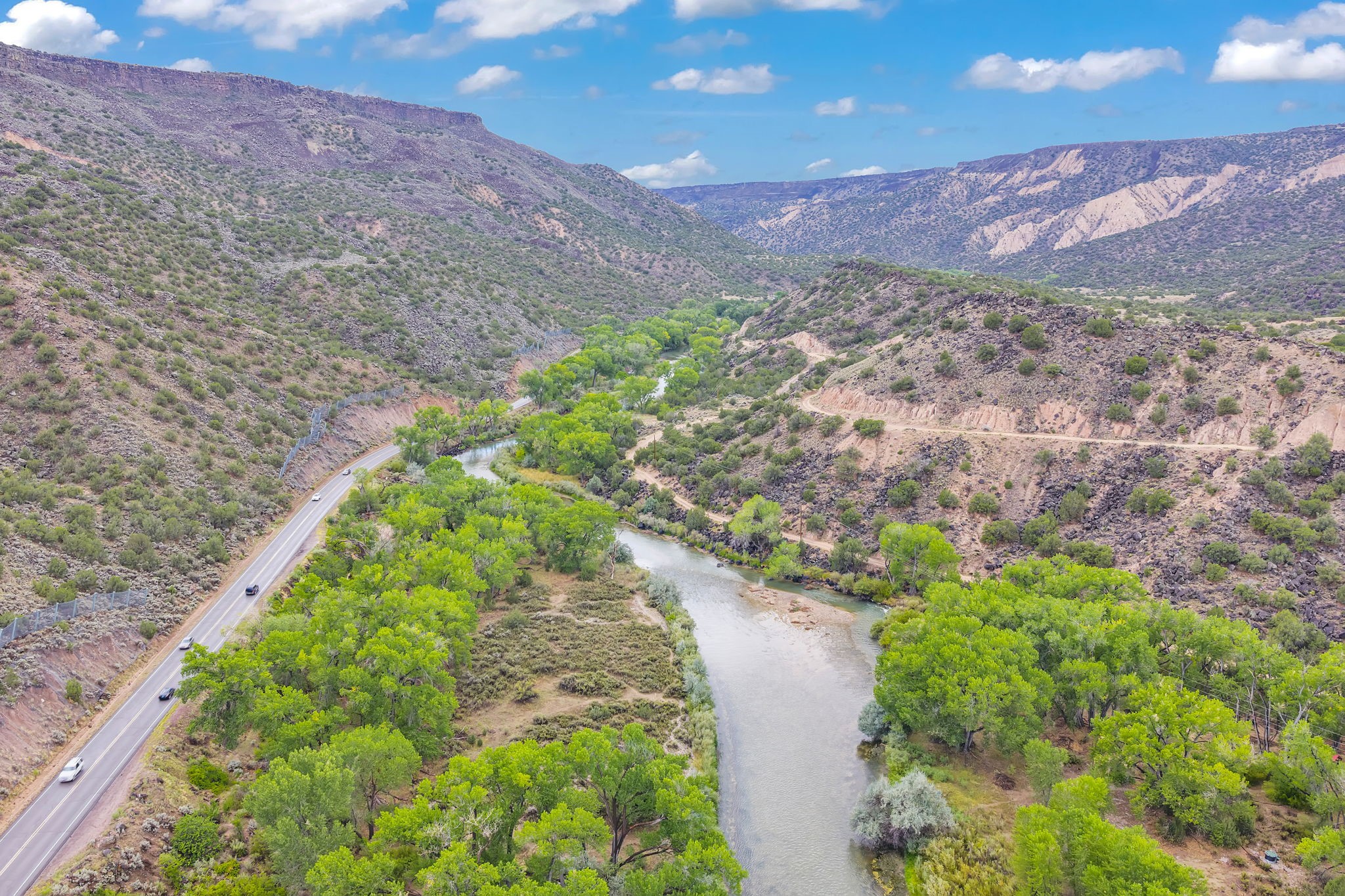 Perched on a hillside overlooking the Rio Grande, this 4-bedroom, 2-bath home offers stunning views on a 1-acre lot. The open-concept layout features spacious living areas, softwood and tile floors, and a pellet stove for cozy warmth. Accessed by a dirt road (SUV recommended), this private retreat is just a short drive to Taos and Espaola for shopping and dining, as well as close to the historic village of Dixon, the Rio Grande Gorge, and scenic High Road to Taos.
