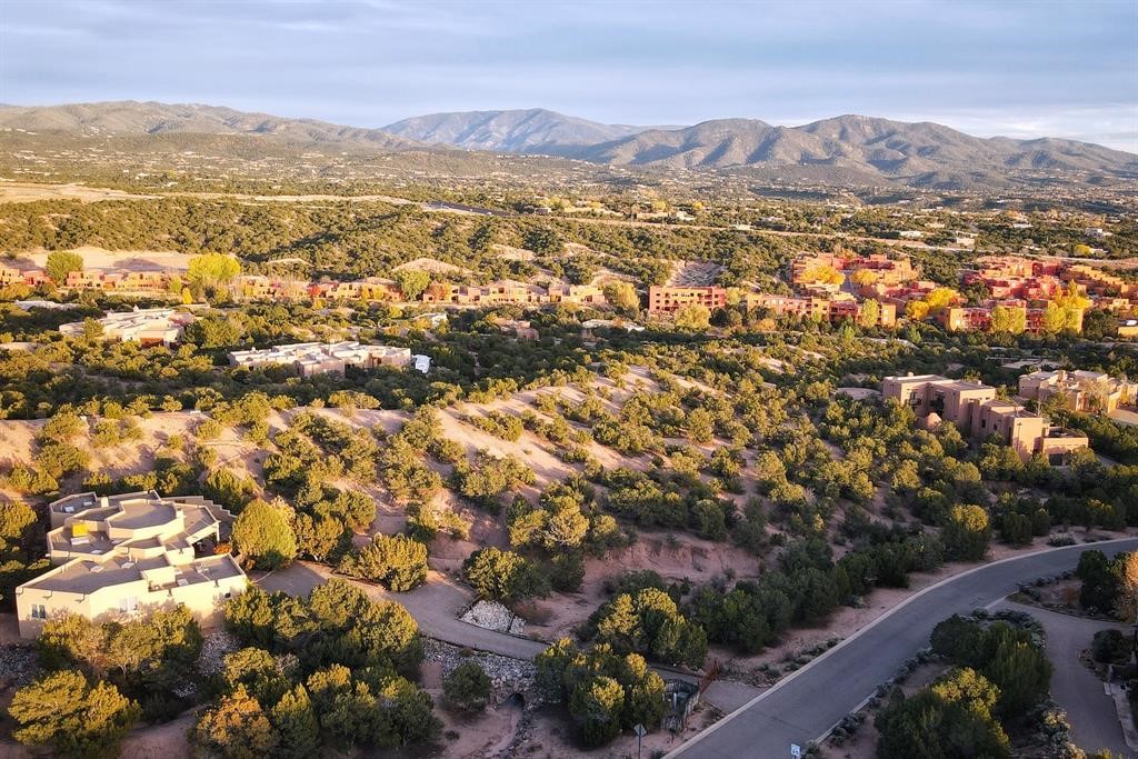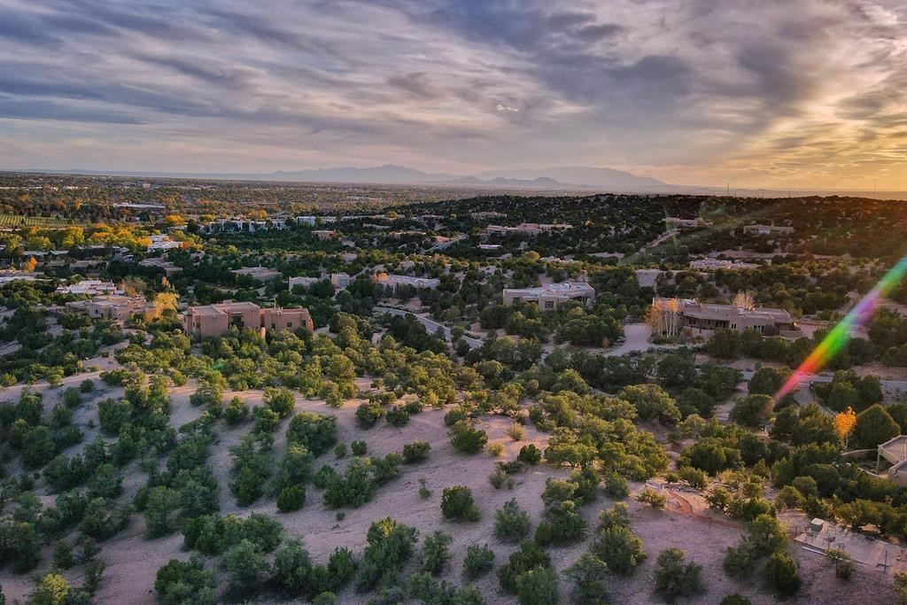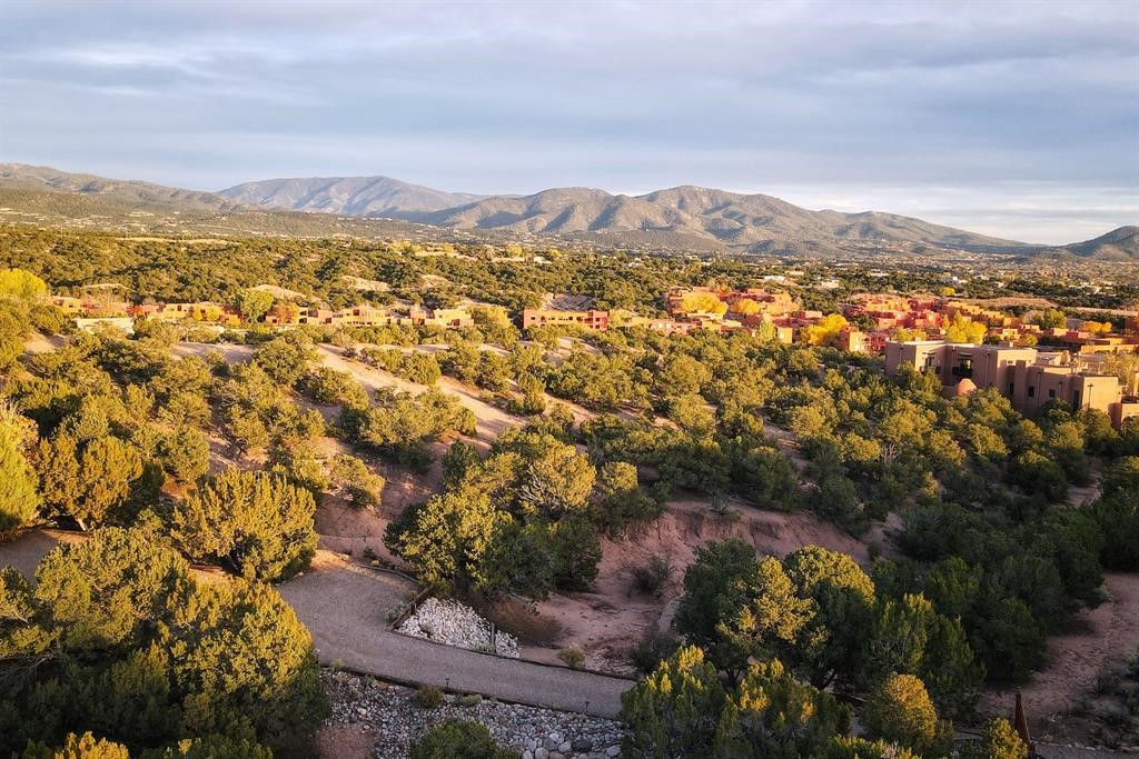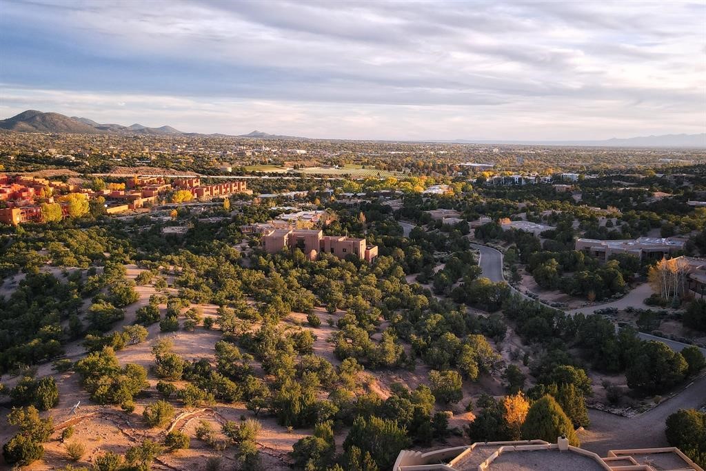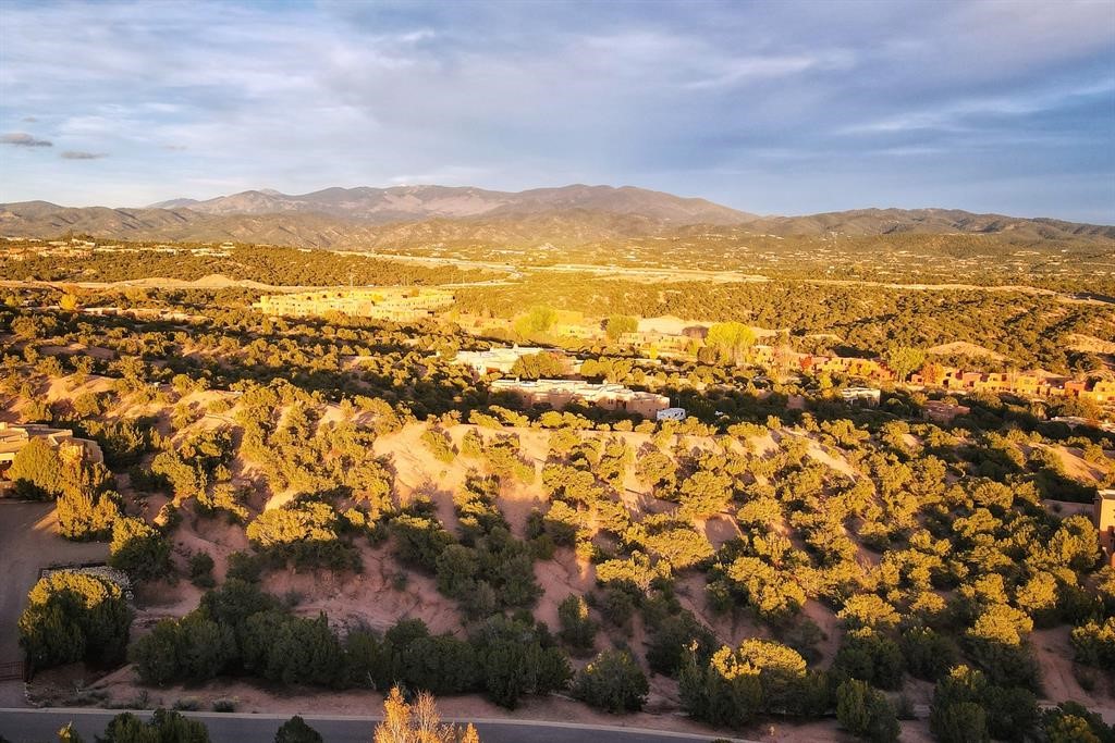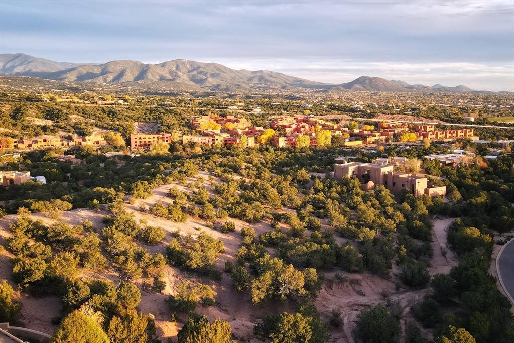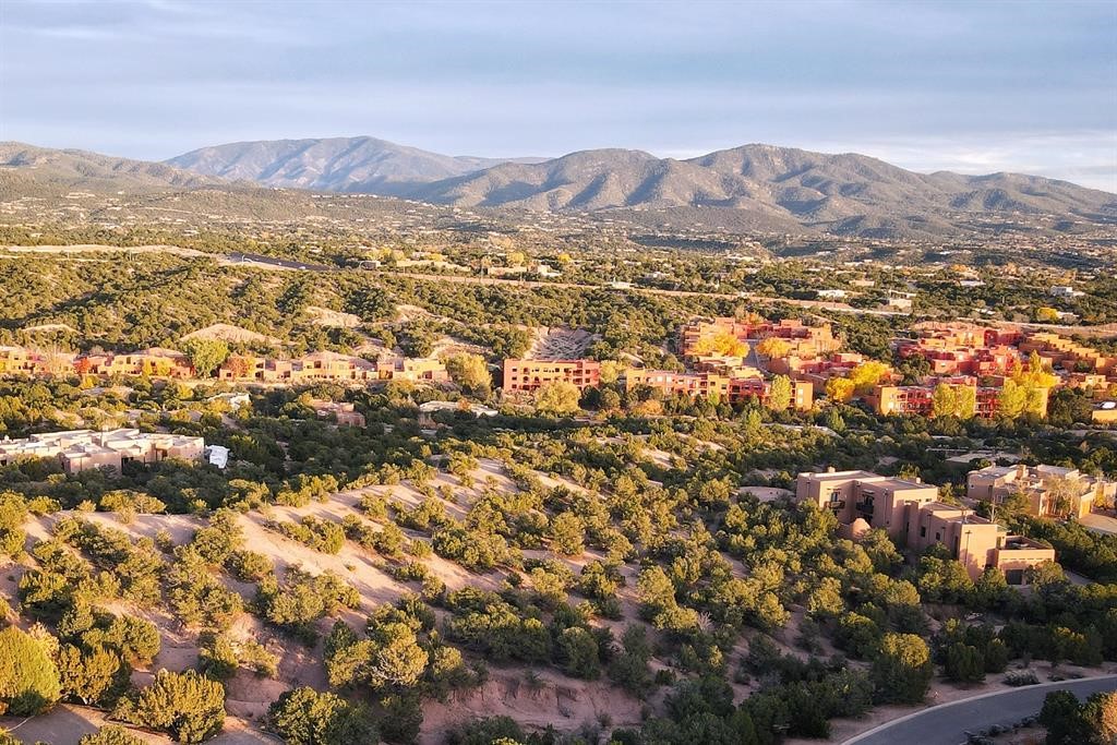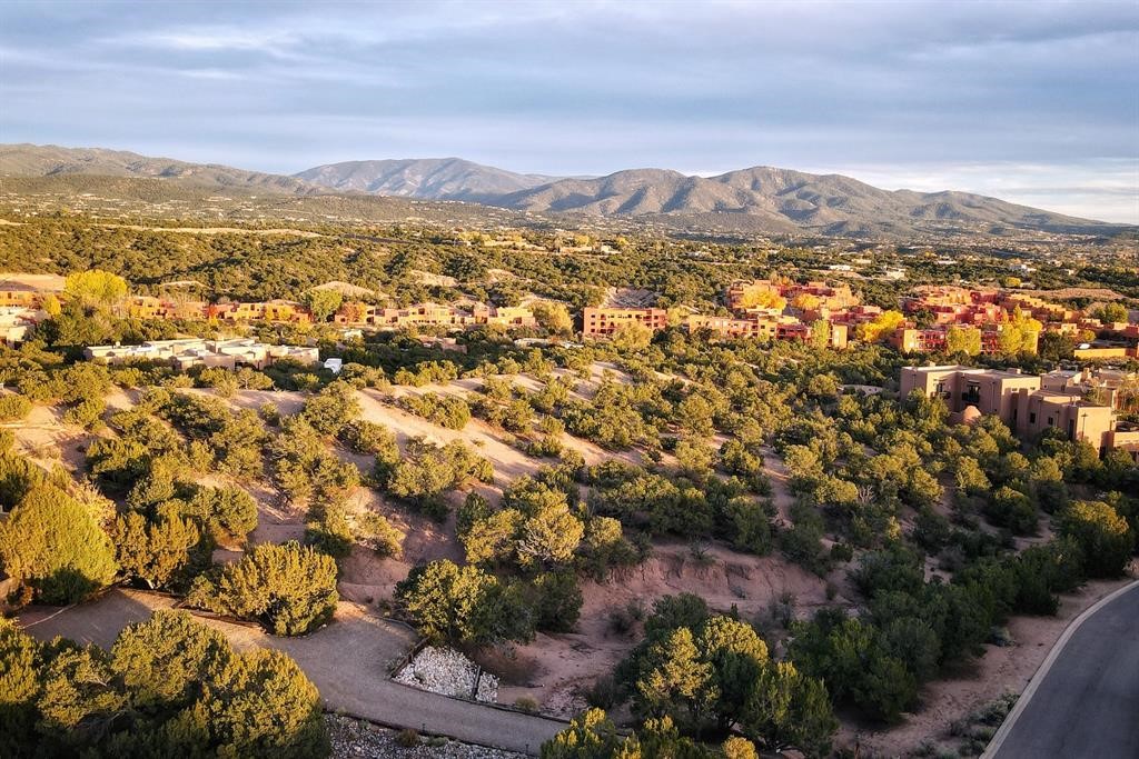 Spectacular 1.65-acre homesite with sweeping mountain, sunset, and city-light views. Within one mile of the Plaza of Santa Fe, paved road, full city utilities, and close to shopping, plus biking and hiking trails. Site plan, floor plan, and rendering concepts included to showcase the property's exceptional potential in one of Santa Fe's most coveted communities. Schedule your leisurely showing today and follow the trail markers up to the building pad of the lot where a thoughtful viewing landing has been constructed for your comfort.