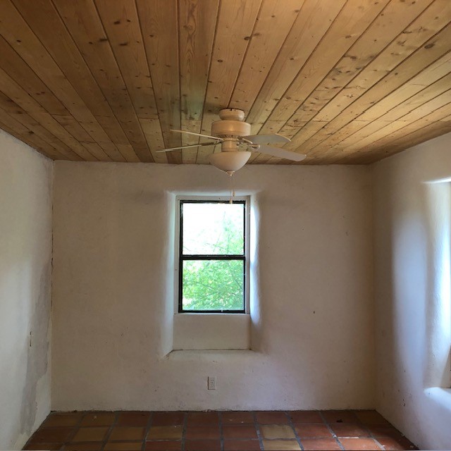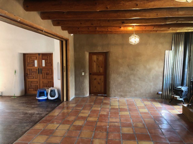 Lovely 2 bedroom 2 bath adobe home with mud plaster in the charming and historic village of El Rito, settled in 1807 along the creek that inspired its name. Home to many artists, it has its own studio tour in October. This home is just as charming as the village in which it resides. It was originally a Methodist church but has been remodeled. The sanctuary is a large living room with high ceiling and vigas, and latillas in a herringbone pattern. Adobe interior walls and wooden doors give the house a warm feeling. Updated kitchen and large dining area are open to each other and open onto a portal on the side of the house. The kitchen has an induction range with a convection oven and an island for extra prep space and seating. Hardwood and tile floors, wood-burning fireplace in the dining room, views of the Jemez Mountains. Heating is mini-split with ac/heat and radiant in the bathrooms and back bedroom. The property is fenced and has apricot and apple trees. Opens on the back to fields.