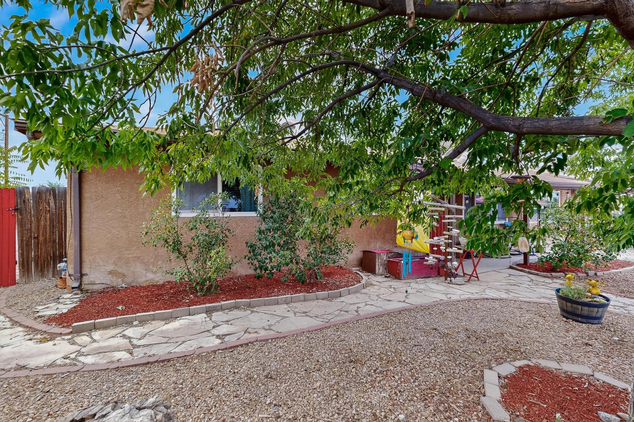 Motivated Seller is offering $5,000 in flex cash which can be used toward closing costs, rate buy-down, or price adjustments! Come see this gorgeous 4 bedroom, 2 bath house on a quiet street in the heart of northern Bernalillo. Updated kitchen and bathrooms. Bonus ''gym'' could be used as an extra family room, media room or bedroom. Enjoy your coffee in the screened porch or one of 4! separate sitting/eating/patio areas in the back yard, or under the shade of the trees in the front yard. Bonus is the views of the Sandias from your beautifully Xeriscaped back yard. Property is fully fenced for the safety of your family or furbabies. Gated access to the backyard from Camino Don Tomas. Quick access to 550 and I-25 makes for an easy commute to work.
