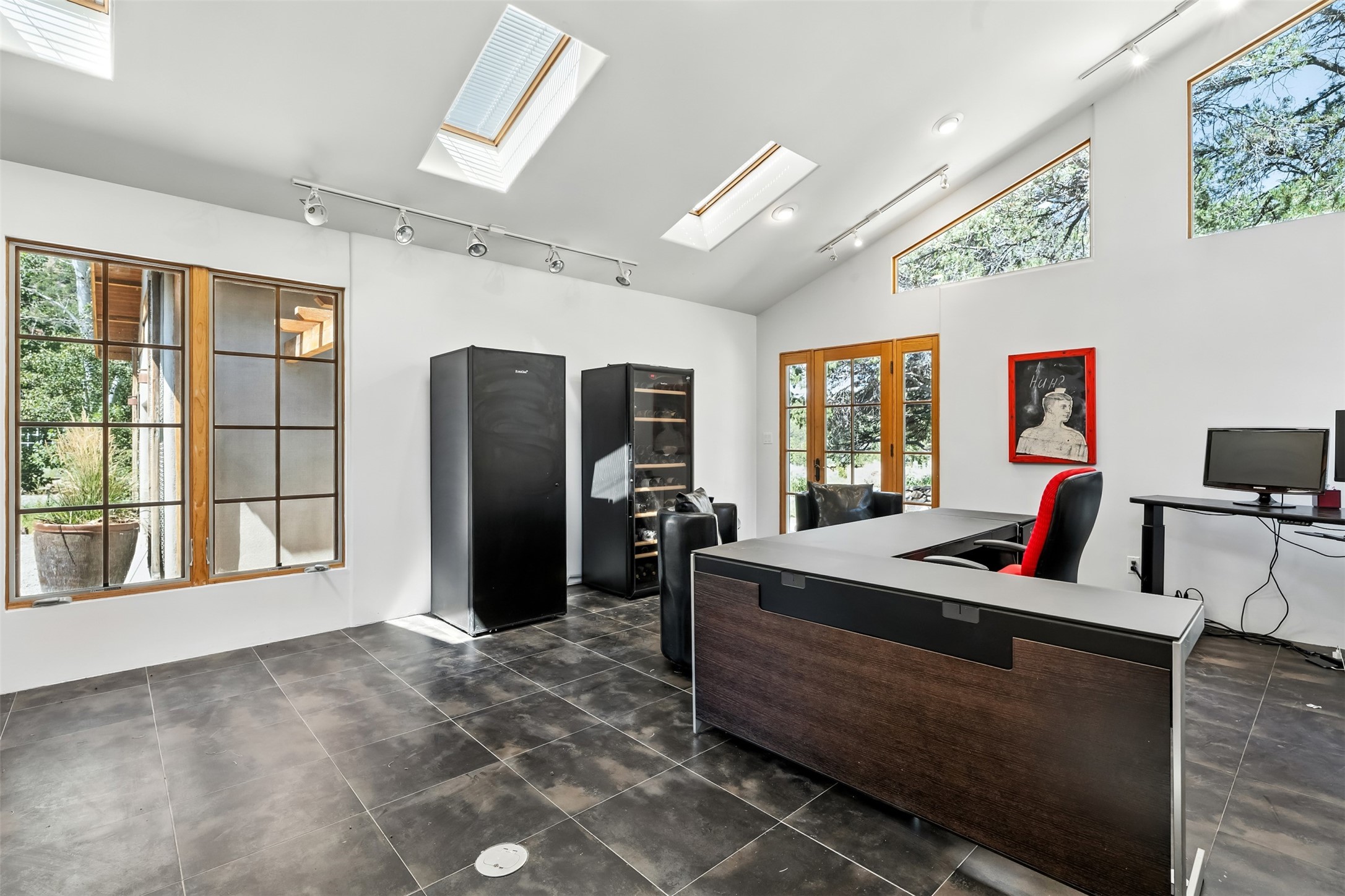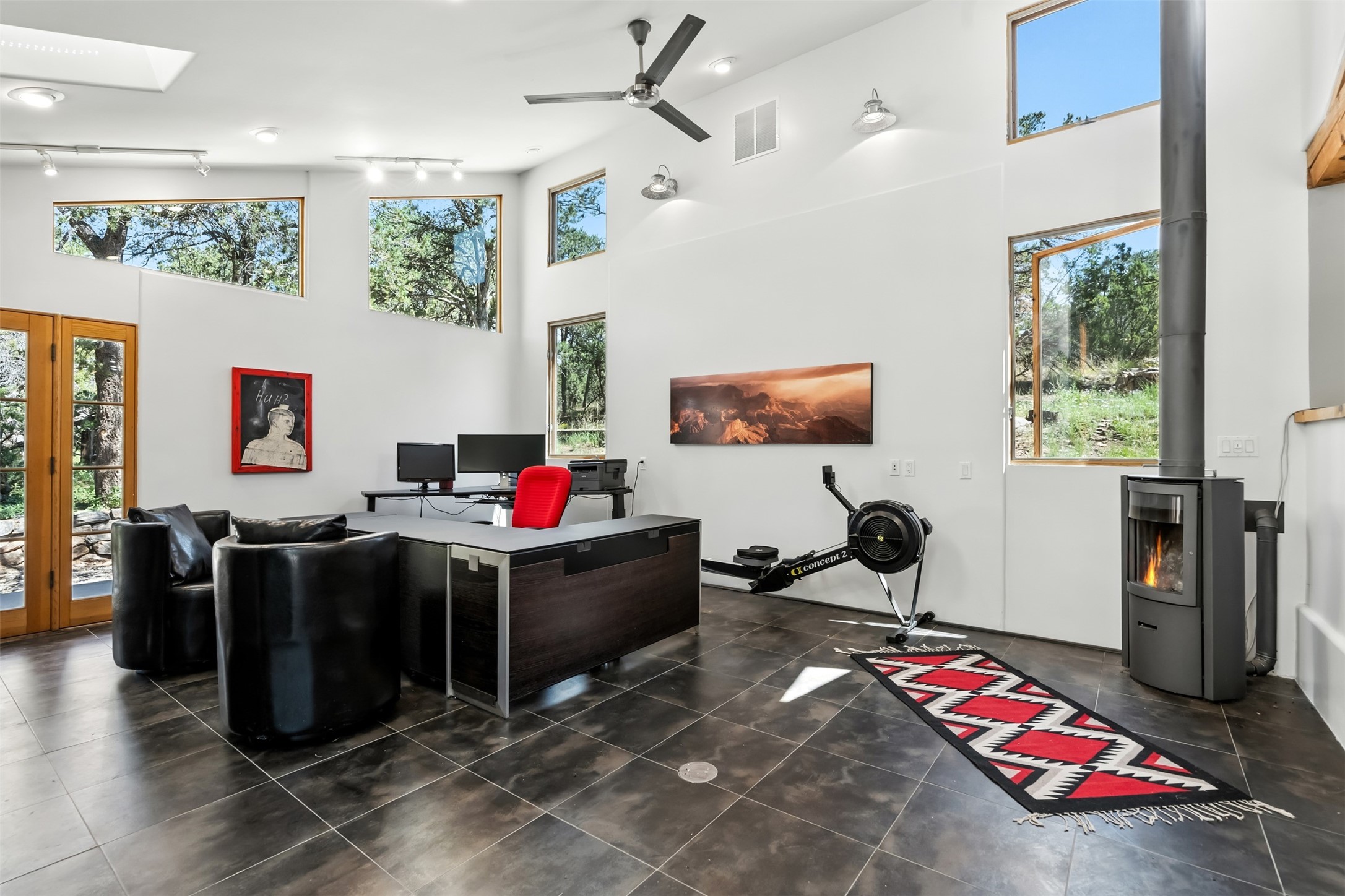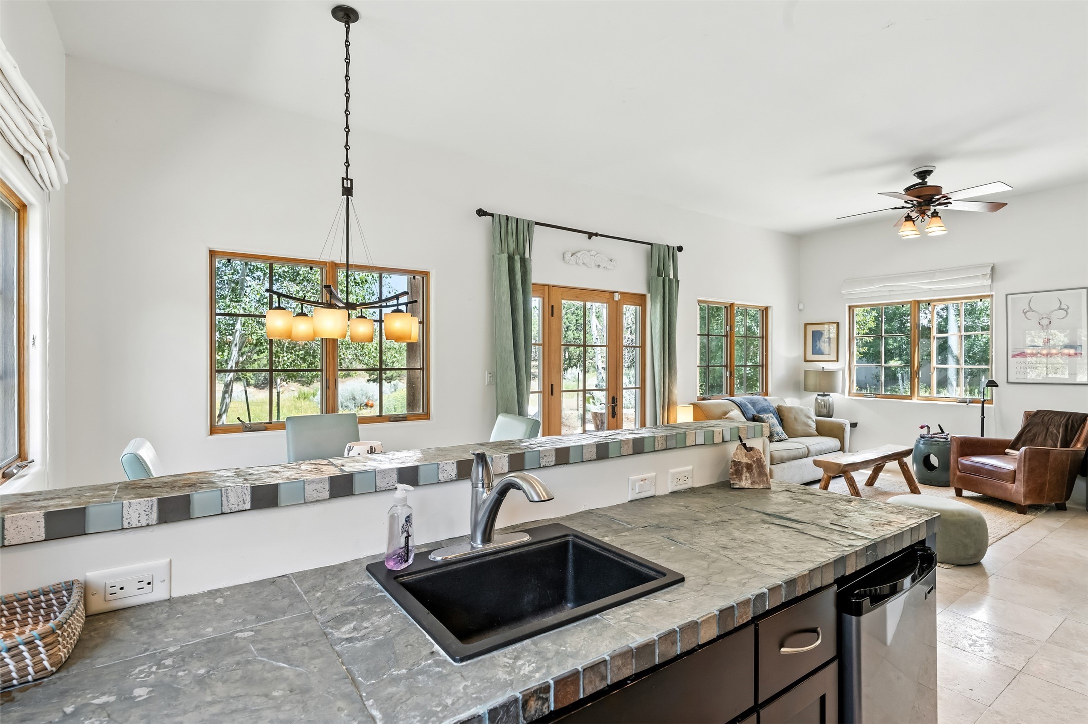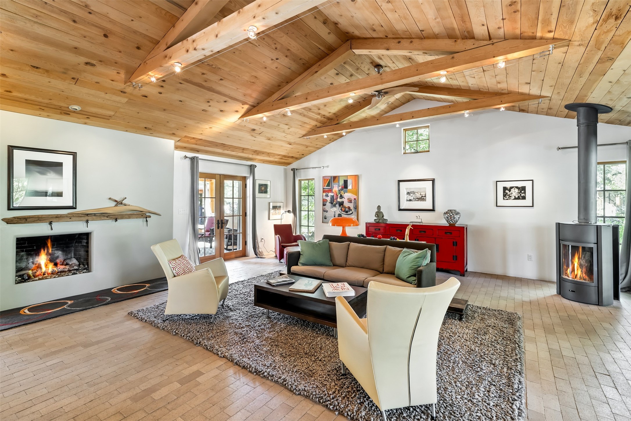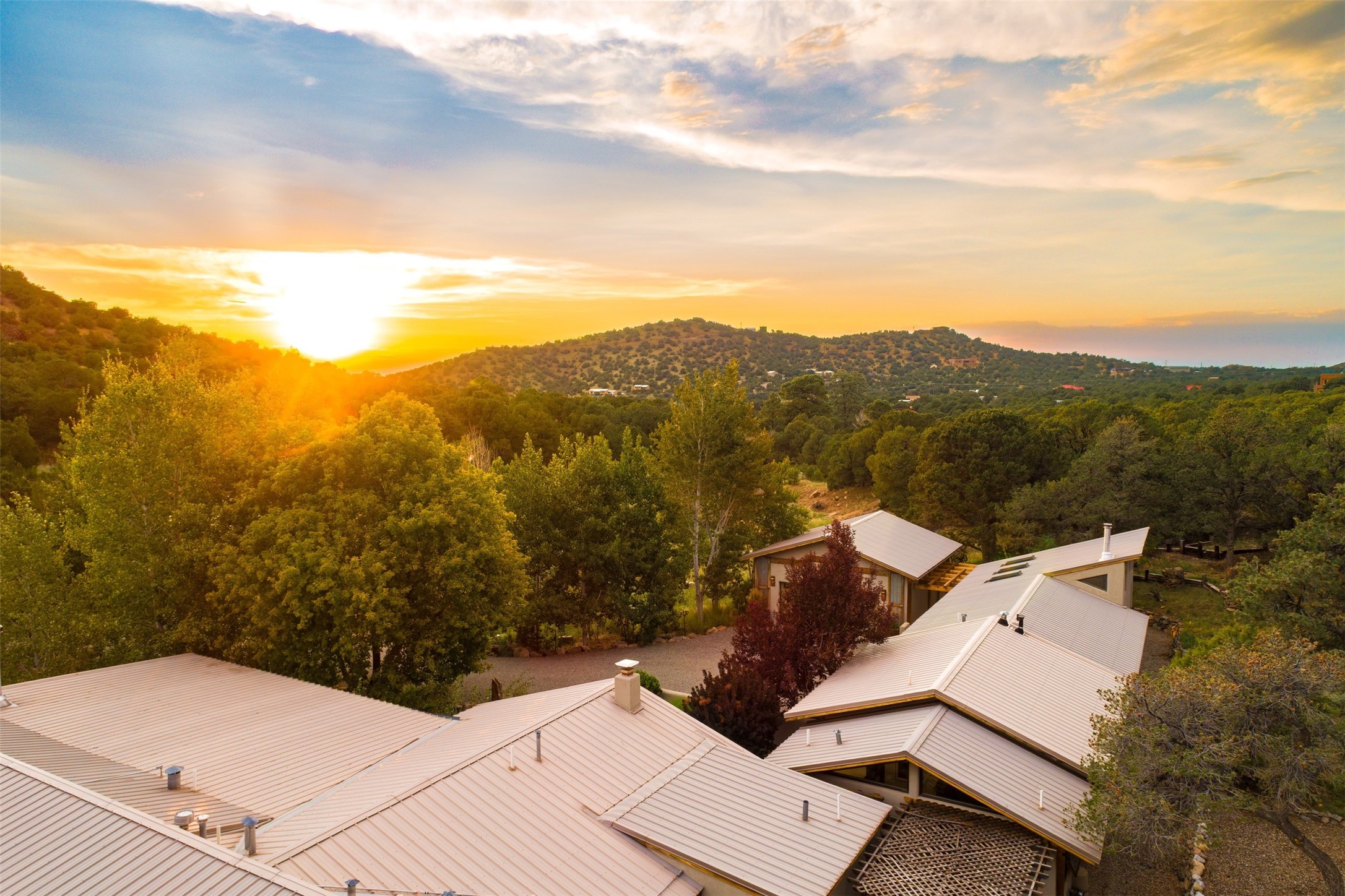 LIVE, WORK, ENTERTAIN, in your own secluded sanctuary located on 7.08 Sunlit Hills acres.10 Sabina Lane is a sophisticated & contemporary COMPOUND offering a wide variety ofliving & working spaces in a stunning pastoral setting, 15 minutes from Santa Fe.MAIN HOUSE - 2,187sqft open concept Great Room w/beamed cathedral ceiling,fireplace, Chef's kitchen w/granite counters, high end appliances, 2 spacious bedrooms w/ensuite bathrooms, laundry area, 5 sets of French door leading to 58 foot long covered portal.GUEST SUITE - 530sqft is steps from the main house & offers an inviting bedroom, spainspired bathroom, custom tiles, soaking tub, is adjoined by a private tranquil terrace.STUDIO/OFFICE - 994sqft amazing work space with vaulted ceiling, view windows, areasfor an office, art or other work related spaces, powder room & covered portal entry. Onewould never need to leave the property to conduct all their business or artistic work.CASITA - 683sqft Set apart from the main house, the casita has a full kitchen w/stonecounters, kiva fireplace, covered portal, stackable washer/dryer. The casitahas produced additional income as an Air B&BGARAGE - 60 sqft Fully finished, 2car capacity, storage areas.GAZEBO -196sqft An inviting space away from the home for meditation & relaxation.PAVILION -241sqft Wonderful retreat area w/fireplace, bancoseating, ceiling fan, designer lighting.The property is accessed through a gated entry, a graveled driveway w/recently addedretaining wall. Many additional aspects - electric convectionstove top, extensive & significant landscaping,10 zone irrigation system,2 owned propane tanks (500 and 250 gallons), 5 fireplaces, an amazing flower filled meadow, healthy pinon, aspen and juniper trees, eclectic river rock pylons, antique wooden bathroom cabinet, a wealth of ceiling fans & mini split in the primarybedroom. For folks seeking a destination, full time live/work situation, please consider 10Sabina Lane.
