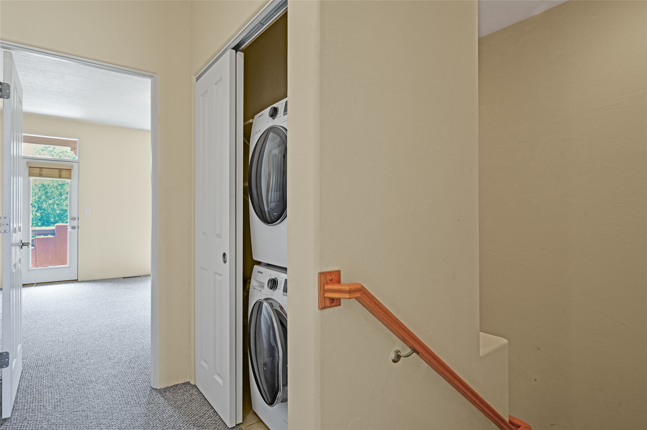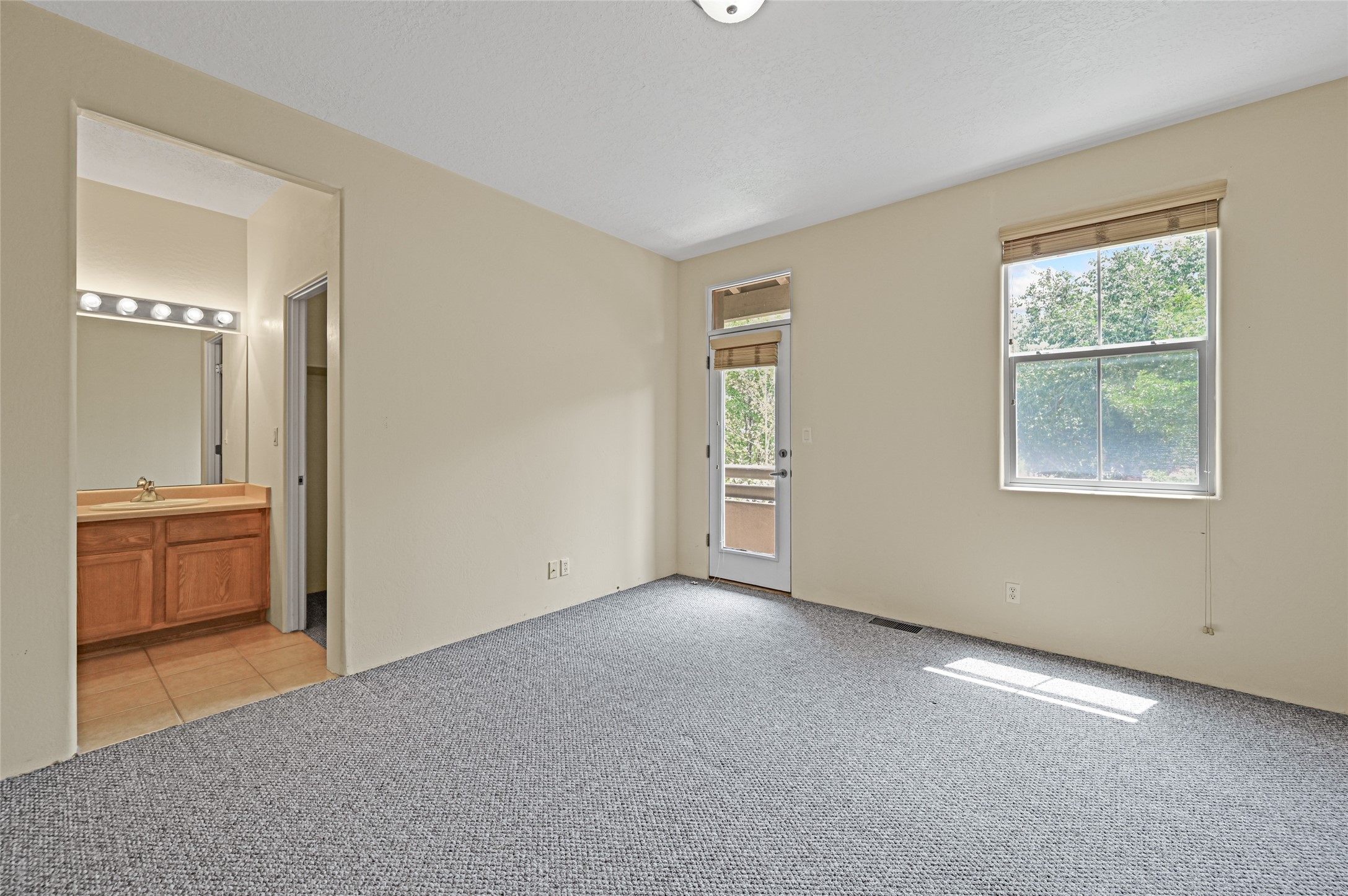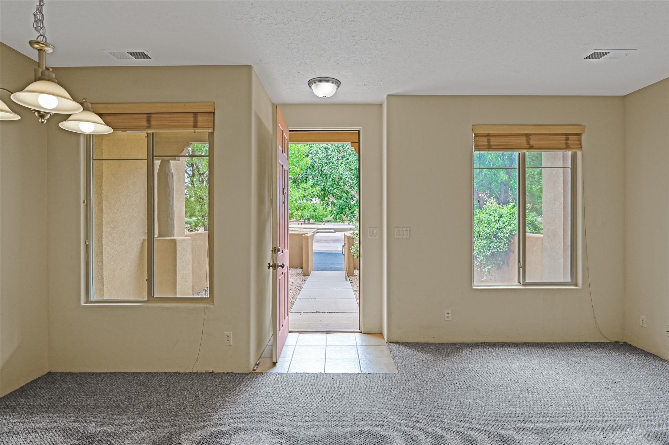 This contemporary pueblo-designed townhome offers 1264 square feet of comfortable living space spread across two levels. On the ground floor, you'll discover a spacious living room featuring a cozy fireplace, a well-appointed kitchen complete with appliances, and a convenient half bathroom. Upstairs, there are two generously sized bedrooms, each boasting its own full bathroom and an extra-large closet providing ample storage. The primary bedroom also includes a private outdoor deck, offering a perfect spot to relax and enjoy the stunning western sunset views. With its private entrance and courtyard, this townhome is designed for very easy and comfortable living. Its location is situated directly across from the Rancho Viejo Village Park Plaza, which provides a peaceful environment with mature trees, lush green grass, and convenient walking trails. The townhome is ideally located on the southwestern side of Santa Fe, surrounded by ample open space perfect for various outdoor activities. Schedule a showing today.