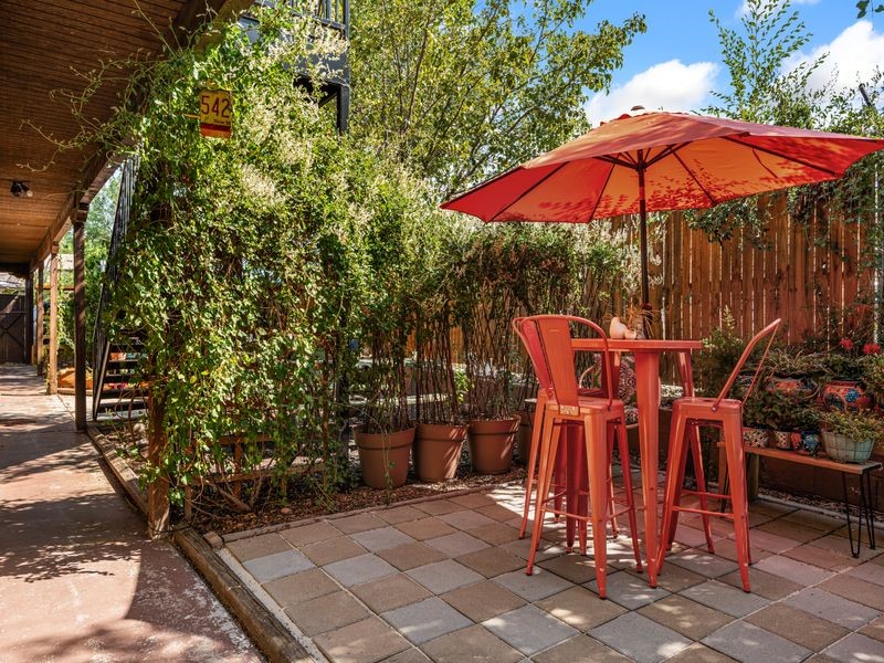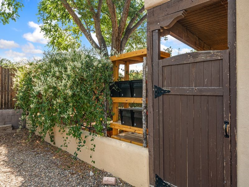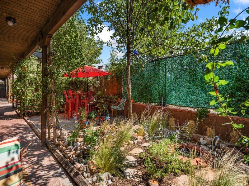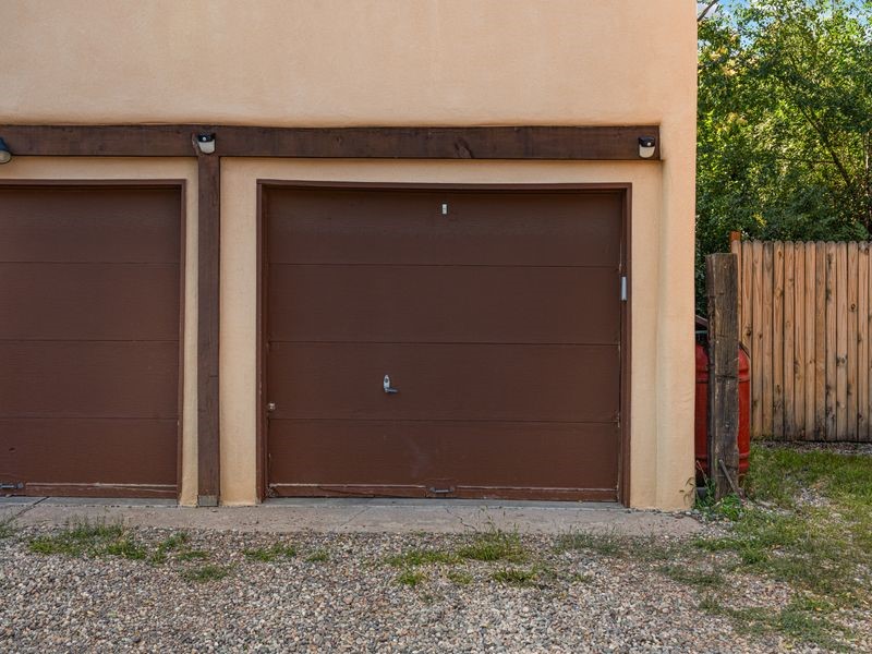 Tucked away on a quiet dead-end street, this rare 2-bedroom, 1-bath condo is one of only six in a small, well-cared-for community. Surrounded by mature gardens and a peaceful setting, it offers both privacy and convenience, just blocks from the Santa Fe Railyard and historic downtown.Inside, you'll find light-filled living spaces, in-unit laundry, and a California double garage--a true rarity in this location. The garage offers versatile use for secure parking, extra storage, or a creative studio space.Enjoy beautiful Sangre de Cristo Mountain views from the balcony and sunset skies from the bedroom. Recent upgrades include new stucco, windows, and a roof, providing low-maintenance living for years to come.Whether you're an artist seeking inspiration or simply want a quiet retreat close to it all, this property offers the perfect blend of Santa Fe charm, comfort, and location.Condos in this community seldom come to market--don't miss your chance to own a special piece of Santa Fe.