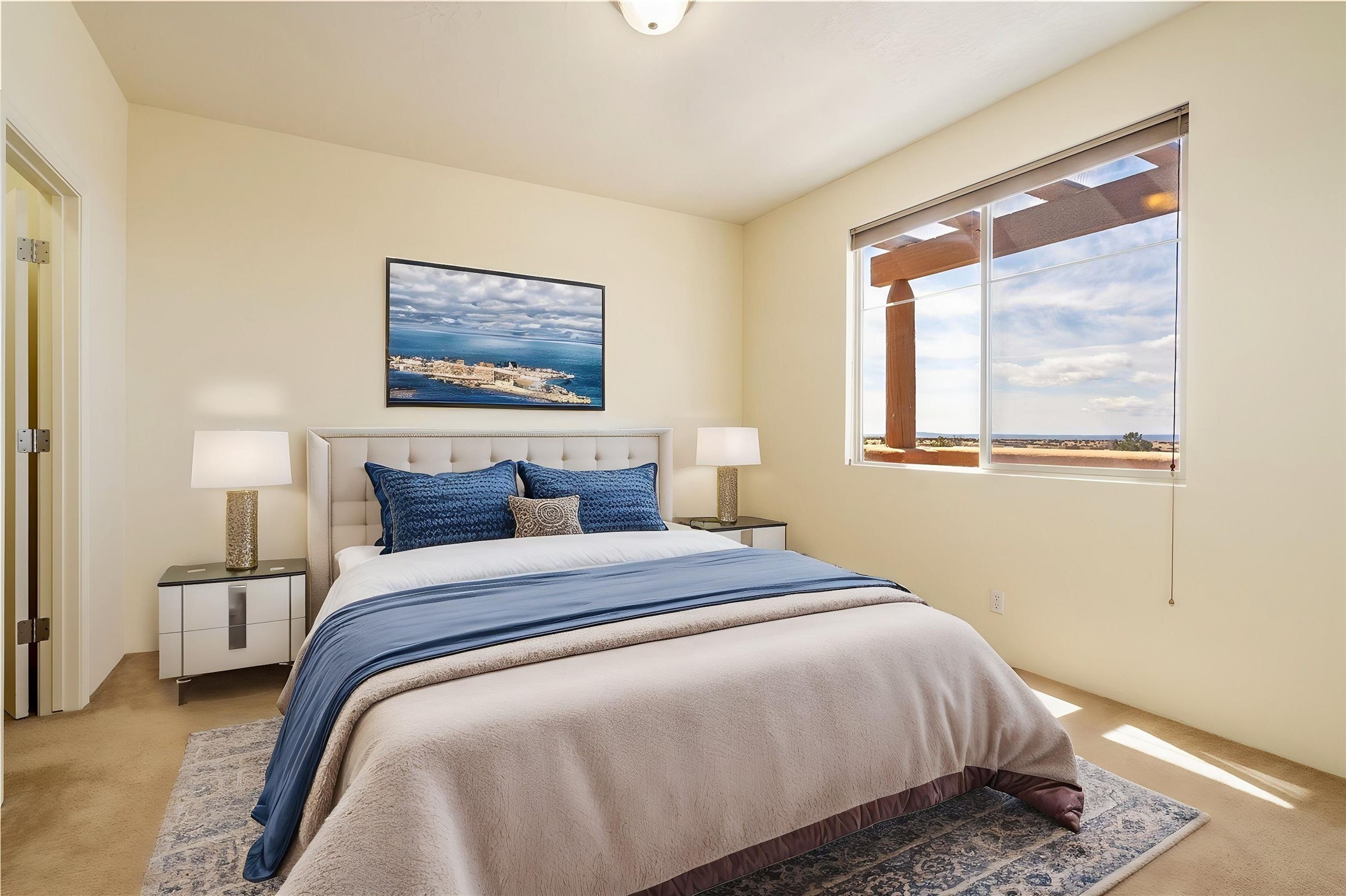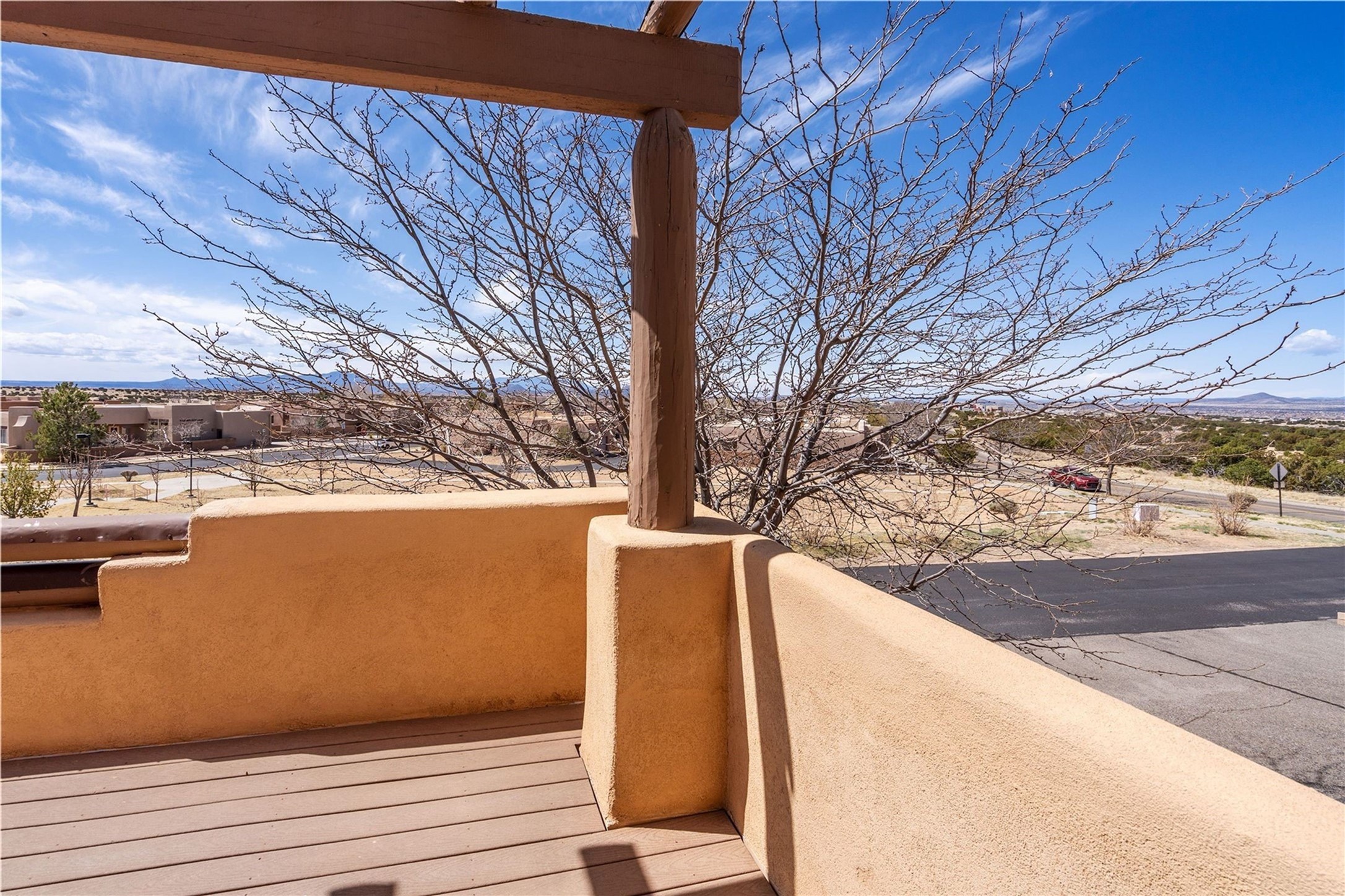 Lovely corner townhome in highly sought-after neighborhood of Rancho Viejo! The property features a light and bright open floor plan, spacious great room, high ceilings and granite kitchen countertops. Upstairs are two balconies with views of mountains, sunrise and sunset. Dining area opens to the great room and the front of the home has a gated courtyard that faces to the open space to one of the neighborhoods welcoming parks. This beautiful home features 2 bedrooms, 2 bathrooms, a downstairs half bath for convenience and an attached 2 car garage. The main bedroom has private deck with mountain views, walk in closet and updated bathroom with a rainfall shower head. In addition to the 2 bedrooms there is an open loft/office area that leads to the second deck with mountain sunrise views. Additional upgrades include newer washer/dryer, reverse osmosis system in the kitchen, water heater replaced in 2022, drip irrigation in the front courtyard. Quiet and serene location with access to the miles of paved trails the community has to offer. All while being a short distance to shopping centers, restaurants and 599/I-25. Come see this move in ready Rancho Viejo gem today!
