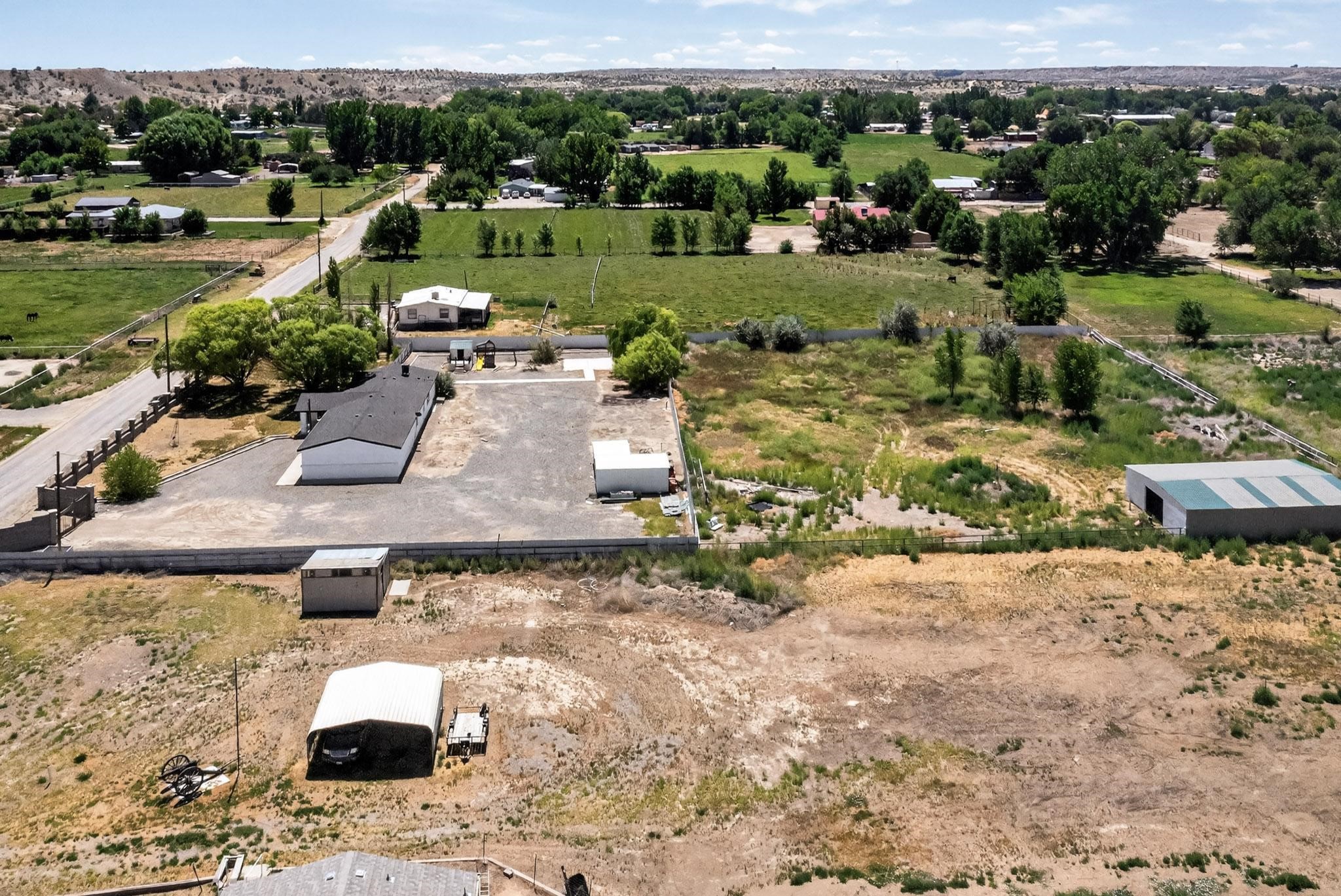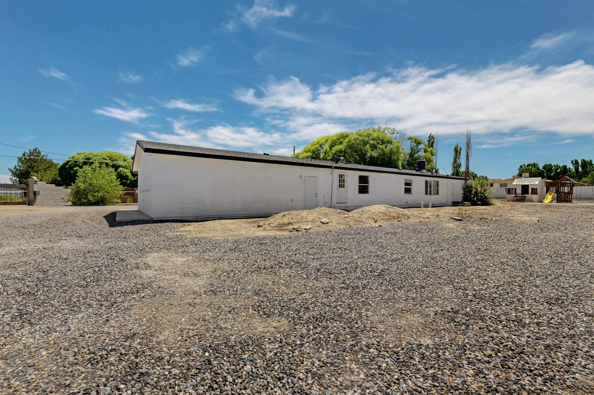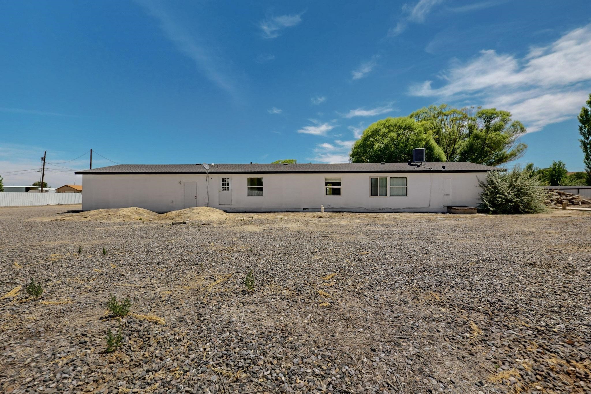 Owner to Owner financing available. Beautiful home located in the heart of the farm land of Bloomfield New Mexico. It is a manufactured home on a permanent foundation with a deactivated title. Bank Loan eligible. It features two acres of land with canal irrigation rights, multiple storages, fully fenced with gate, backyard access, refrigerated air a 1,800 square foot barn, and 4 bedrooms & 2 Baths. The property has a brand new roof and an agricultural aesthetic. Make this home yours! Coordinates to get to property 36.685391, -108.033073